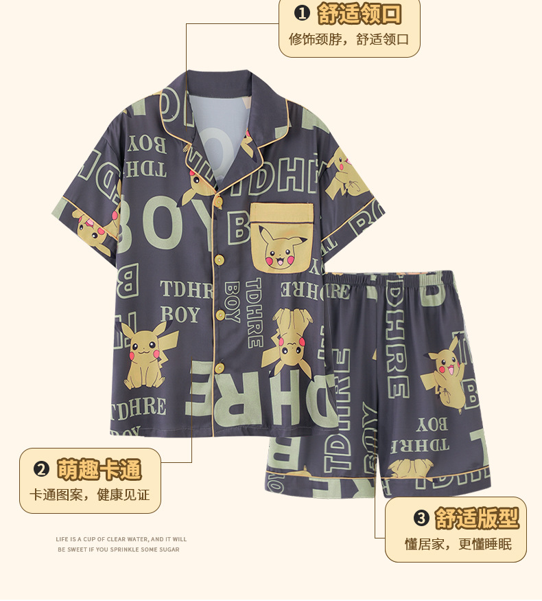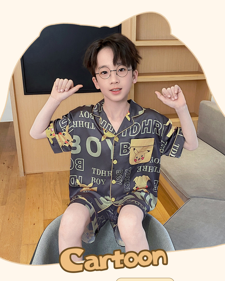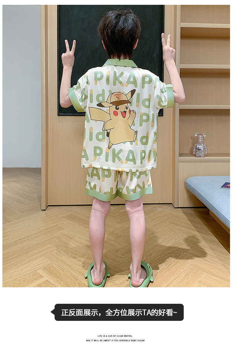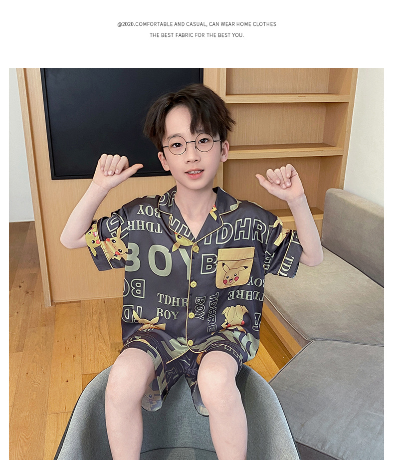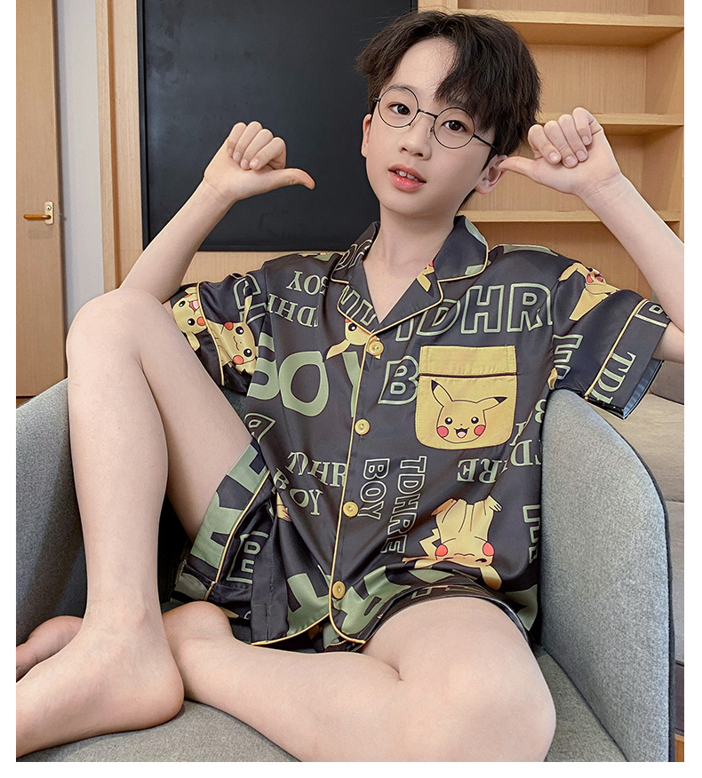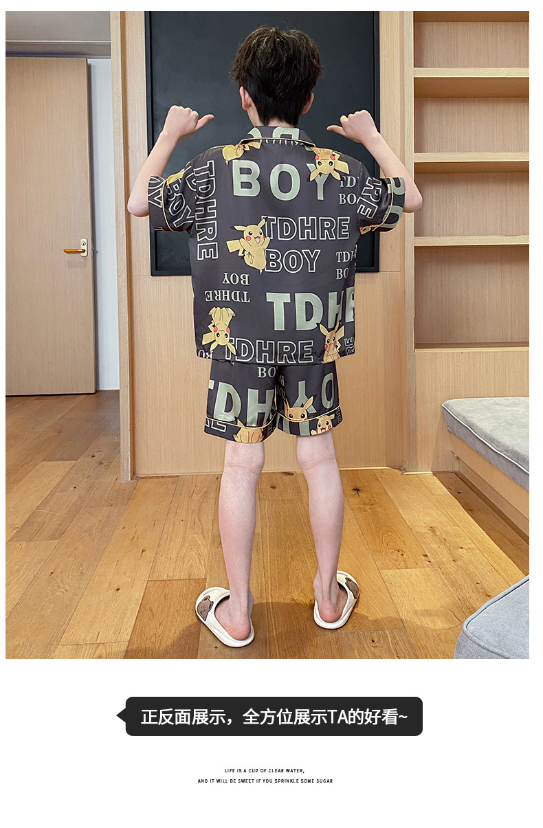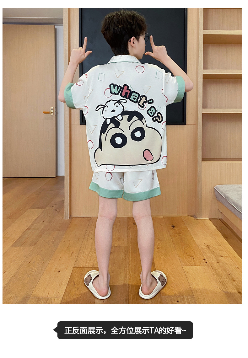 남학생 잠옷 여름 아이스 실크 얇은 짧은 소매 어린이 소년 2025 새로운 여름 십대 큰 아이들의 집 옷스토어 가기