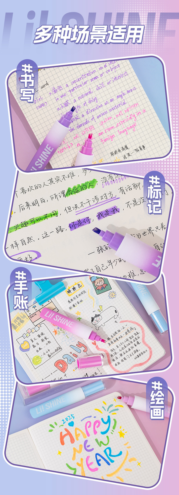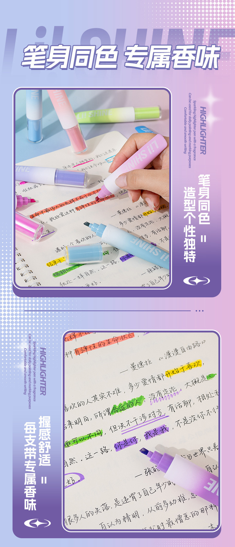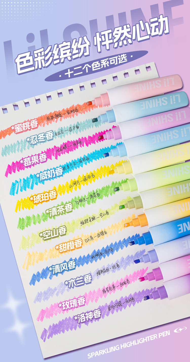 반짝이는 색상 거친 마킹 키 마커 높은 색상 값 그라디언트 형광 펜 마커가있는 나무 숲 형광 펜 마커스토어 가기