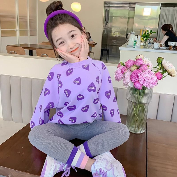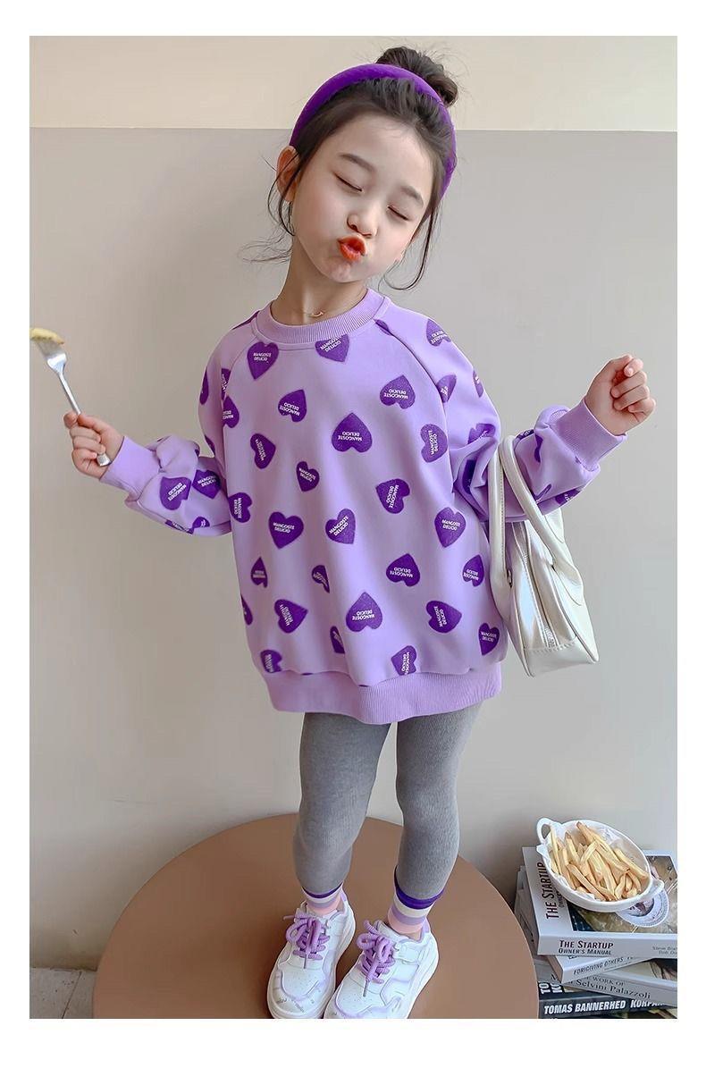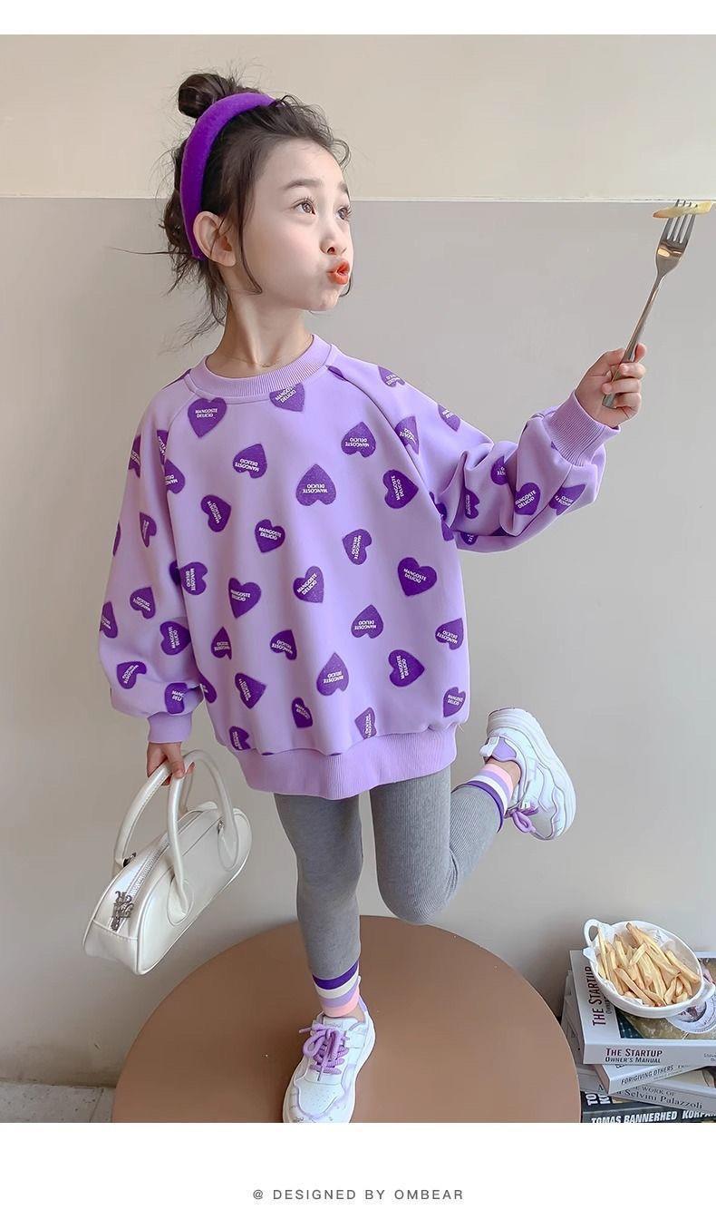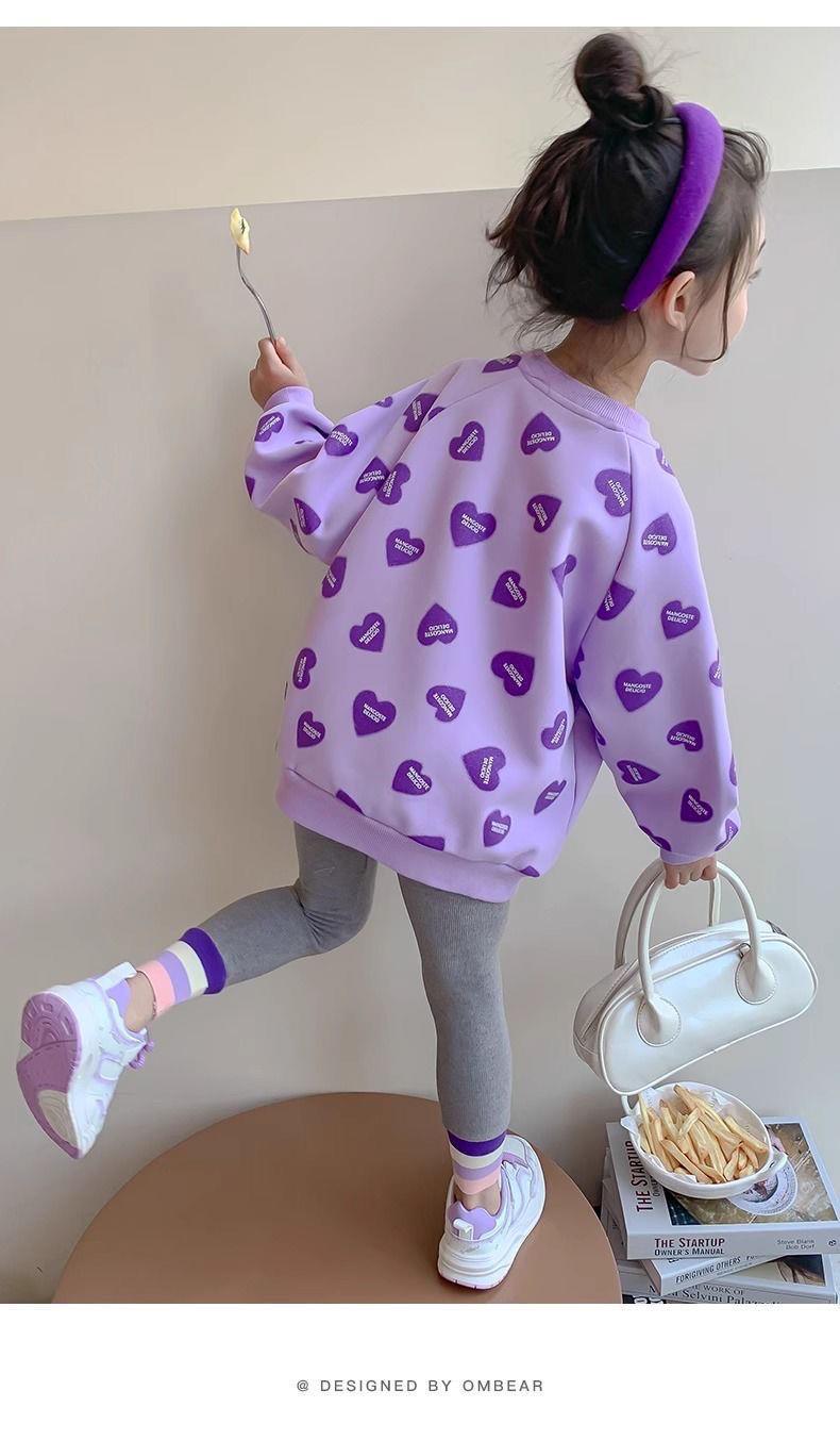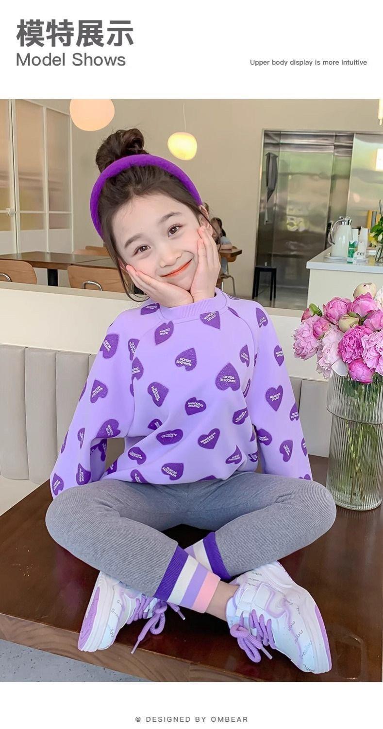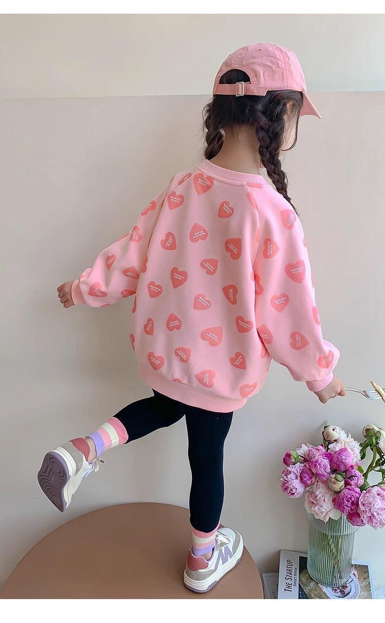 봄과 가을 새로운 2025 소녀 사랑 크루 넥 스웨트 셔츠 스타일 귀여운 인터넷 유행 긴 소매 티셔츠 아기 소녀스토어 가기