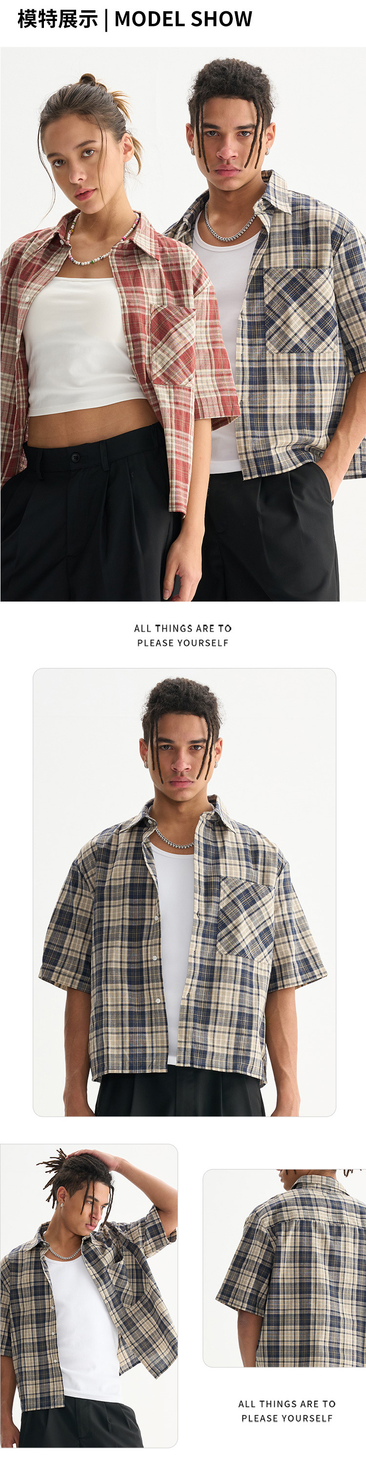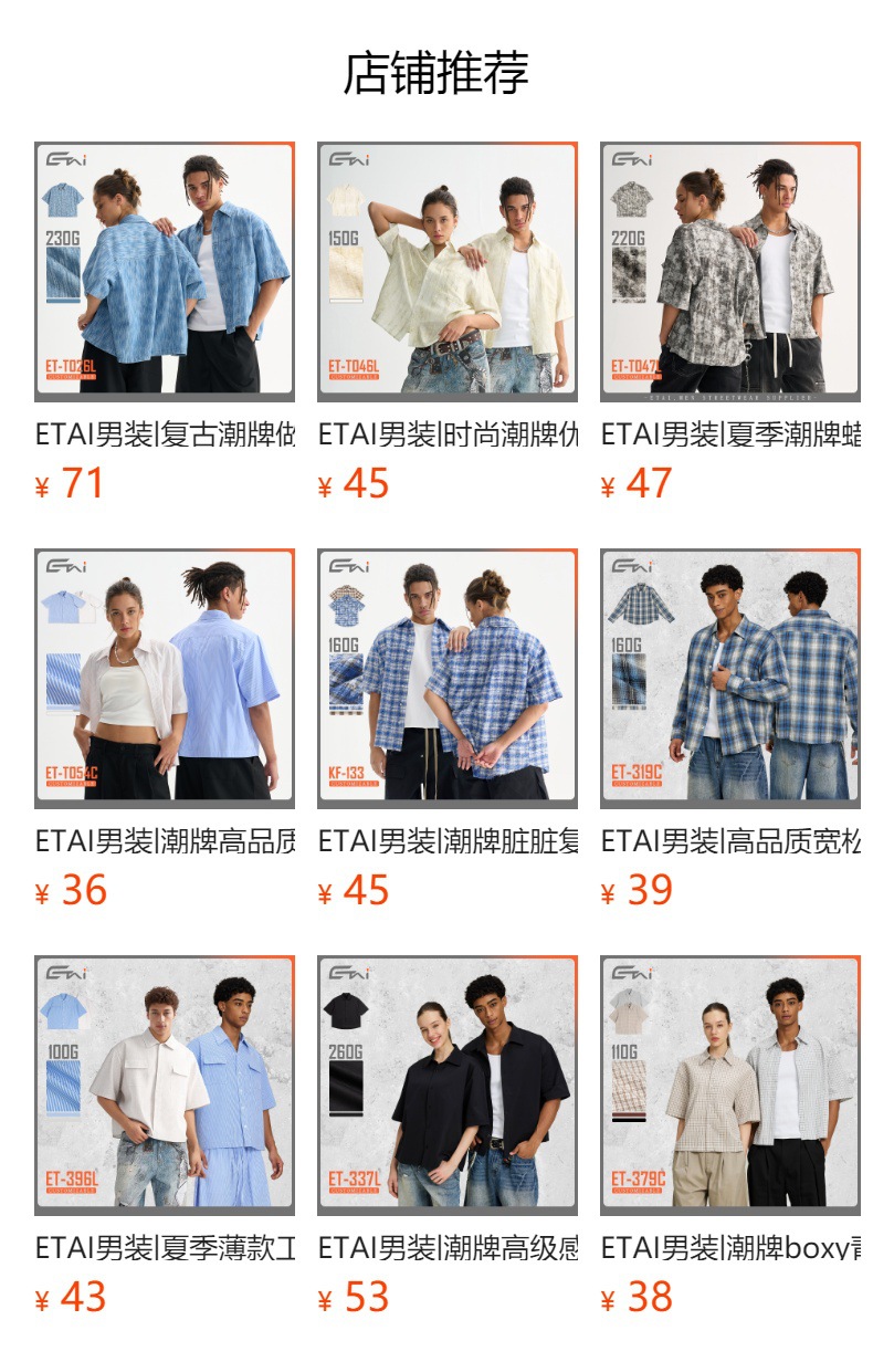 ETAI 남성복 | 차오 브랜드 콘트라스트 컬러 짧은 격자 무늬 짧은 소매 남성용 하이 퀄리티 봄/여름 커플 박시 셔츠스토어 가기