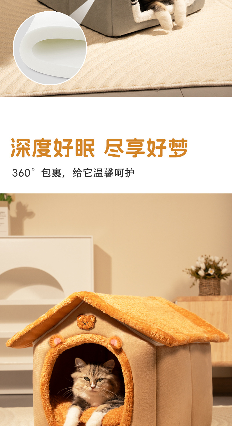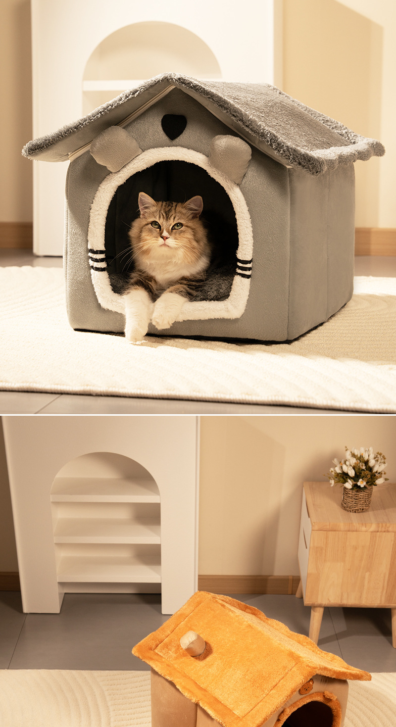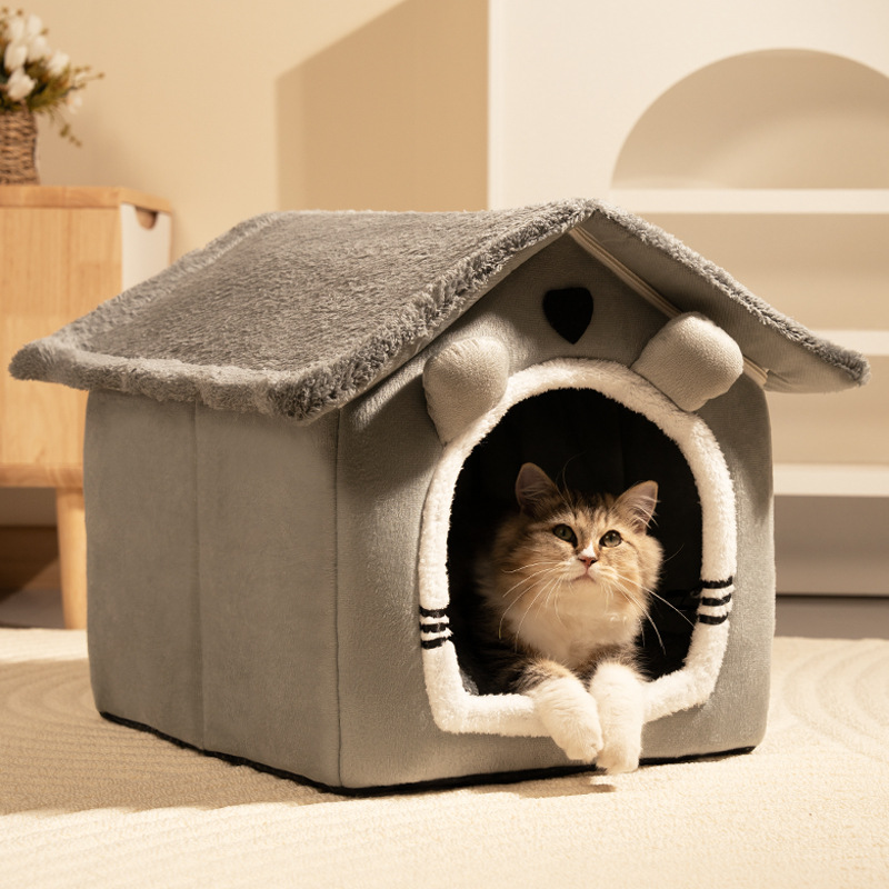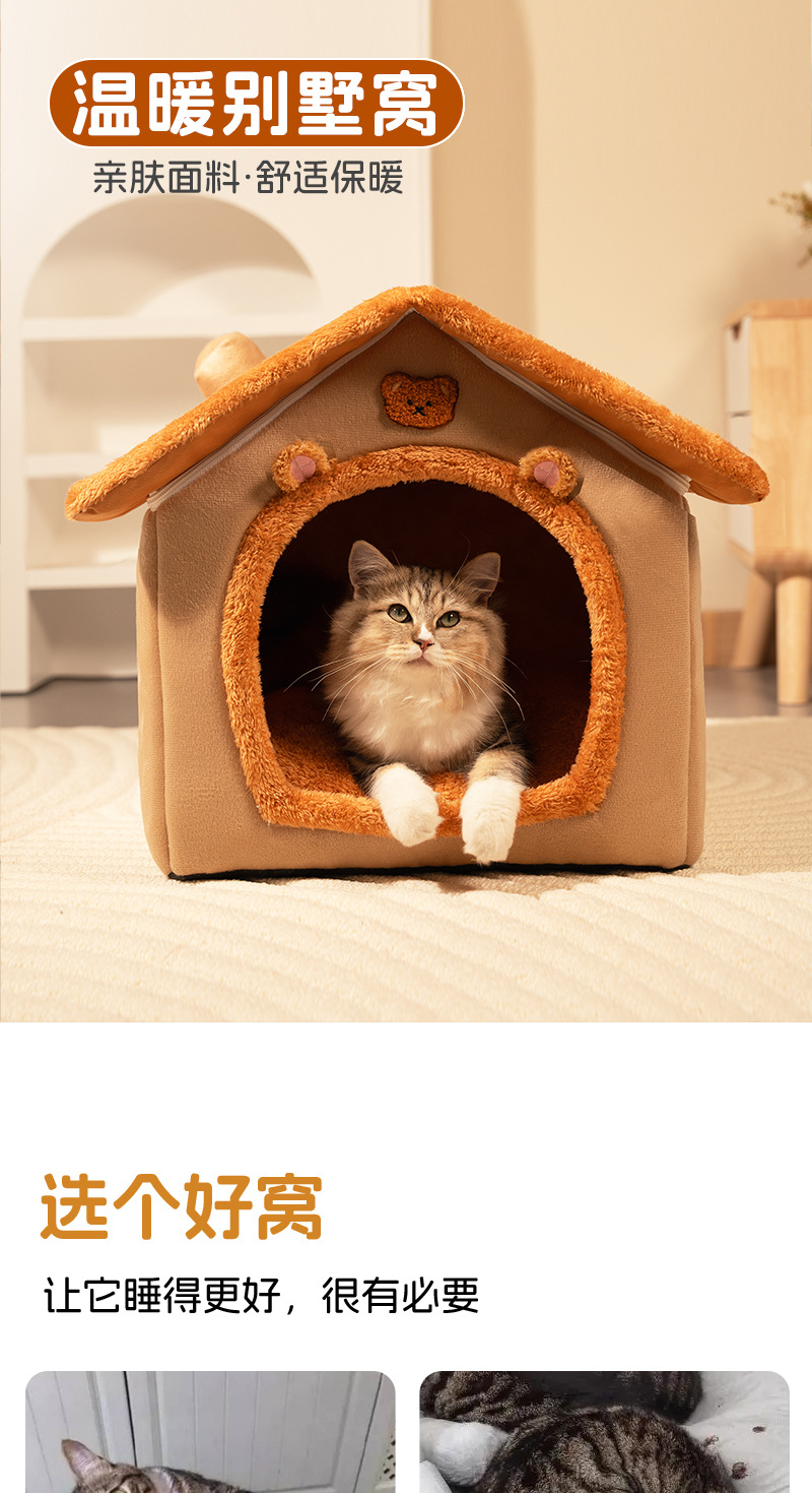 맞춤형 애완동물 개집, 탈부착 및 세탁 가능한 개 개집 및 고양이 개집, 따뜻하고 사계절 모두 사용 가능, 소형견 수면 개집, 반밀폐형 개집스토어 가기