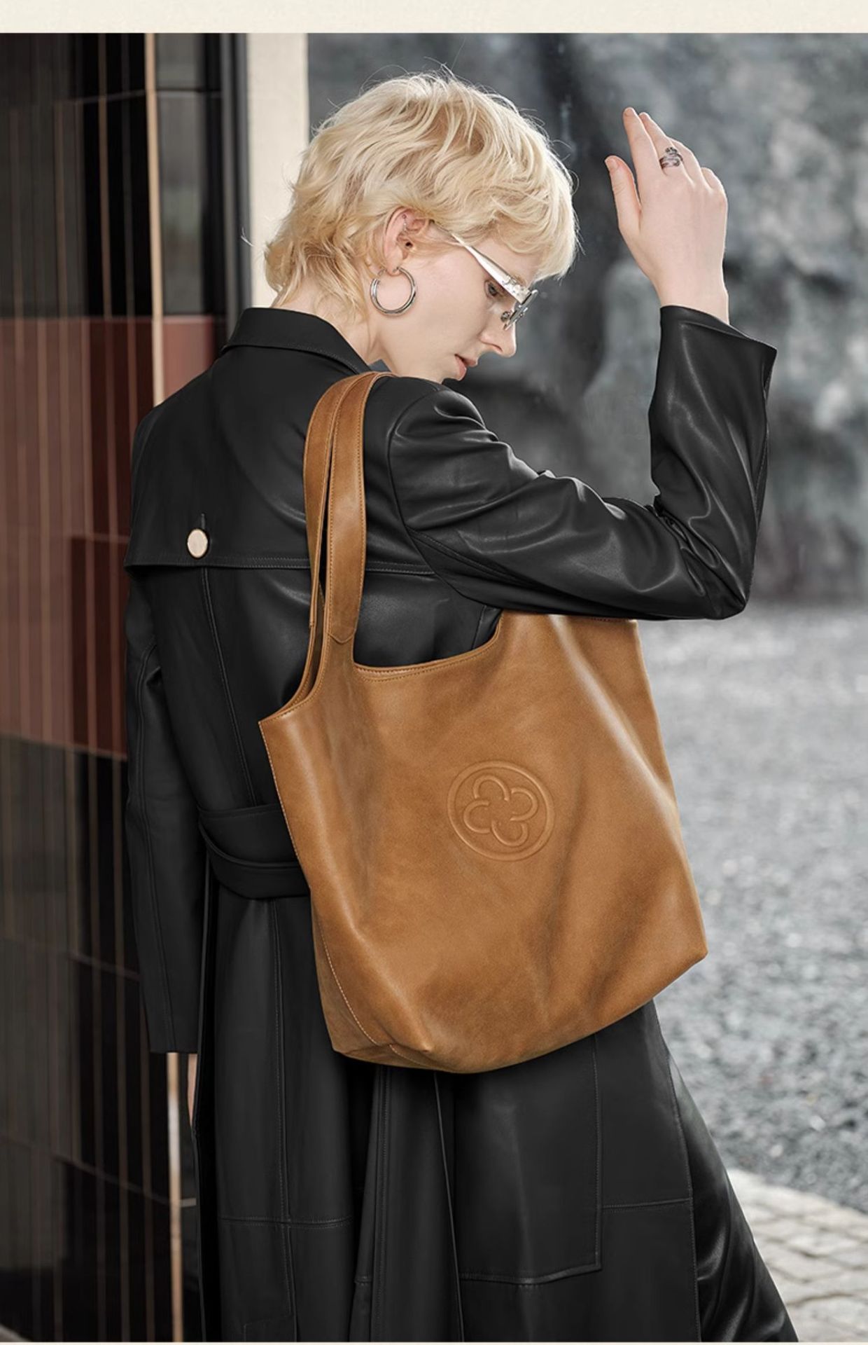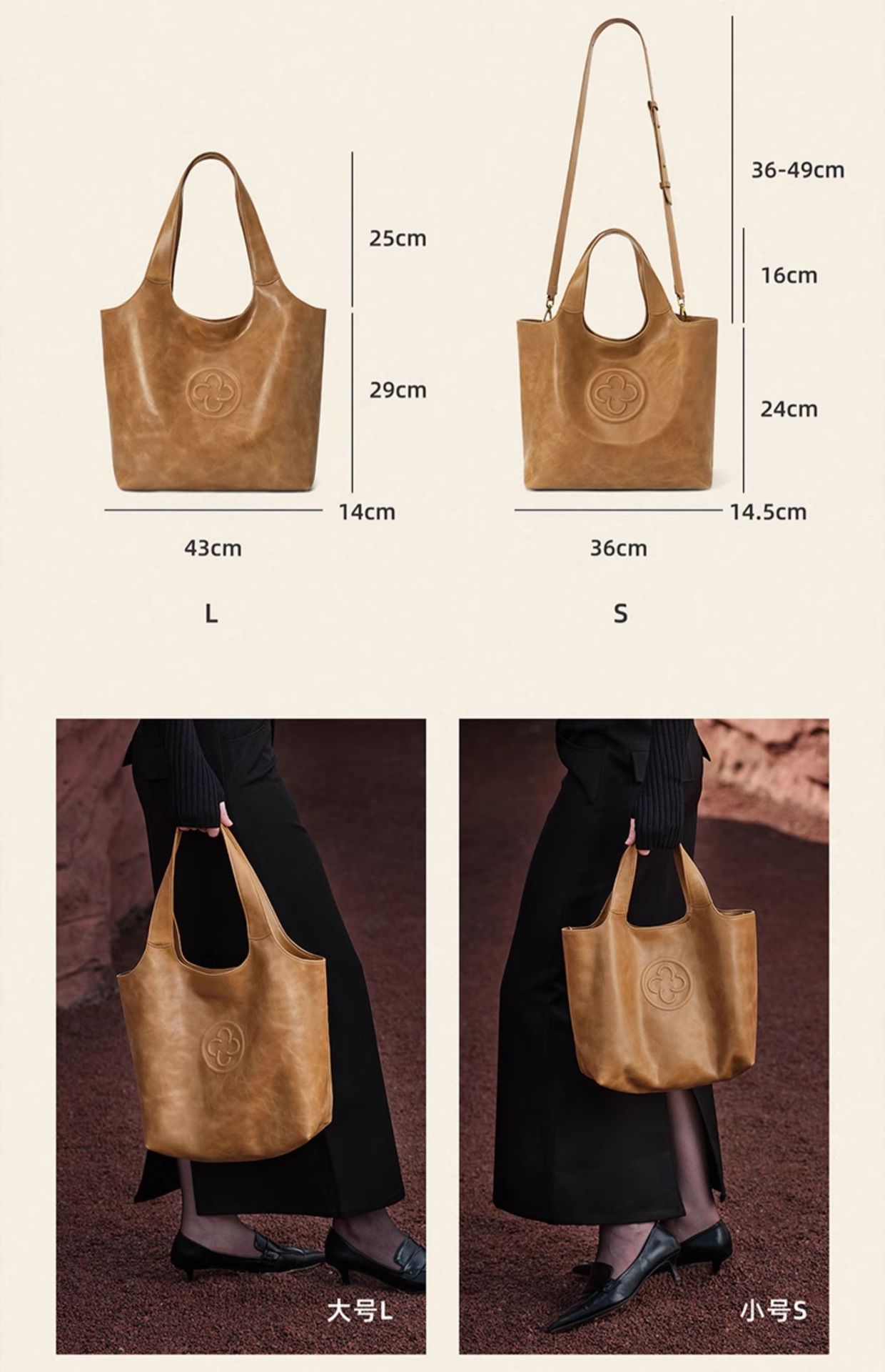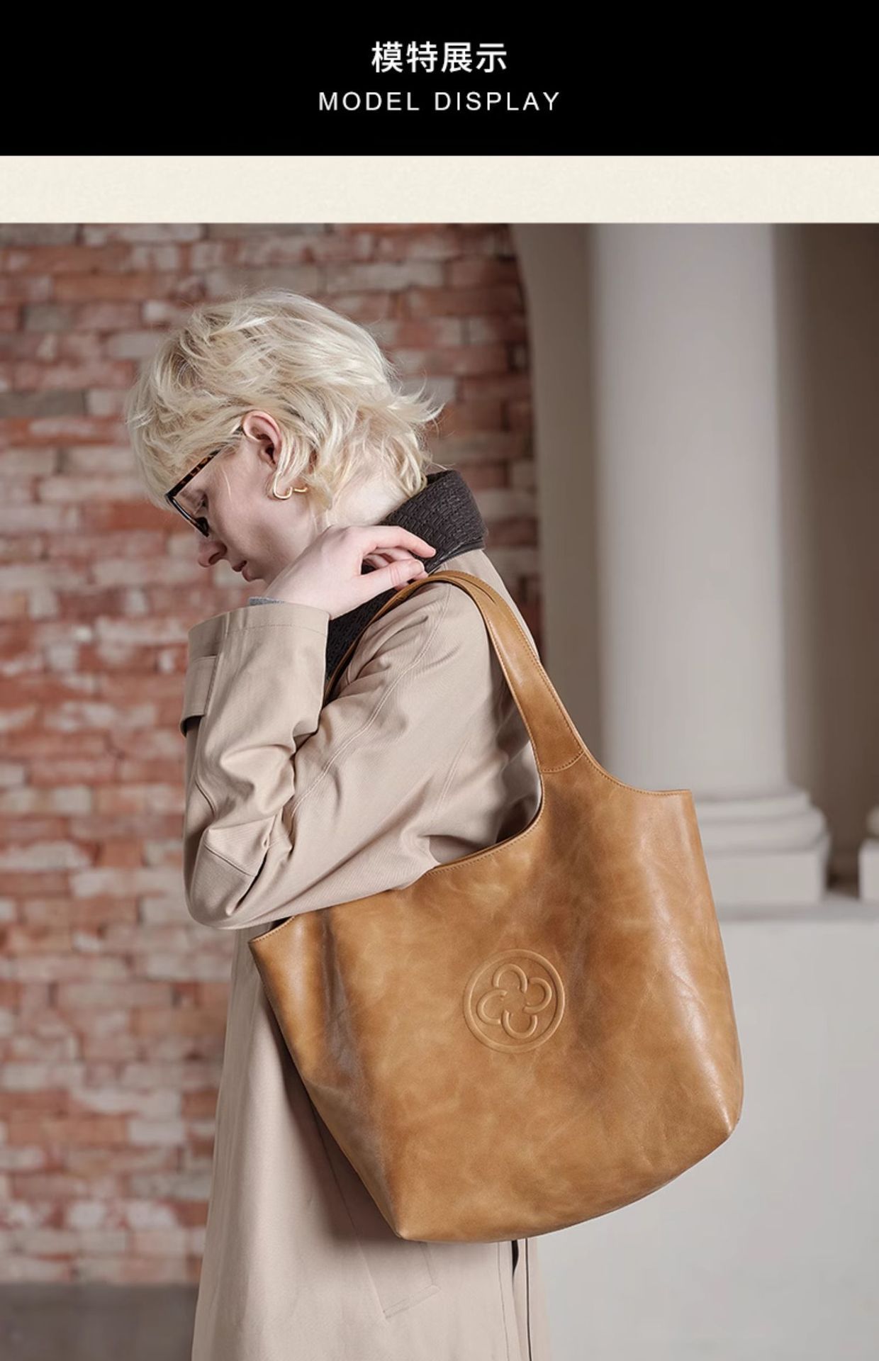 [우펭 같은 스타일] 카슬러 조끼 가방 토트 백 여성 레트로 대용량 야채 태닝 코가죽 싱글 숄더 언더암 가방