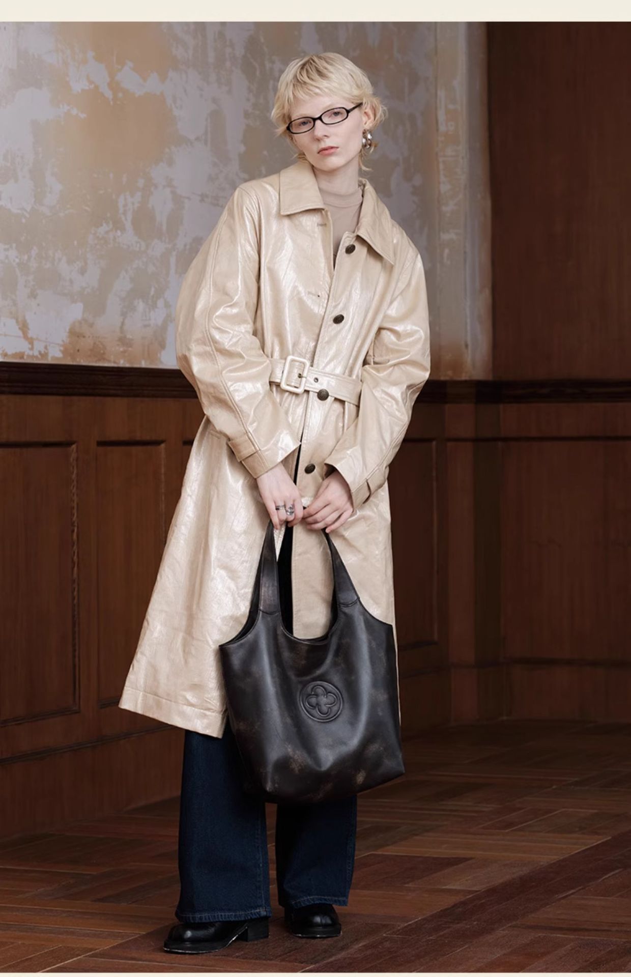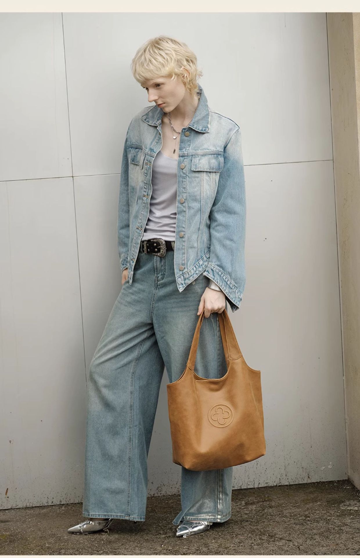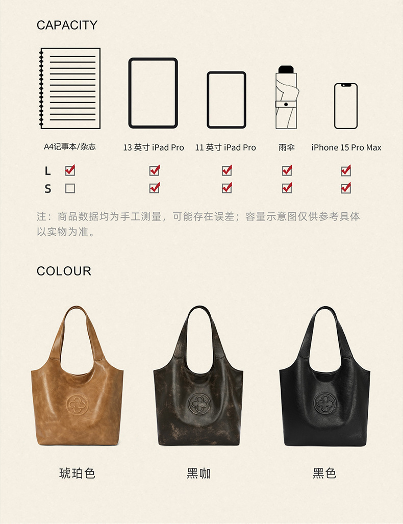 [우펭 같은 스타일] 카슬러 조끼 가방 토트 백 여성 레트로 대용량 야채 태닝 코가죽 싱글 숄더 언더암 가방