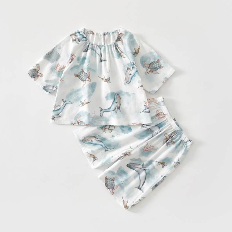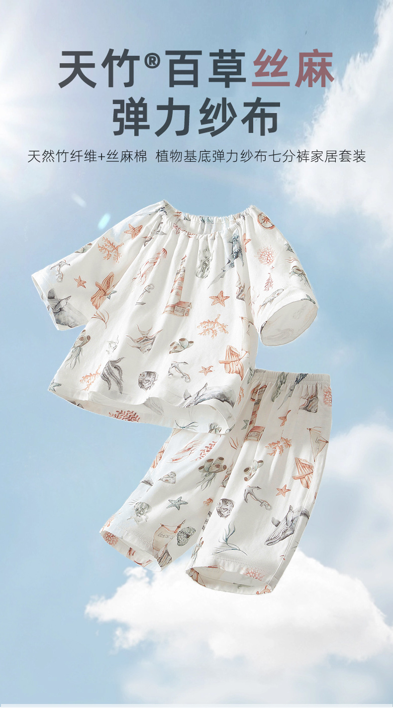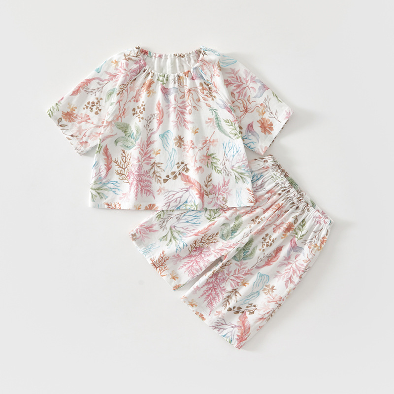 어린이 홈 의류 여름 실크 리넨 거즈 아기 잠옷 소년 소녀 홈 세트 에어컨 의류 얇은 투피스 세트스토어 가기