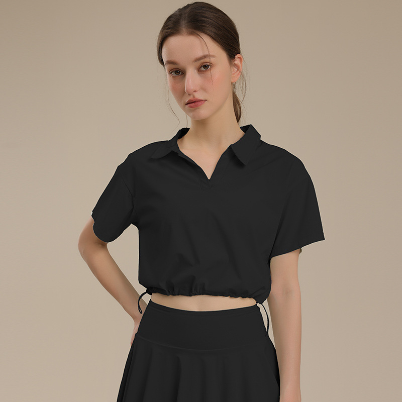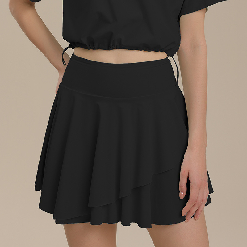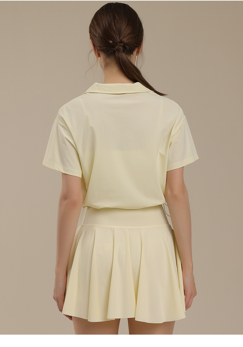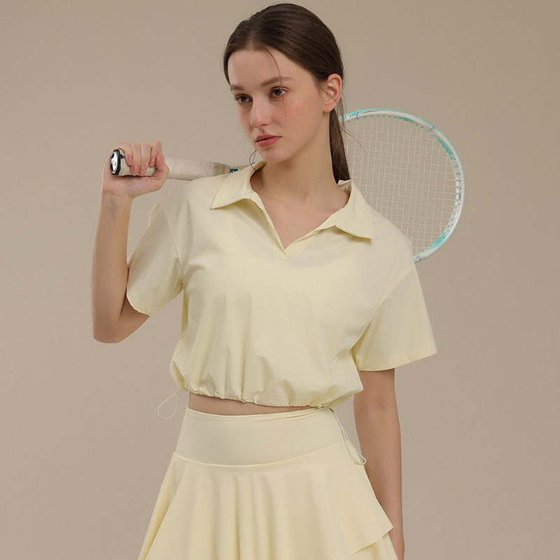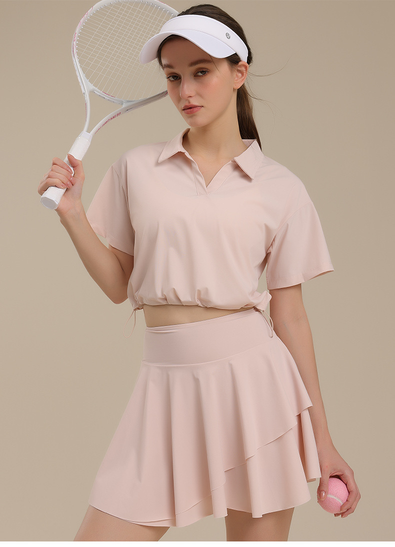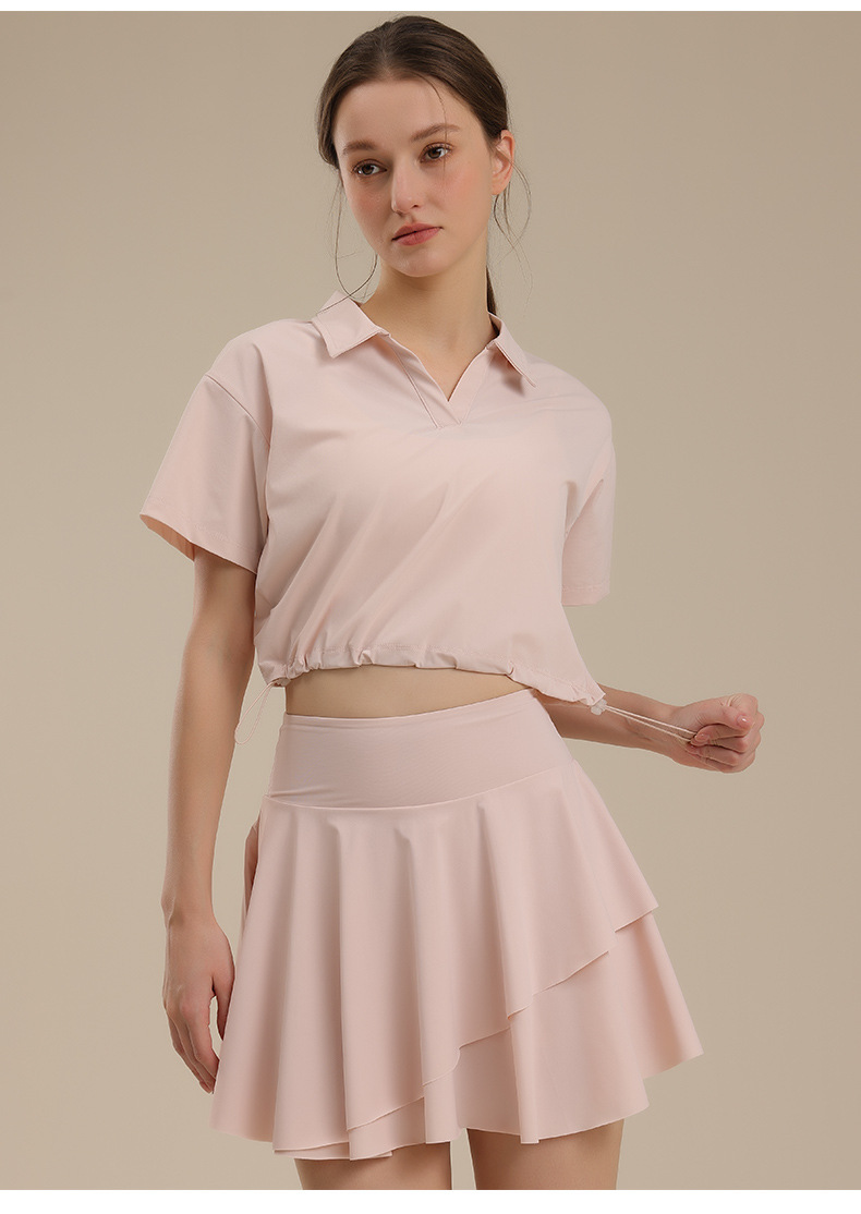 얼음 느낌 빠른 건조 선 스크린 피트니스 요가 세트 여성용 드로우 로우 아우터 반팔 높은 허리 안티 눈부심 짧은 스커트 투피스 세트