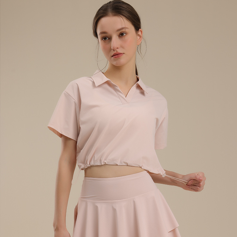 얼음 느낌 빠른 건조 선 스크린 피트니스 요가 세트 여성용 드로우 로우 아우터 반팔 높은 허리 안티 눈부심 짧은 스커트 투피스 세트스토어 가기