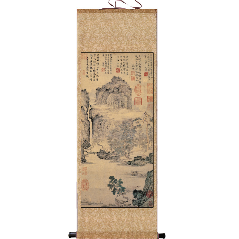 Tang Yin 풍경 서예 및 그림 골동품 유명한 서예 및 그림 호텔 장식 교수형 그림 실크 선물 두루마리 그림 꽃과 새 서예 및 그림