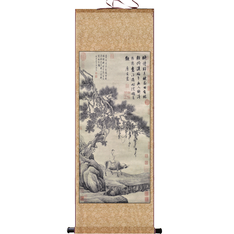 Tang Yin 풍경 서예 및 그림 골동품 유명한 서예 및 그림 호텔 장식 교수형 그림 실크 선물 두루마리 그림 꽃과 새 서예 및 그림스토어 가기