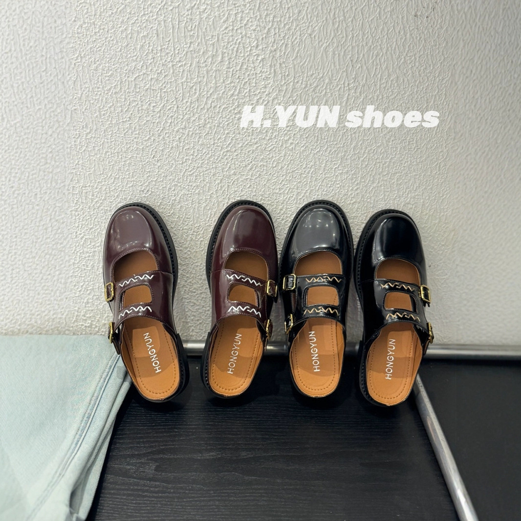 2025 봄과 여름 새로운 빈티지 가죽 로퍼 여성 멩케 작은 가죽 신발 슬립 온 올 매치 캐주얼 싱글 레이어 신발스토어 가기