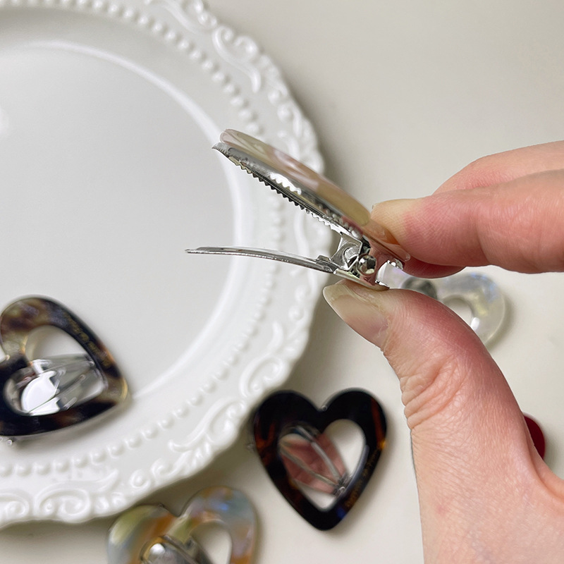 새로운 속이 빈 사랑 아세트산 헤어 클립 귀여운 소녀 깨진 머리 앞머리 클립 오리 지폐 클립 달콤한 올 매치 사이드 클립 헤어 액세서리