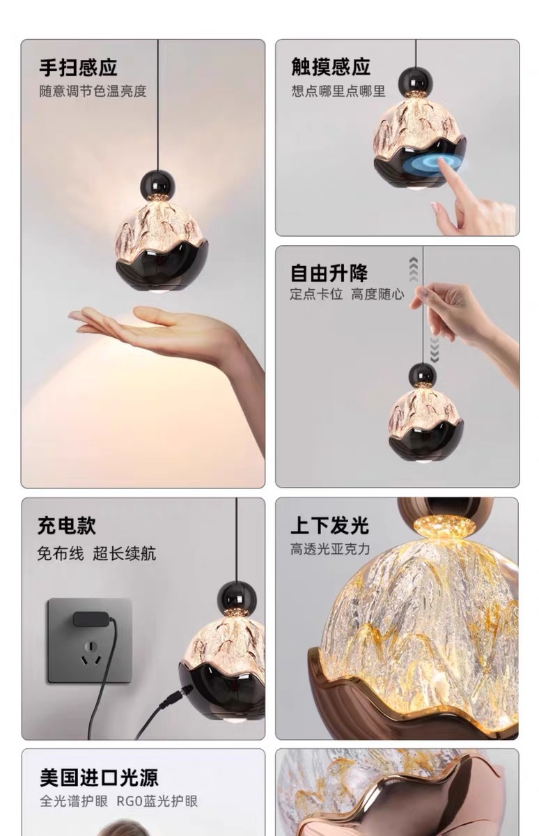 스노우 마운틴 침실 침실 샹들리에 고급 센스 라이트 럭셔리 핸드 스위프 라이프 테이블 마스터 침실 입구 장식 작은 교수형 중산 램프