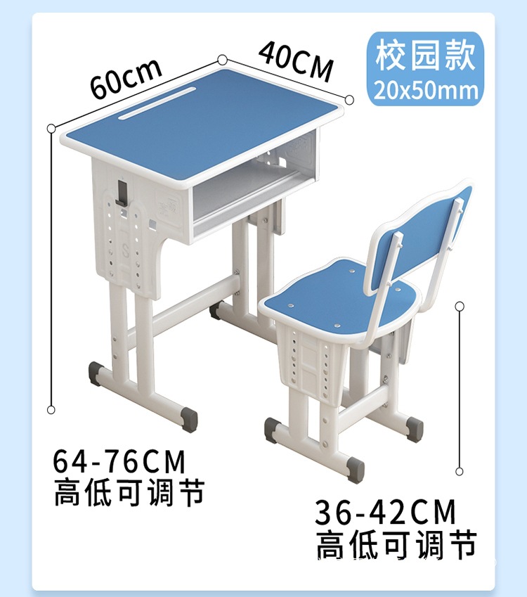 • [기간한정 손실] 캠퍼스 스타일 [4cm 두께의 철기둥] 이중 기둥 책상과 의자 + 블루
