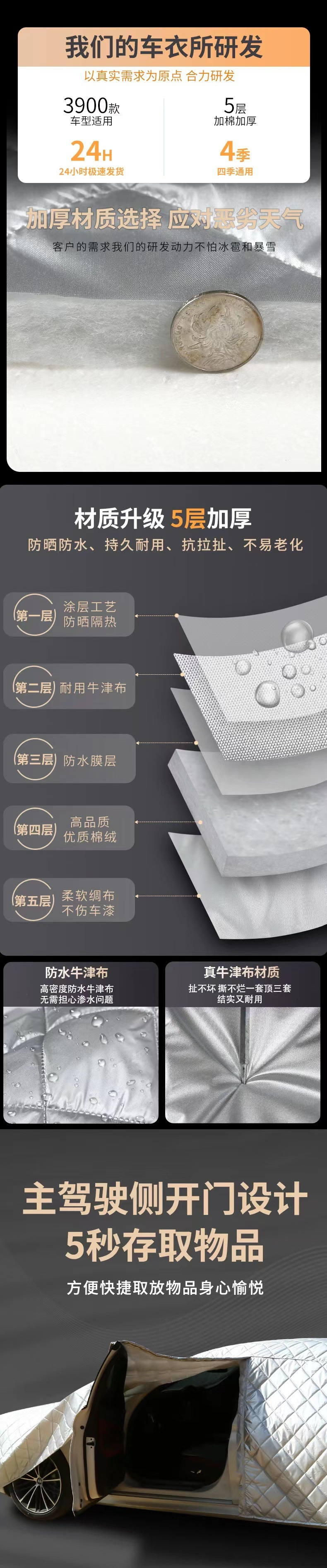 새로운 두껍게 된면 자동차 재킷 전체 자동차 커버 태양 방지 비방 우박 자동차 커버 단열 양산 커버 커버 천