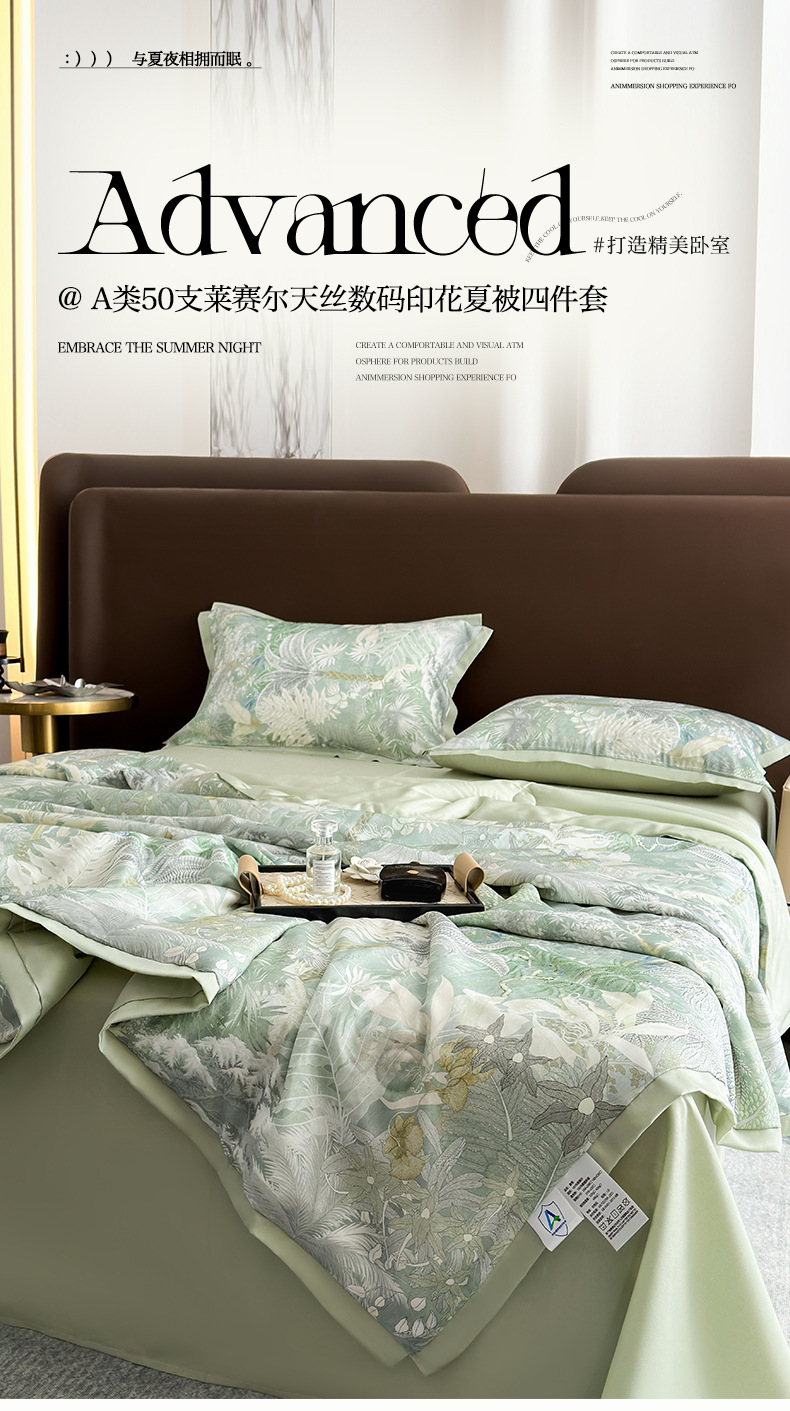클래스 A 50 Lyocell Tencel 여름 퀼터 4 조각 빛 럭셔리 인쇄 에어컨 퀼터 여름 쿨 퀼터 싱글 더블 여름스토어 가기