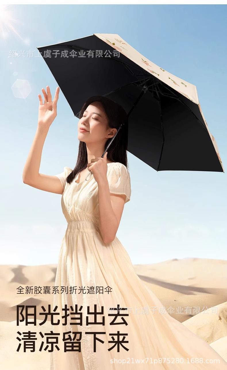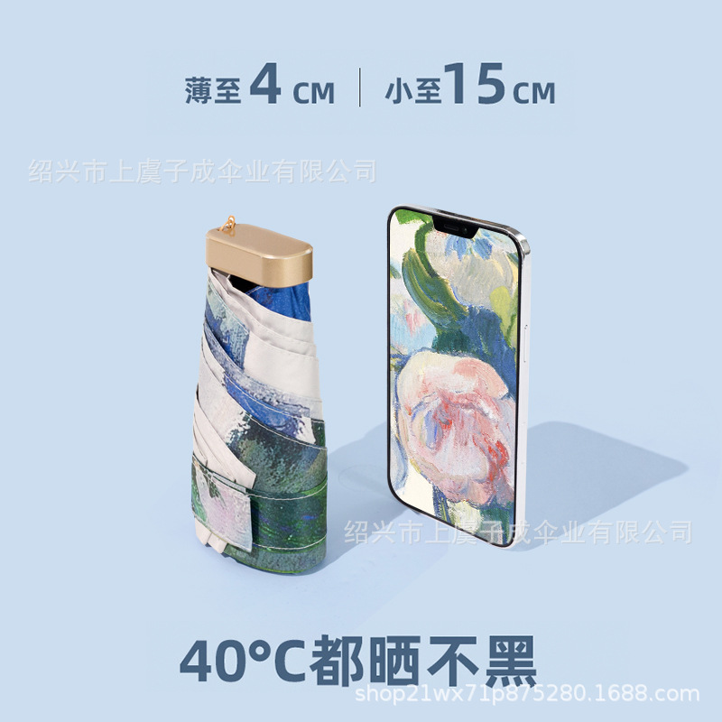 TikTok Little Red Book 폭발 작은 휴대용 유화 Guofeng Sun 우산 태양 보호 UV 보호 여성 미니 우산
