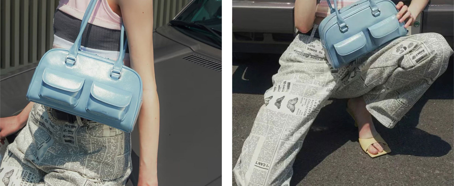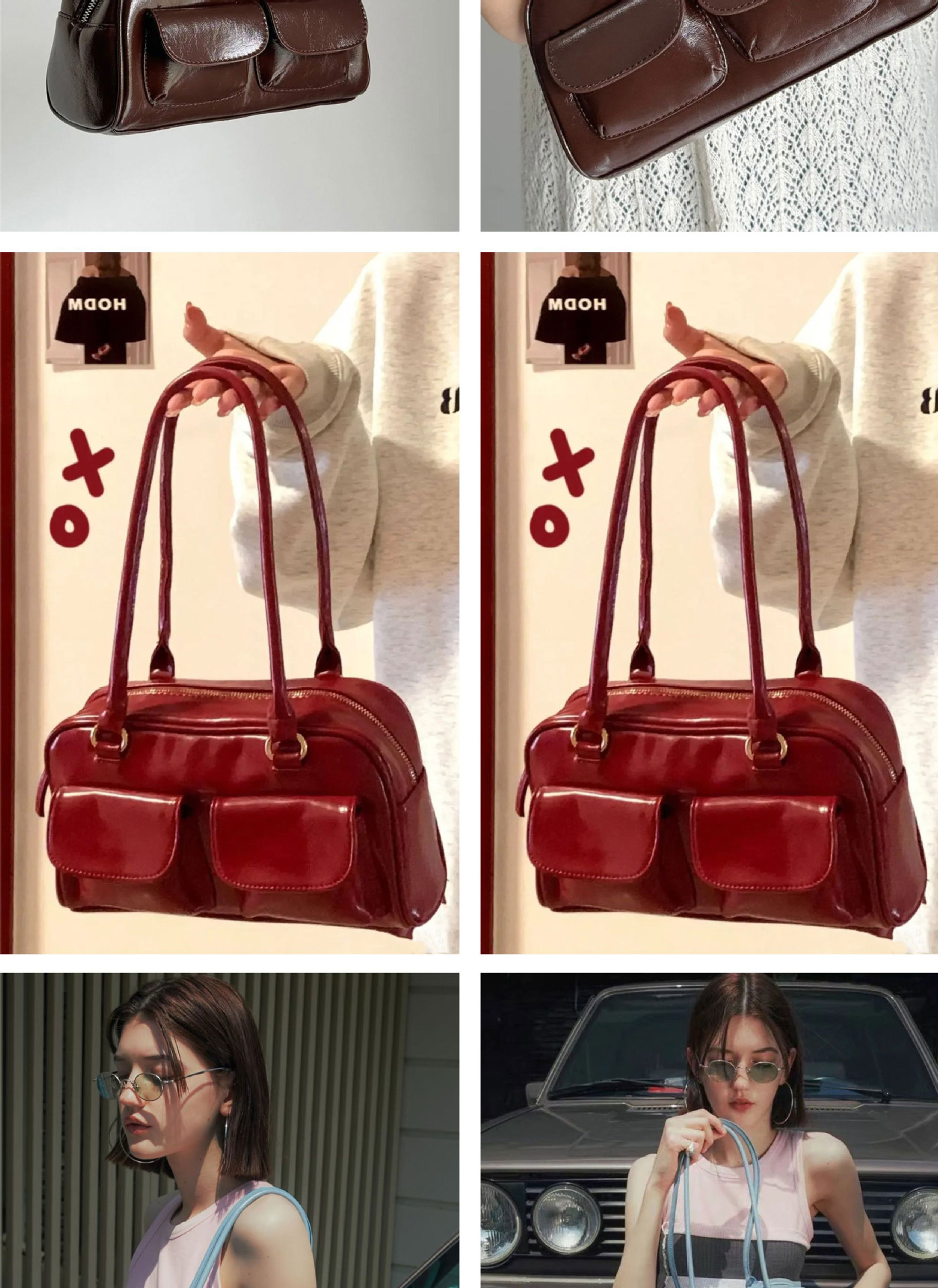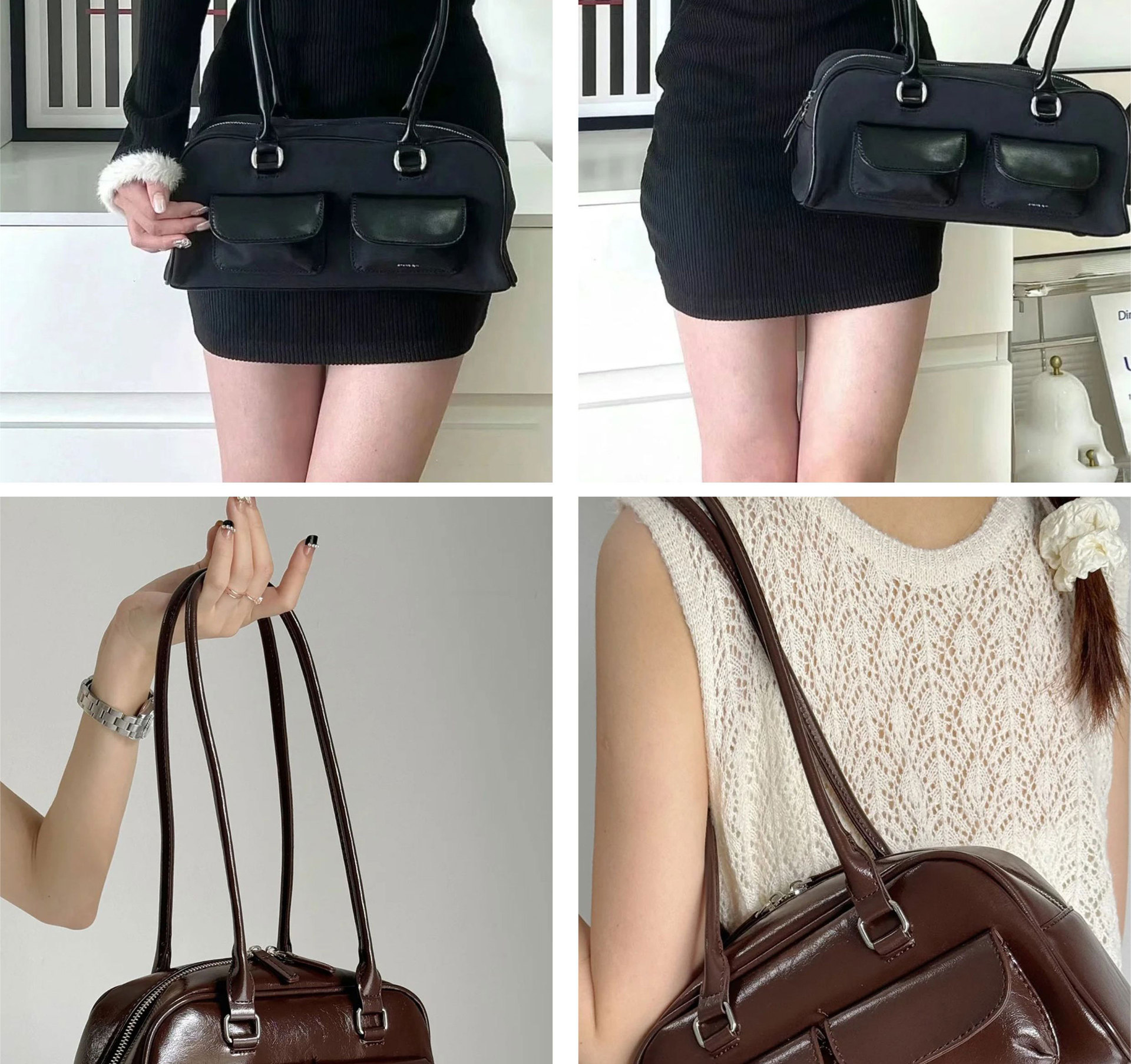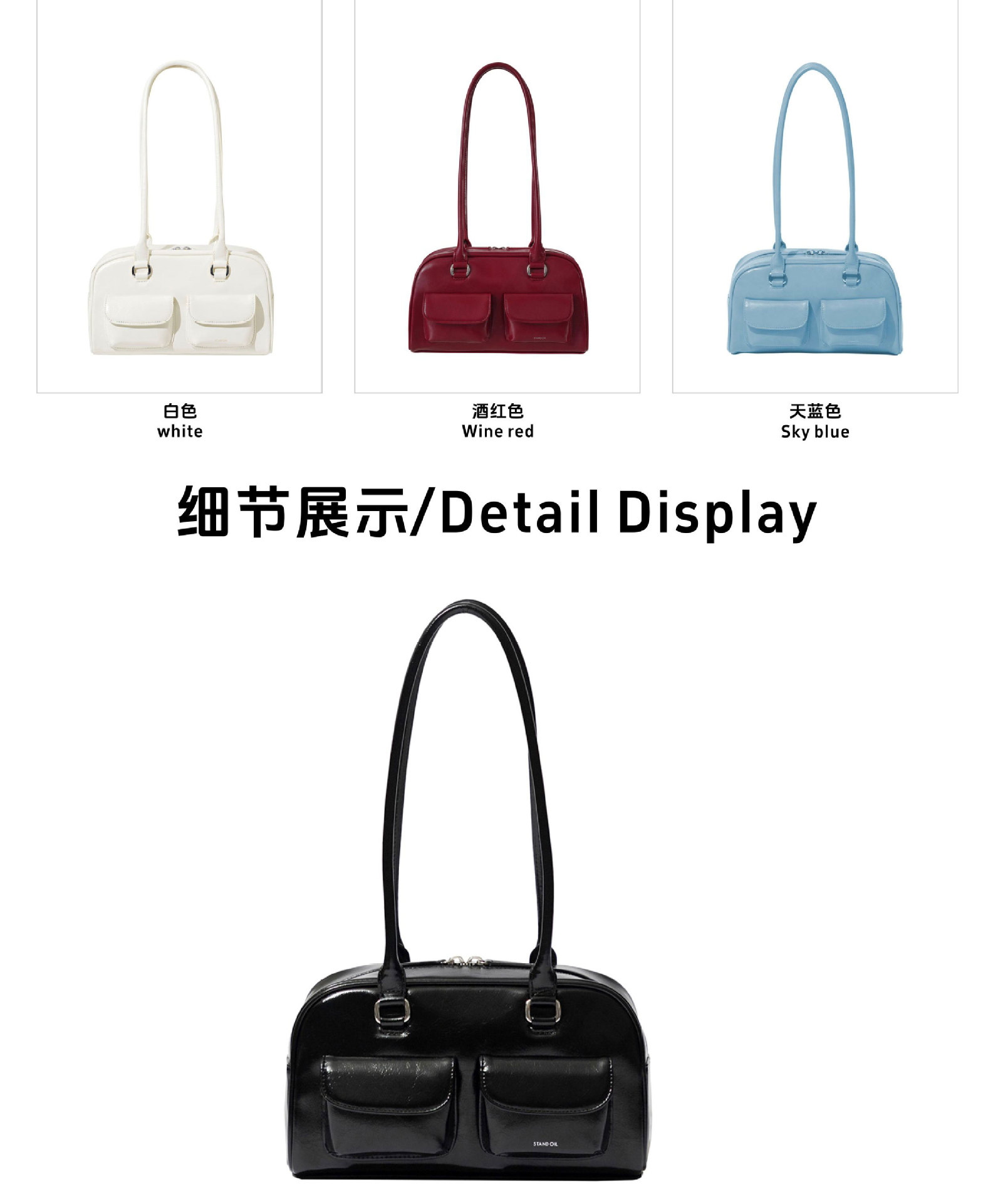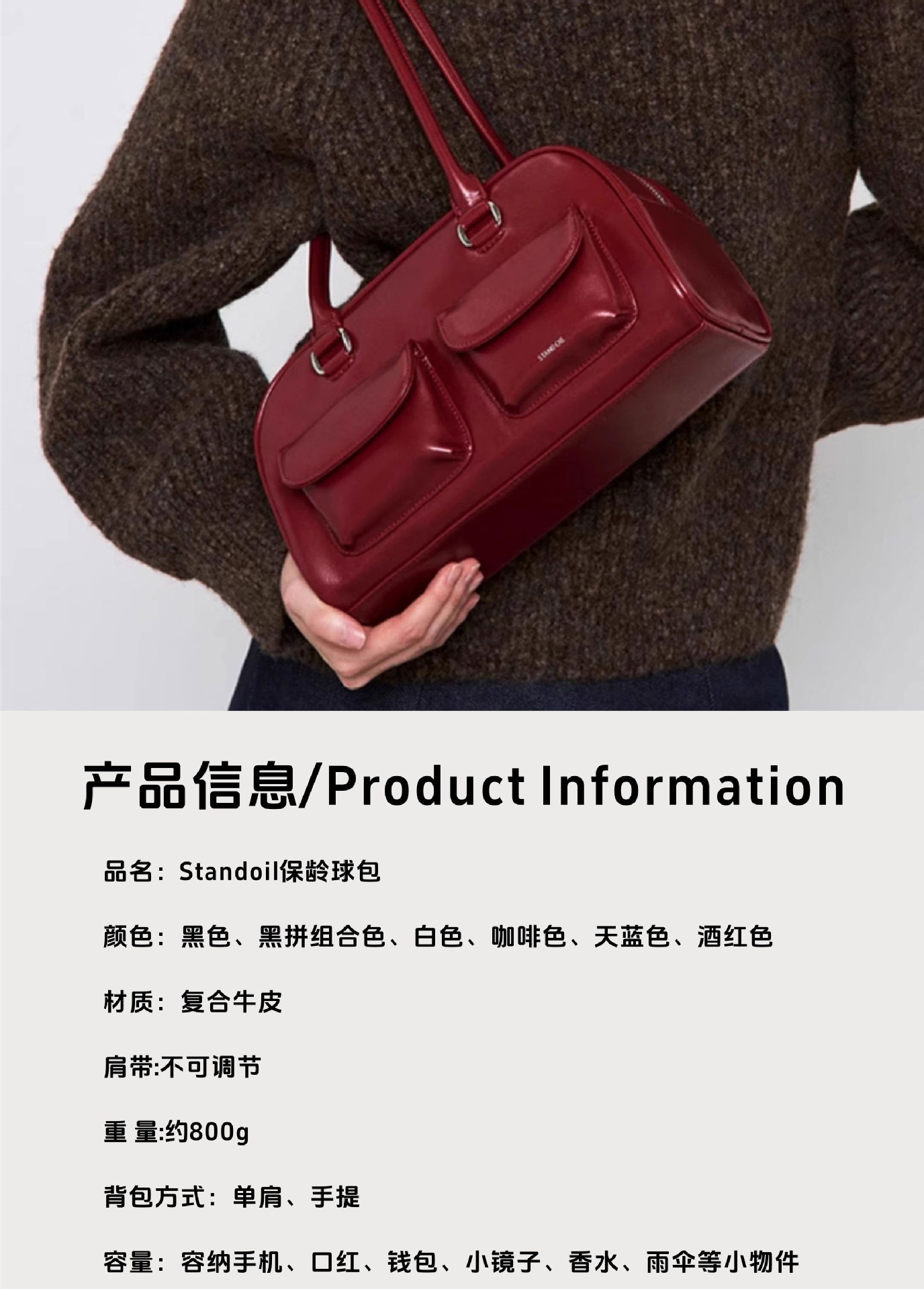 한국 Xu Yunzhen 같은 스타일 스탠드 볼링 가방 틈새 가벼운 럭셔리 보스턴 가방 패션 어깨 핸드백