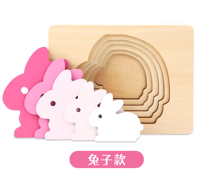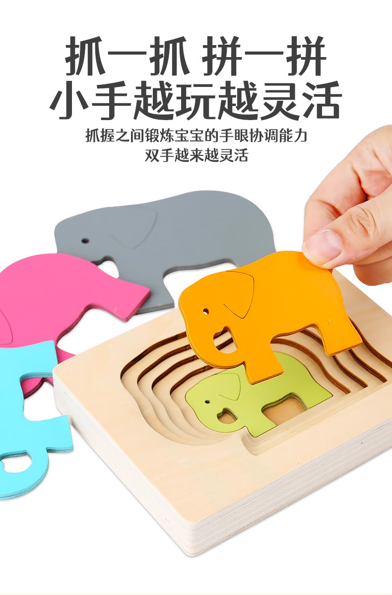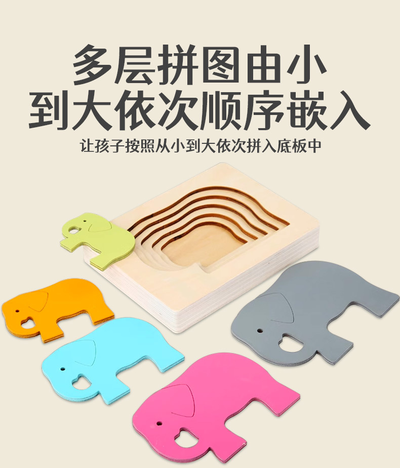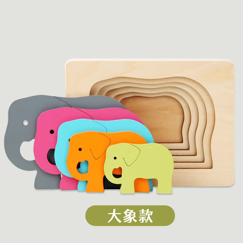 나무 다층 3 차원 퍼즐 감각 영역 어린이 교육 보조 조기 교육 퍼즐 그라디언트 프로그레시브 컬러 동물 패널스토어 가기