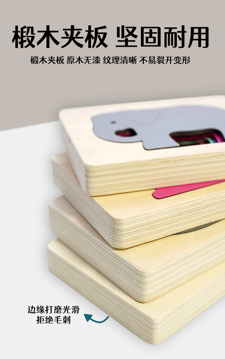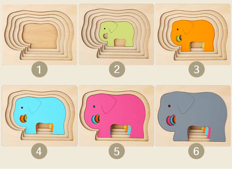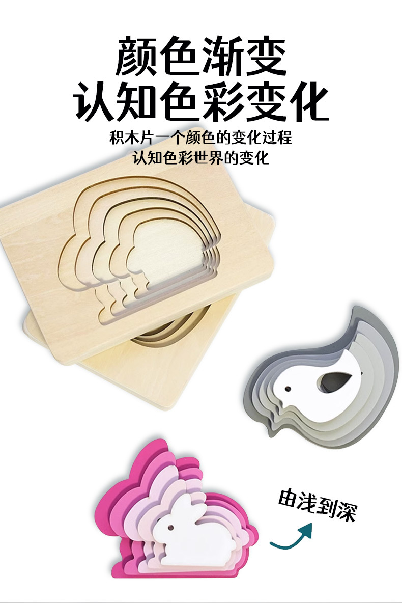 나무 다층 3 차원 퍼즐 감각 영역 어린이 교육 보조 조기 교육 퍼즐 그라디언트 프로그레시브 컬러 동물 패널
