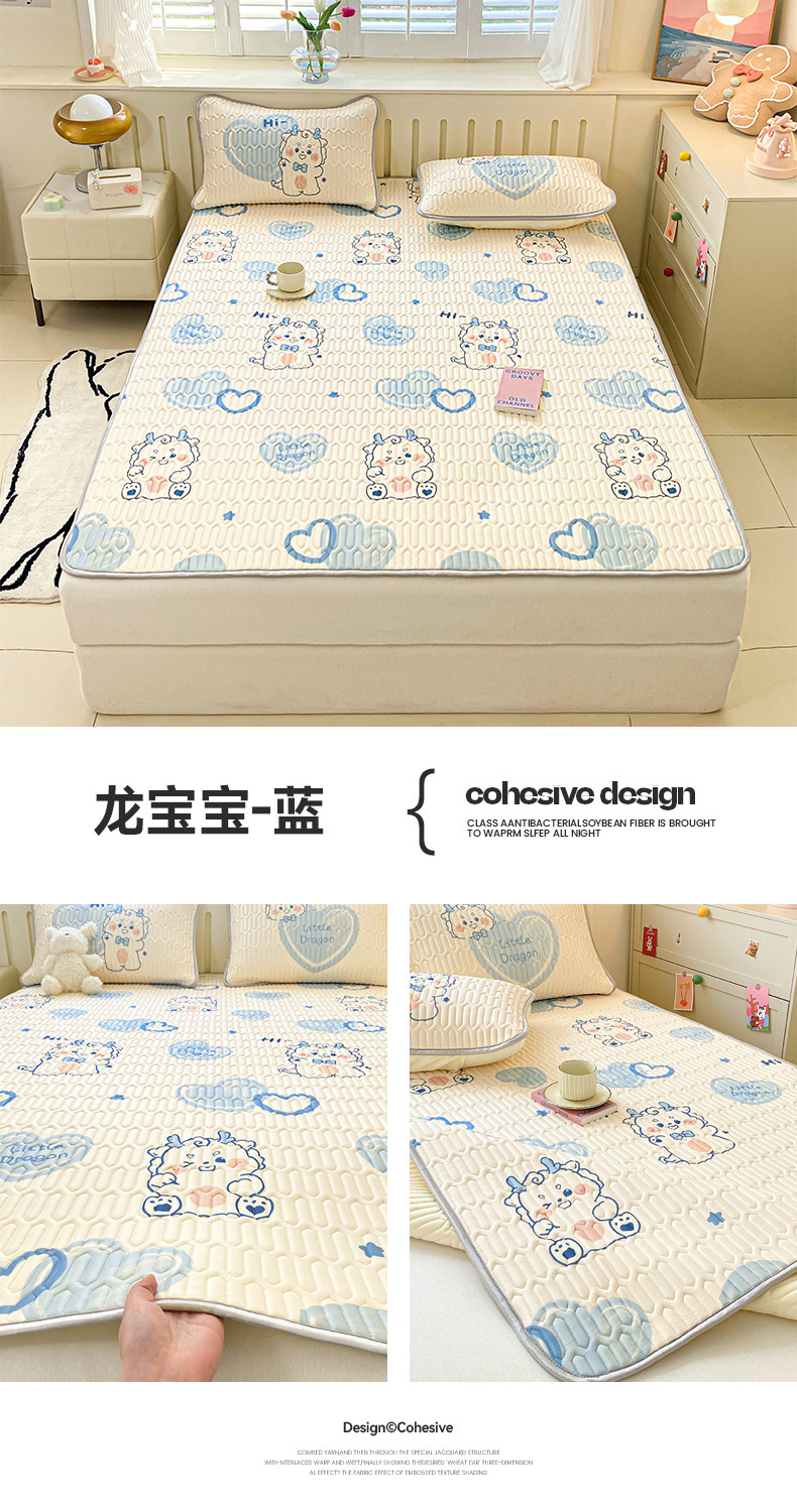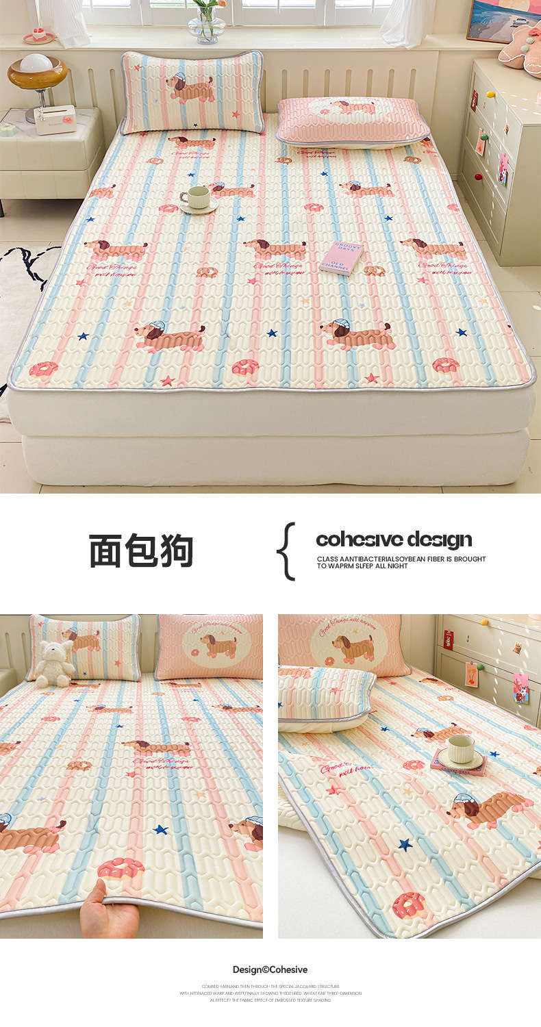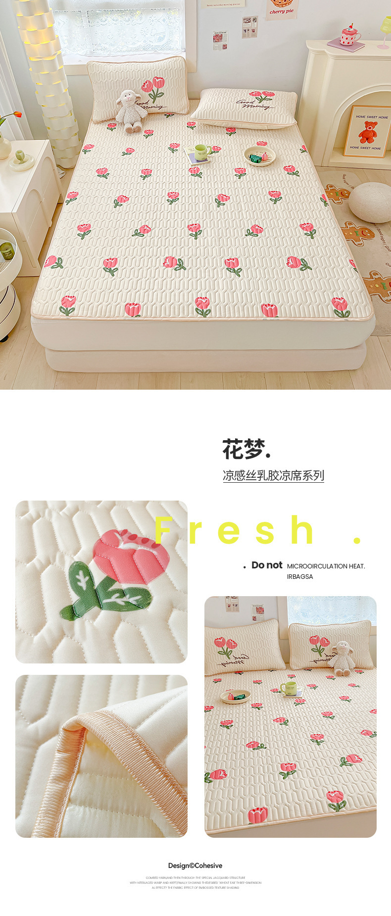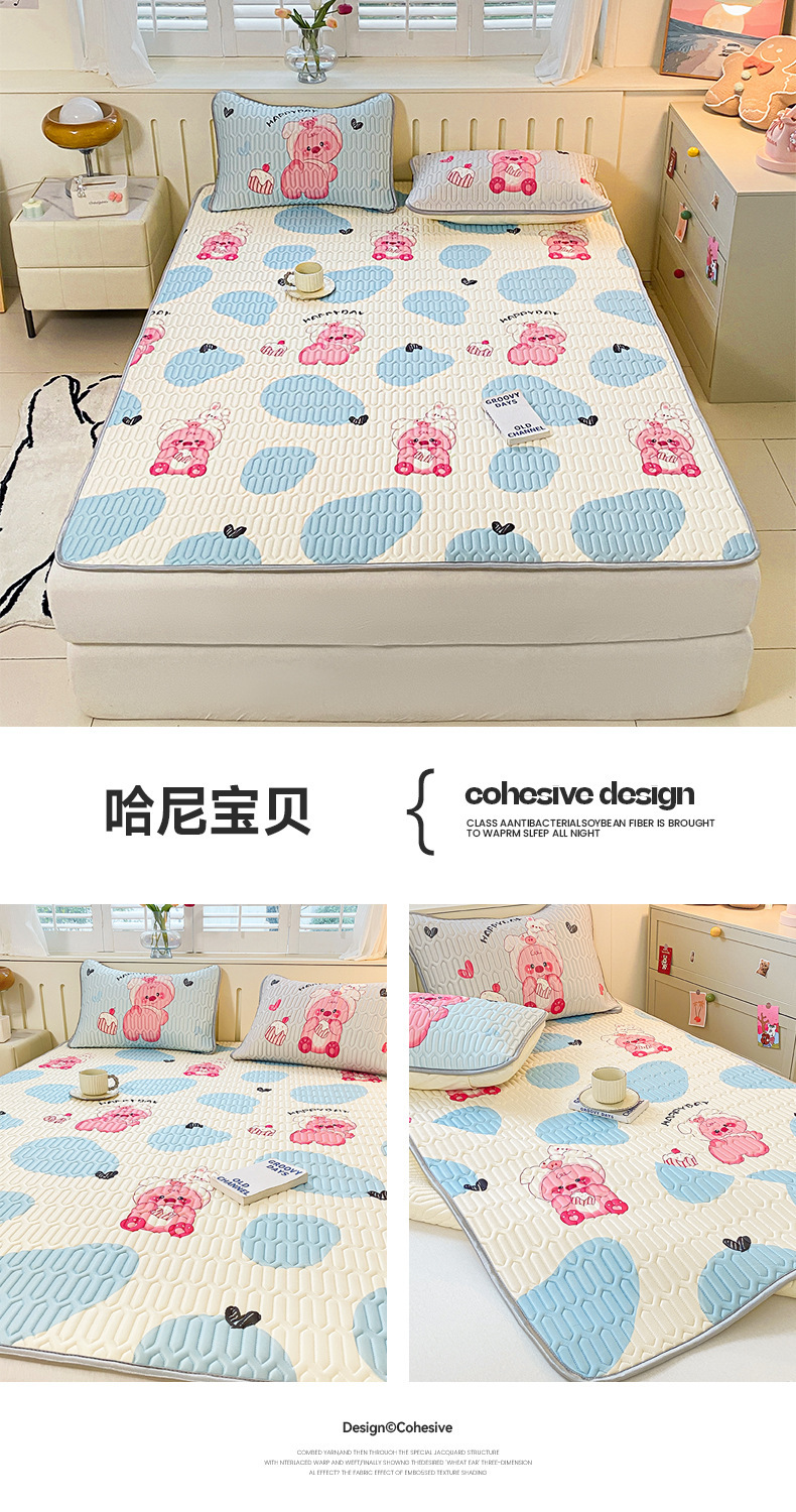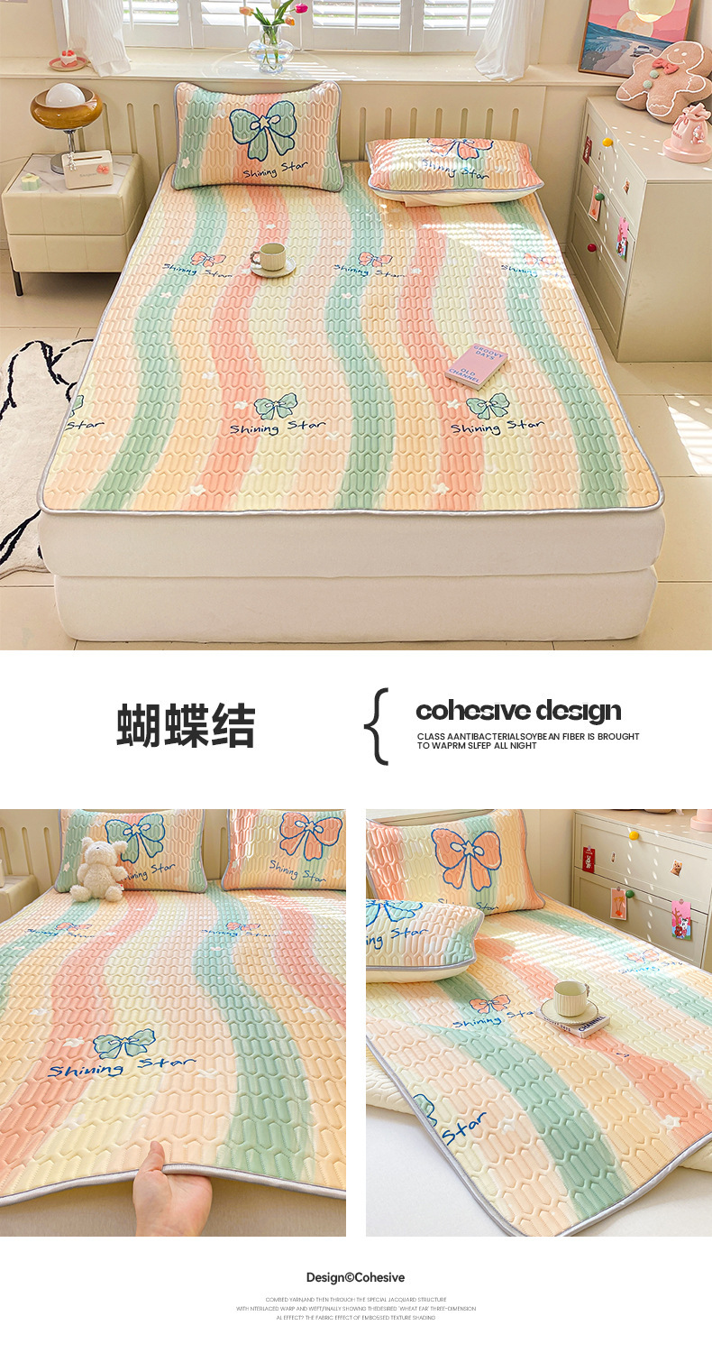 클래스 A 모성 및 유아 학년 여름 매트 3 조각 세트 라텍스 매트 아이스 실크 매트 침대 시트 침대 모자 기숙사 용 단일 세척 가능