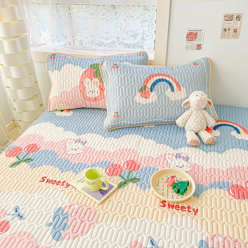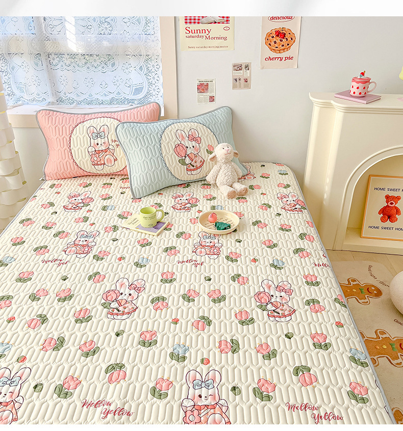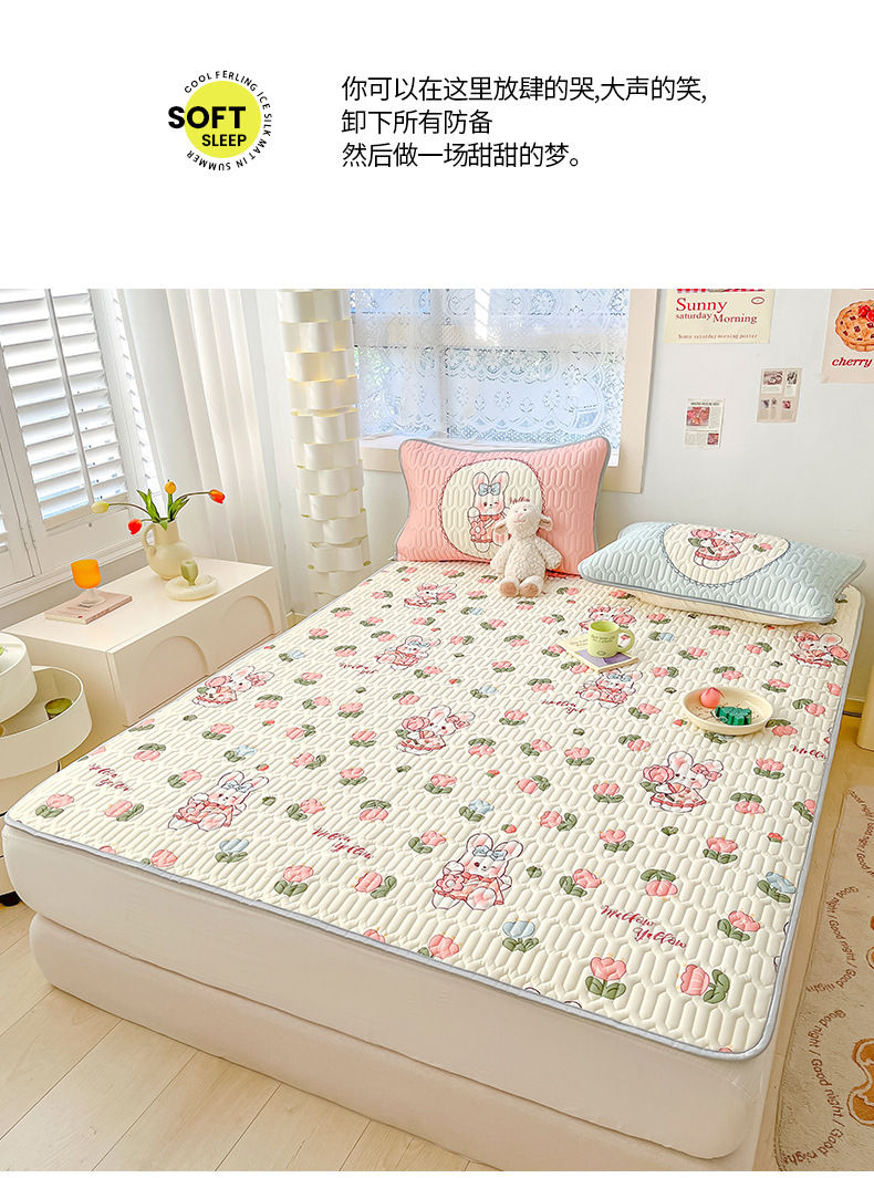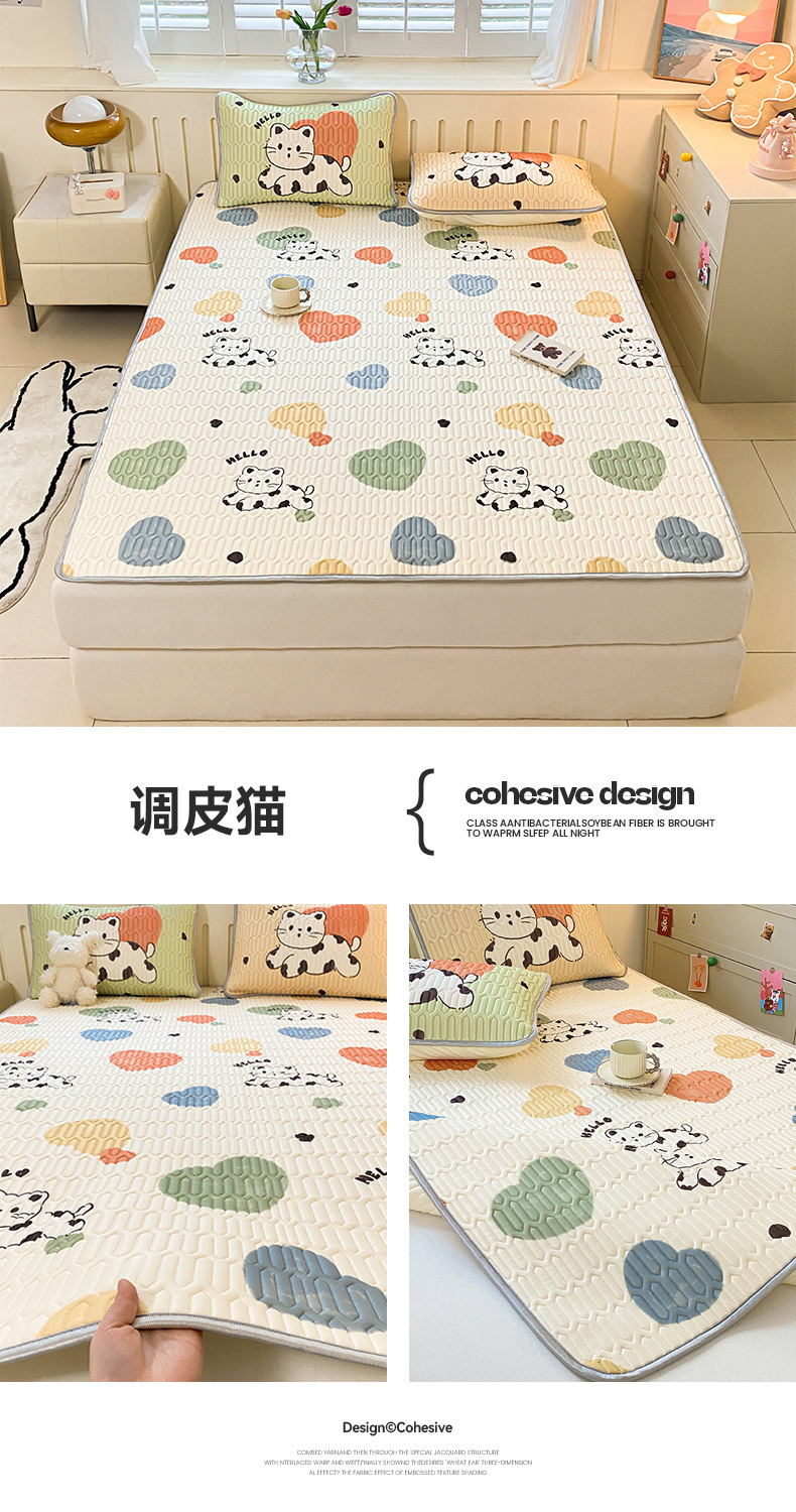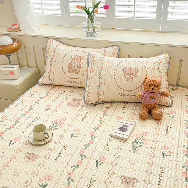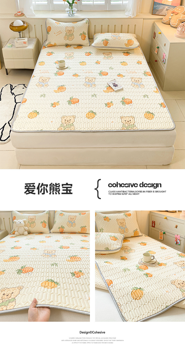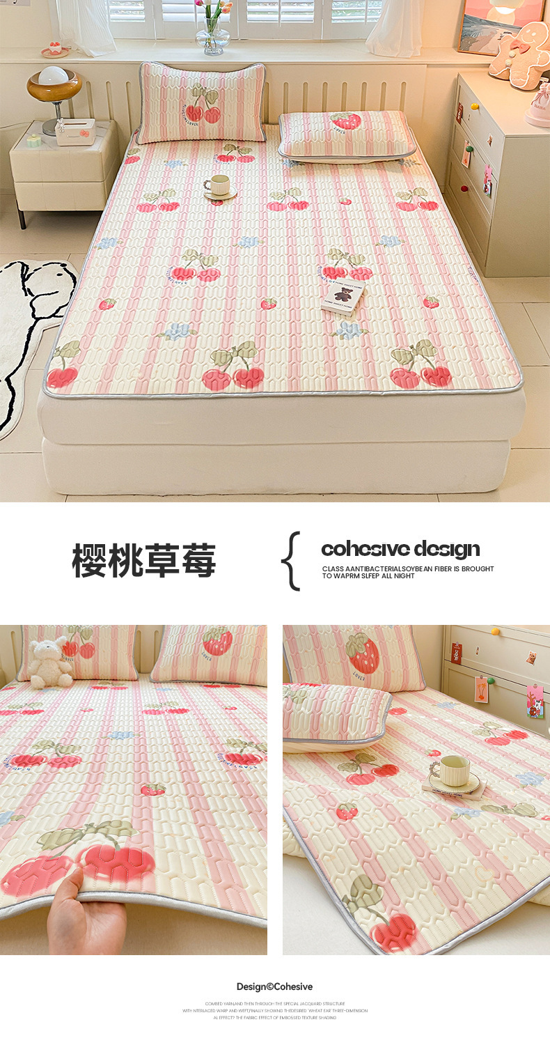클래스 A 모성 및 유아 학년 여름 매트 3 조각 세트 라텍스 매트 아이스 실크 매트 침대 시트 침대 모자 기숙사 용 단일 세척 가능