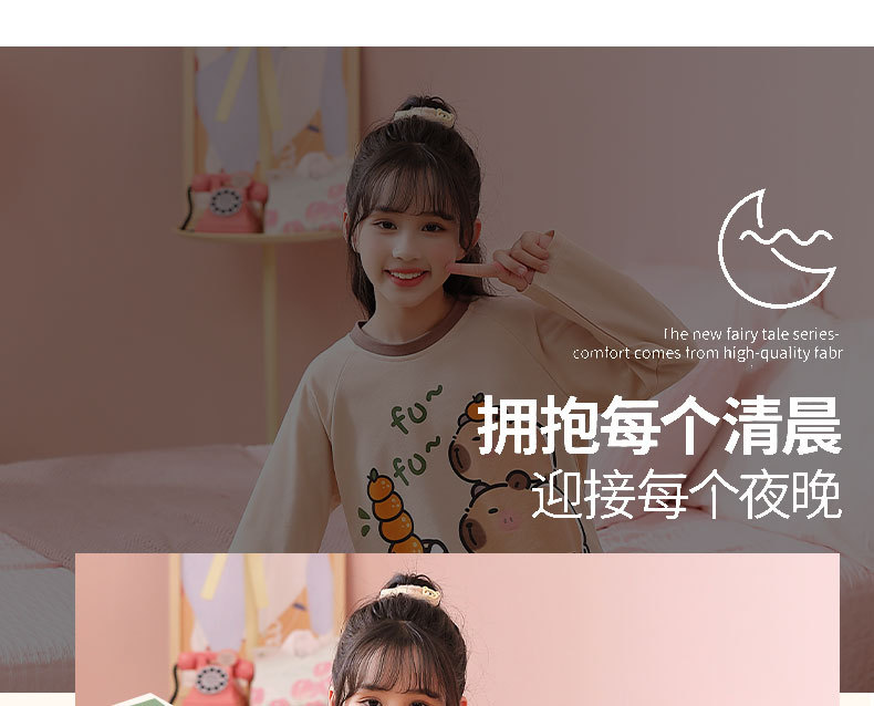 봄과 가을 어린이 잠옷 여성의 시원한 실크면 긴 소매 풀오버 달콤한 만화 캐주얼 느슨한 남성과 여성의 어린이 의류 홈 의류
