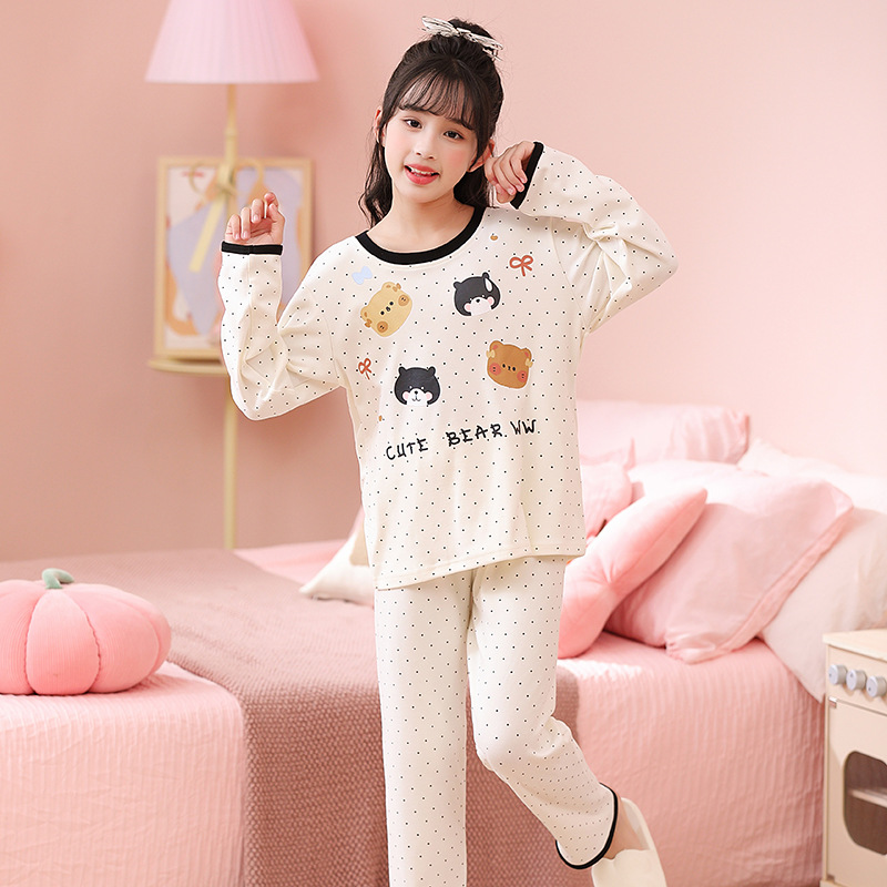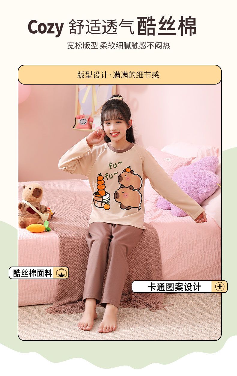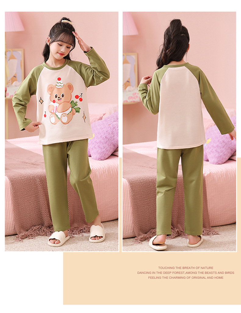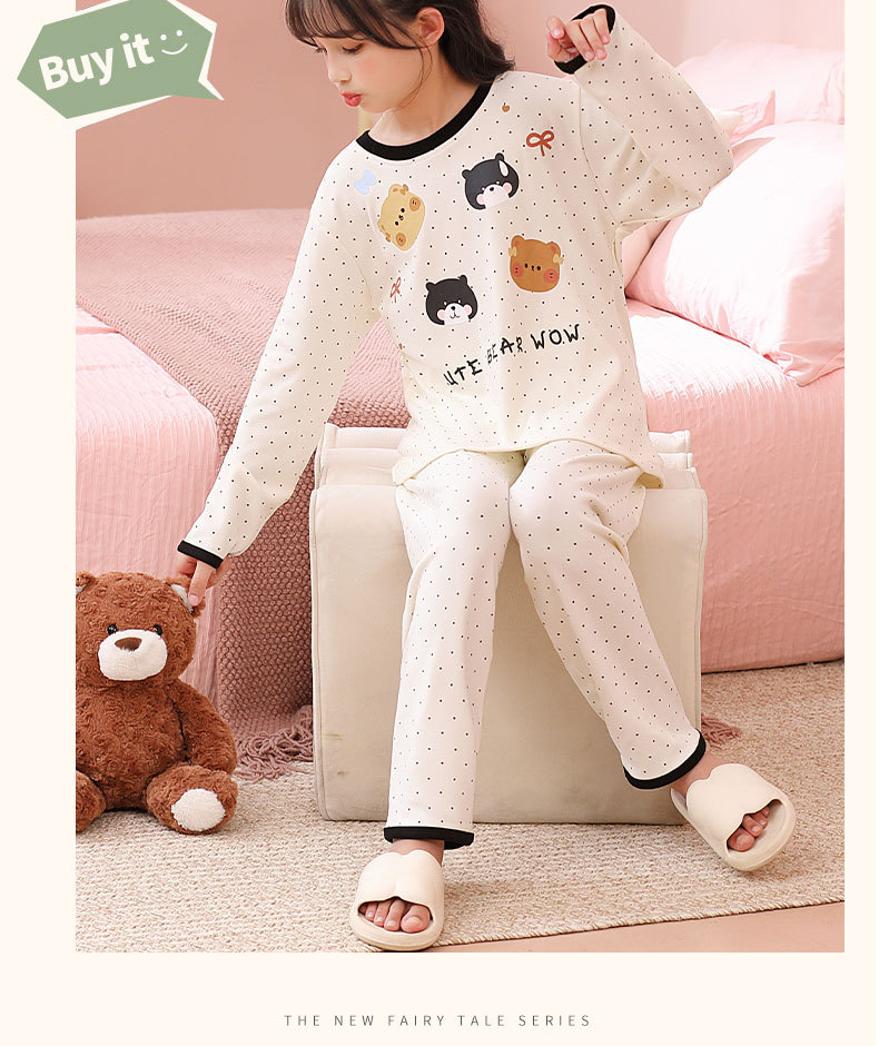 봄과 가을 어린이 잠옷 여성의 시원한 실크면 긴 소매 풀오버 달콤한 만화 캐주얼 느슨한 남성과 여성의 어린이 의류 홈 의류스토어 가기