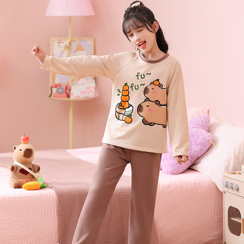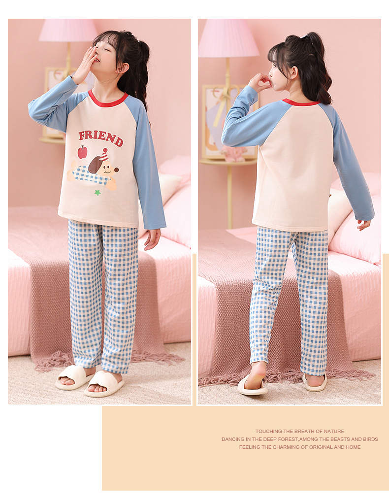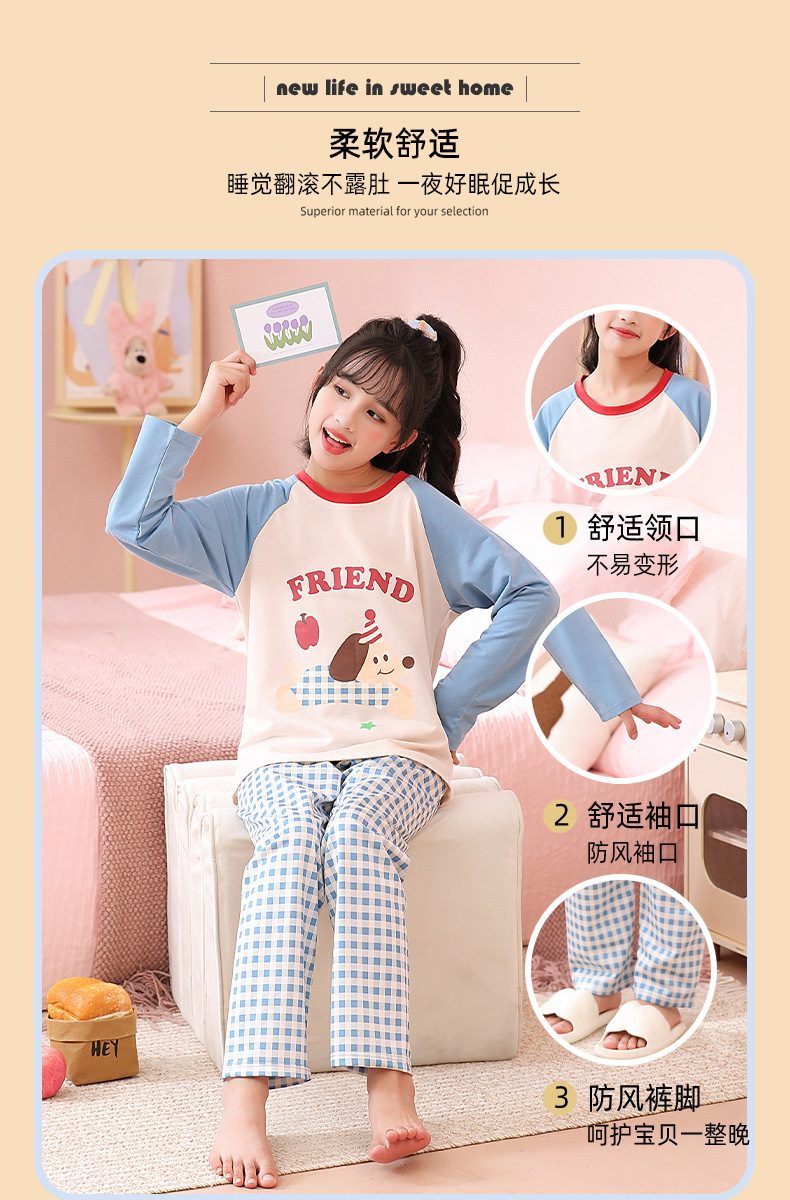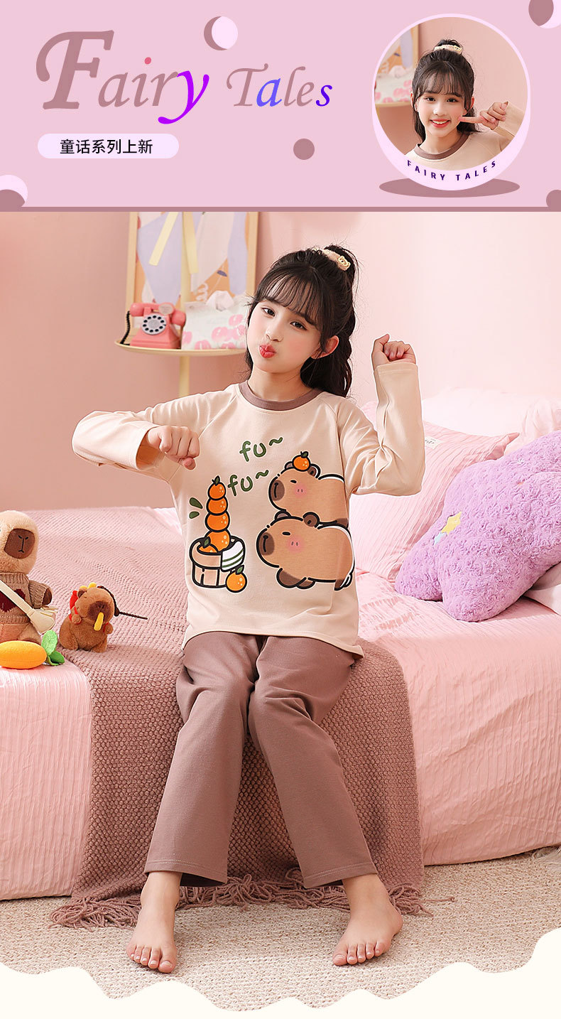 봄과 가을 어린이 잠옷 여성의 시원한 실크면 긴 소매 풀오버 달콤한 만화 캐주얼 느슨한 남성과 여성의 어린이 의류 홈 의류스토어 가기
