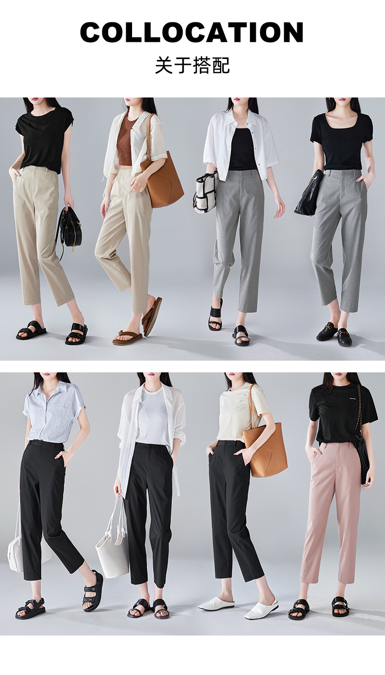 느슨한 슬리밍 높은 허리 세트 9 점 스트레이트 바지 2025 여름 여성을위한 새로운 스키니 발 파이프 바지스토어 가기