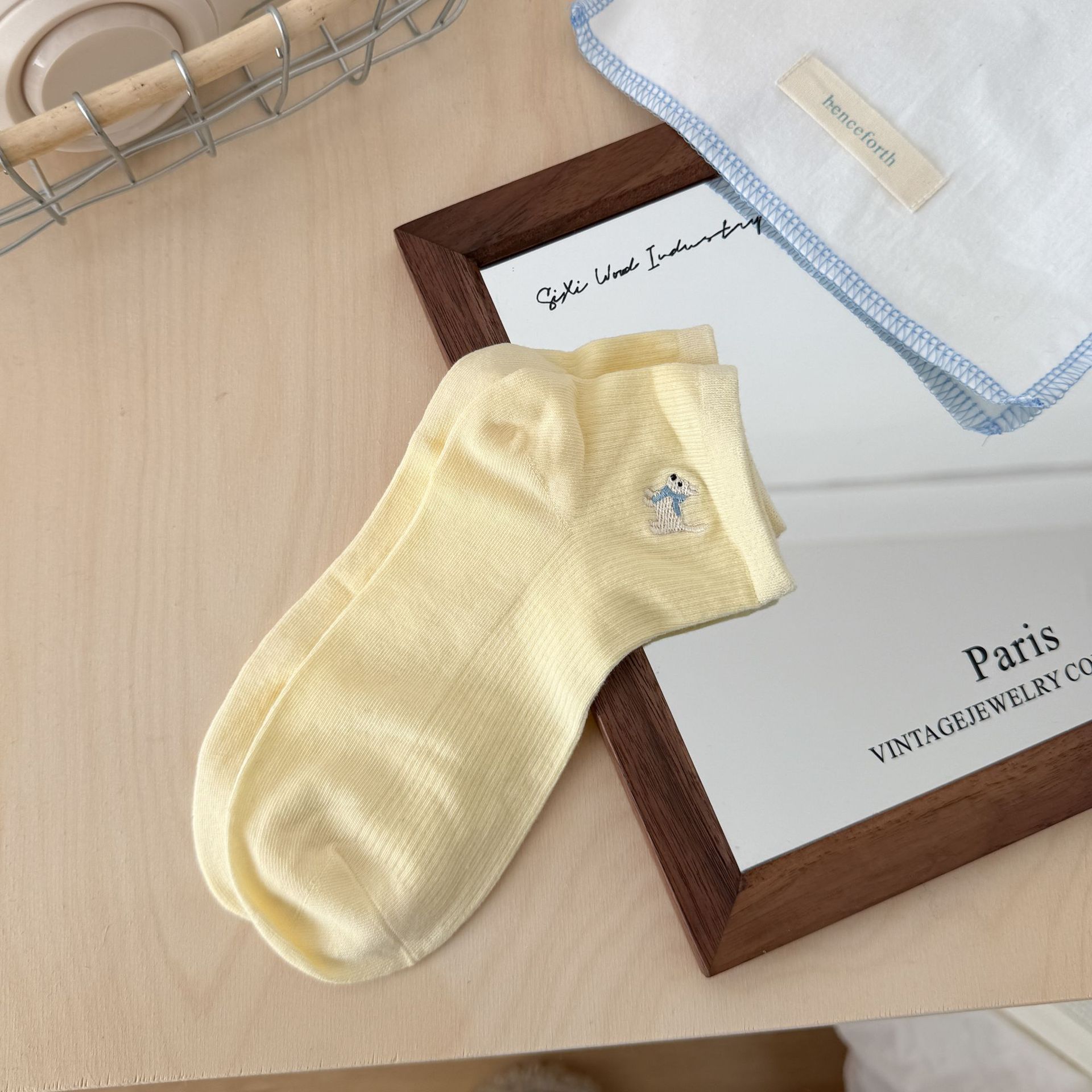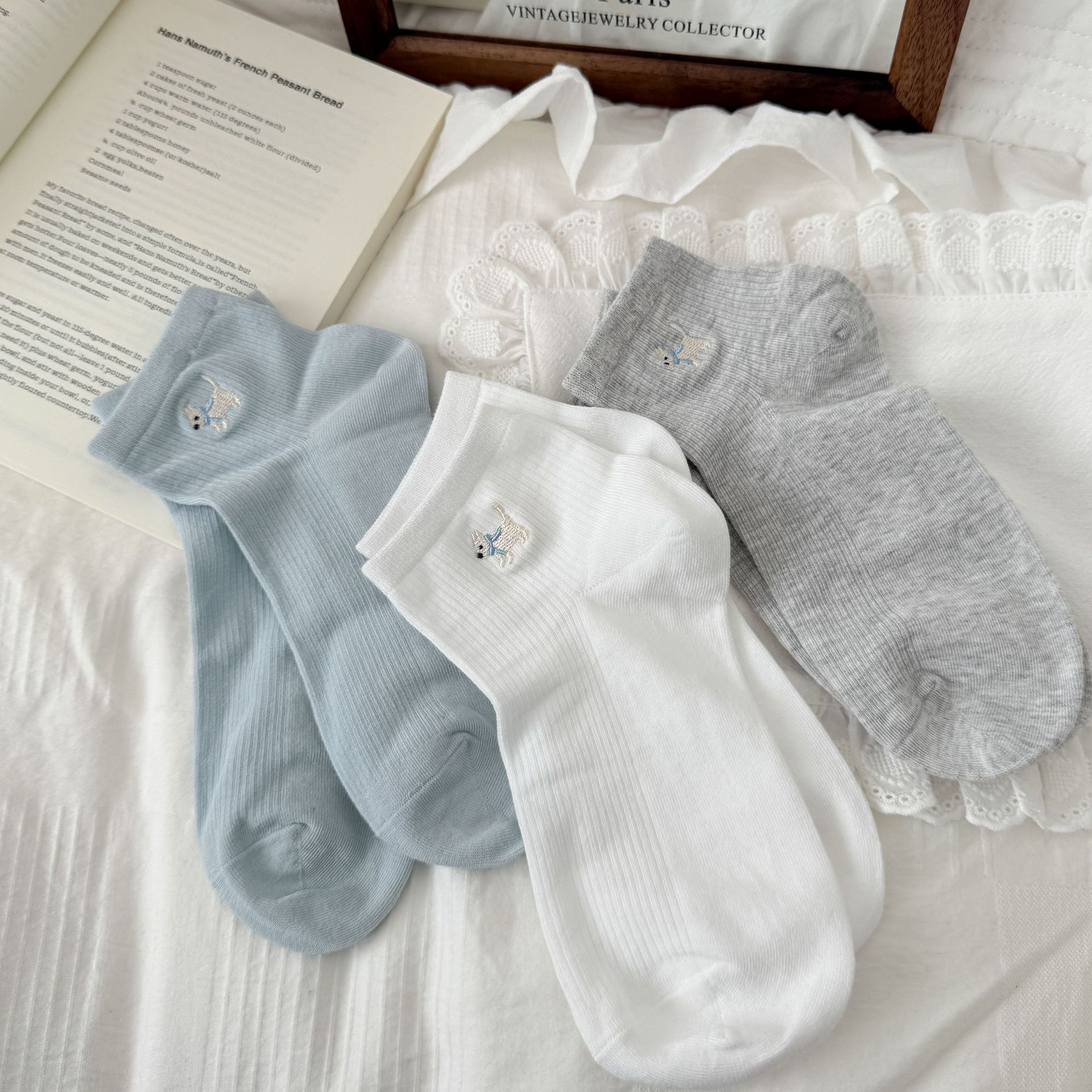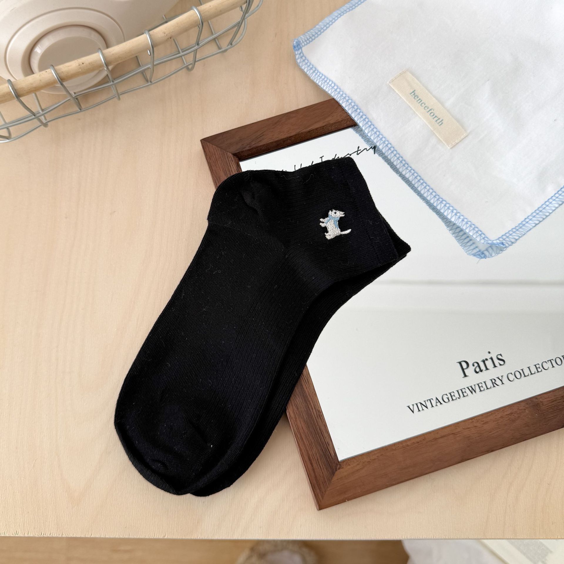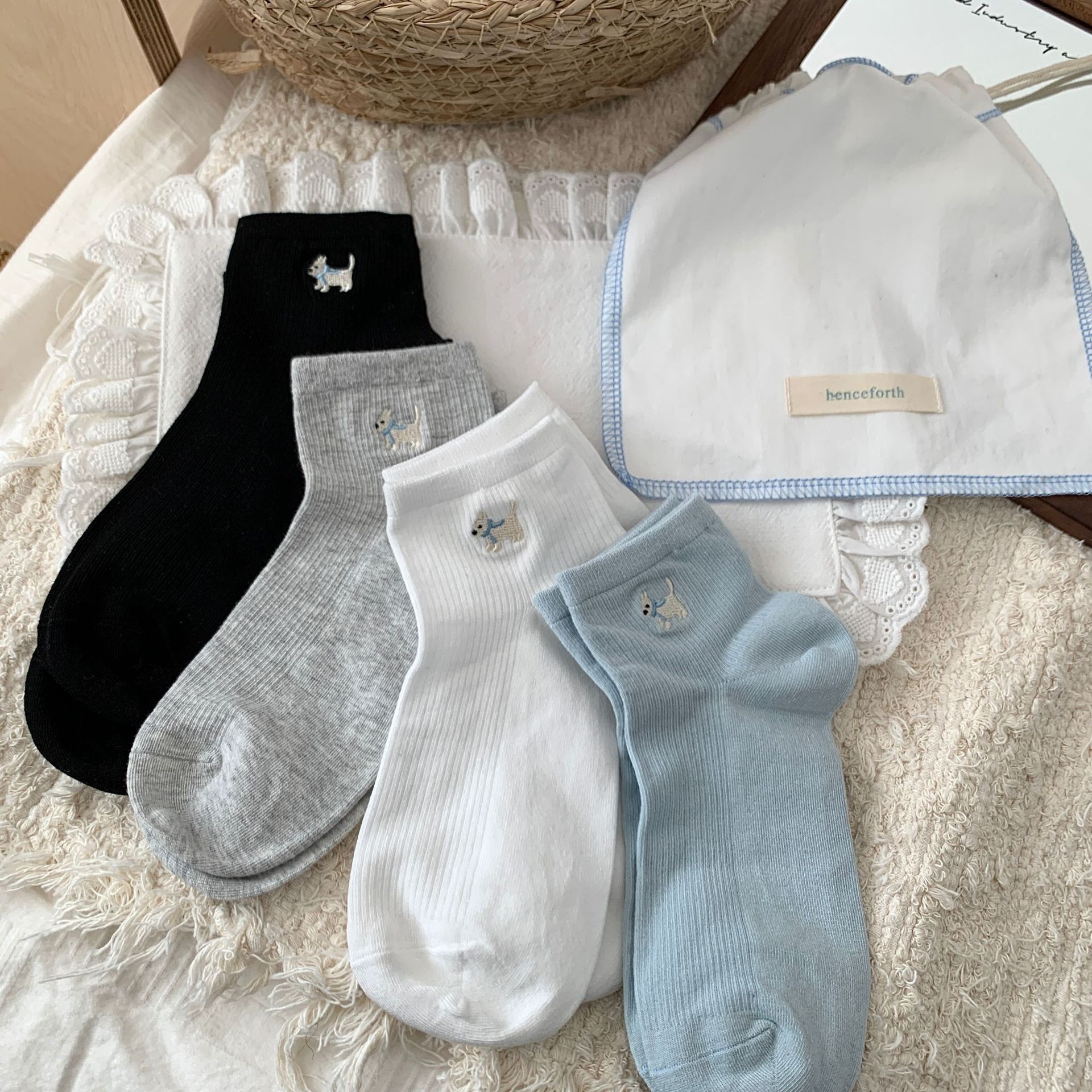 양말 여성 짧은 양말 봄과 여름 얇은 자수 강아지 양말 면 메쉬 중간 양말 통기성 짧은 양말 여름스토어 가기