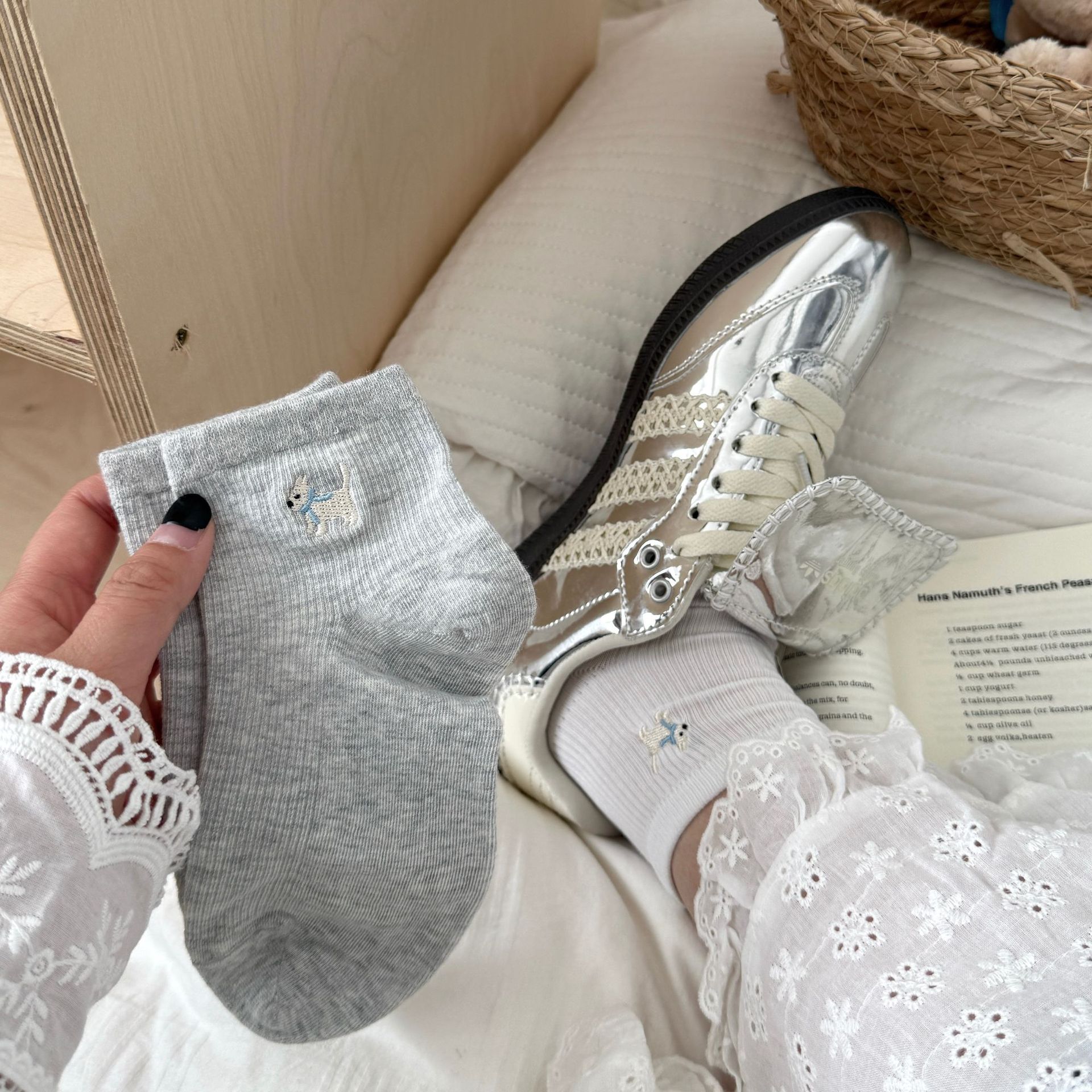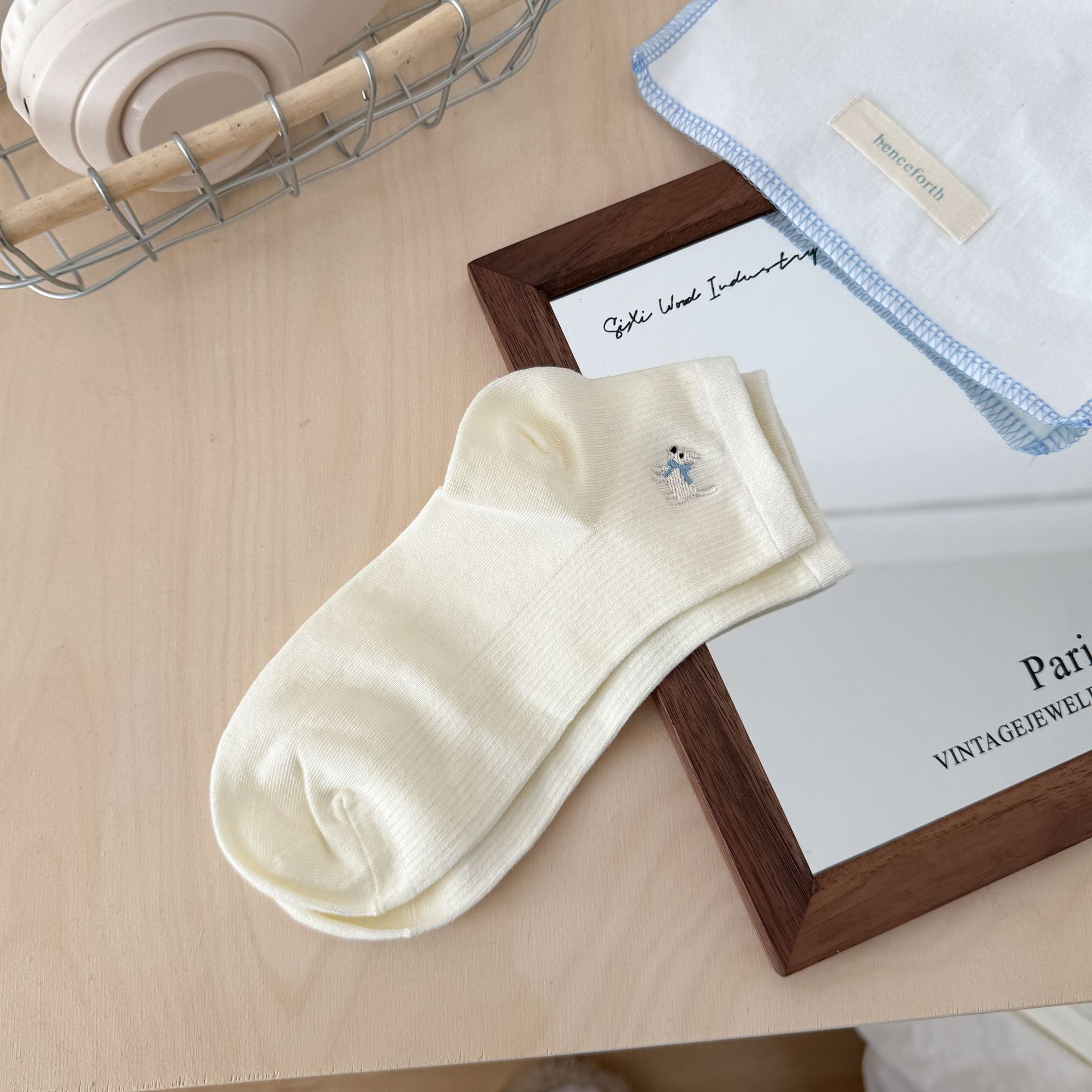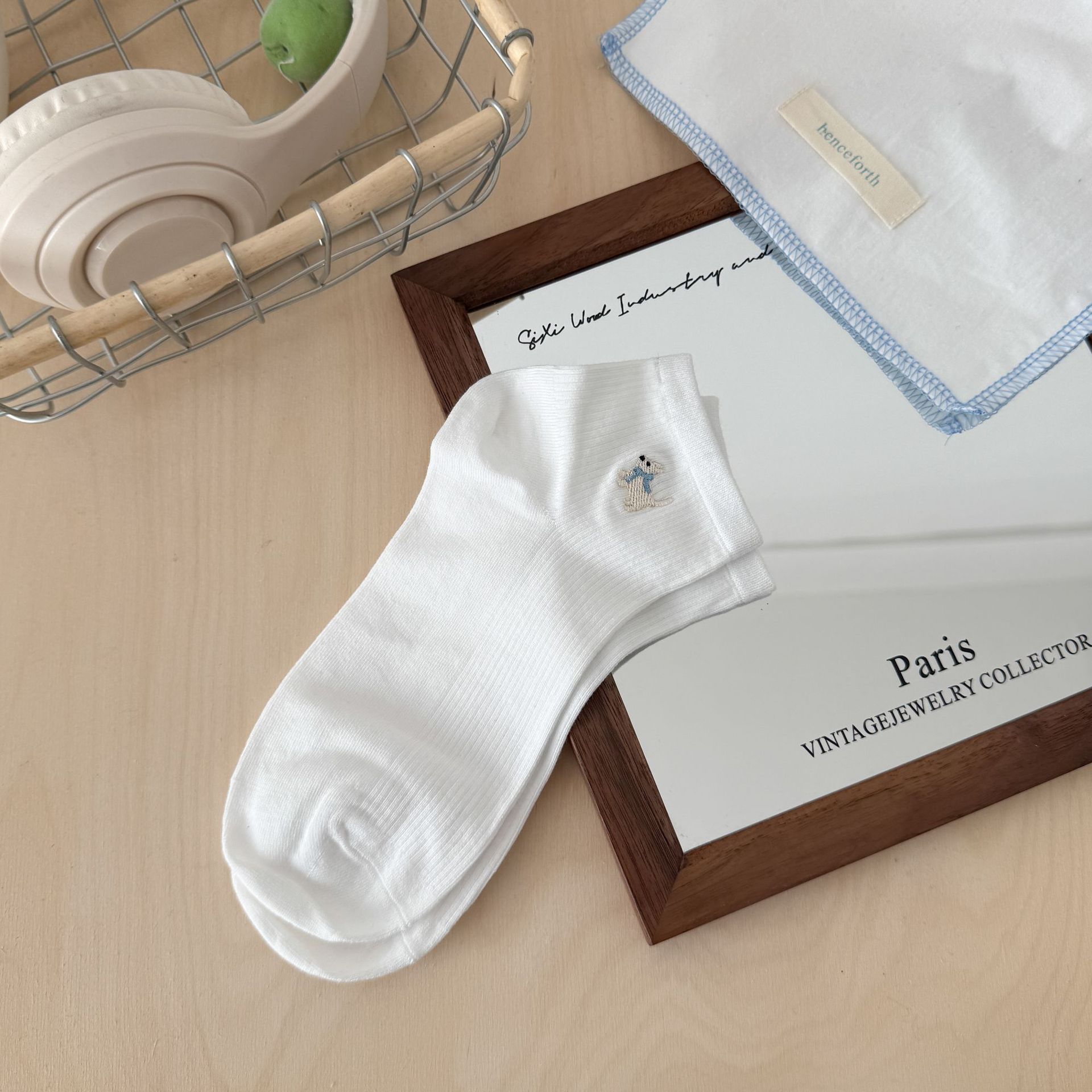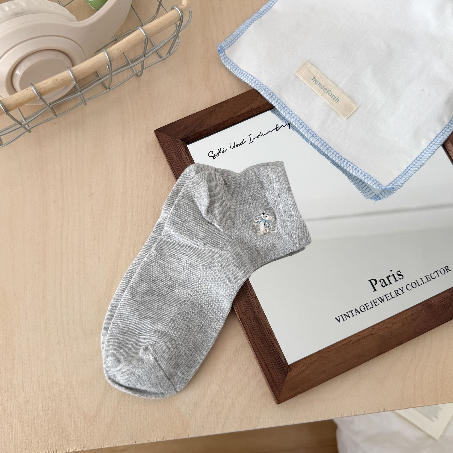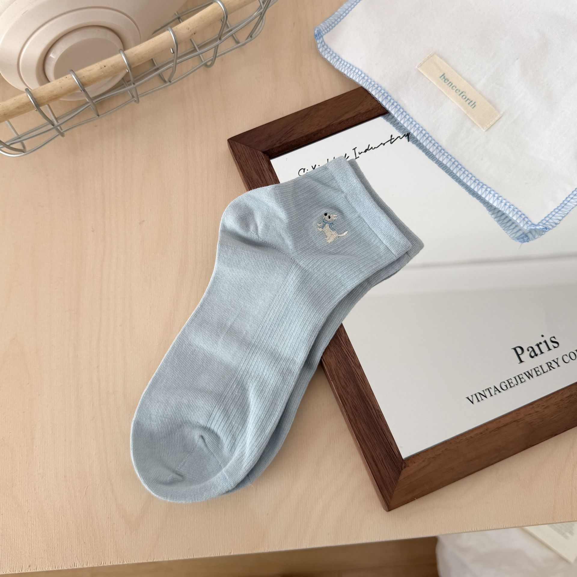 양말 여성 짧은 양말 봄과 여름 얇은 자수 강아지 양말 면 메쉬 중간 양말 통기성 짧은 양말 여름스토어 가기