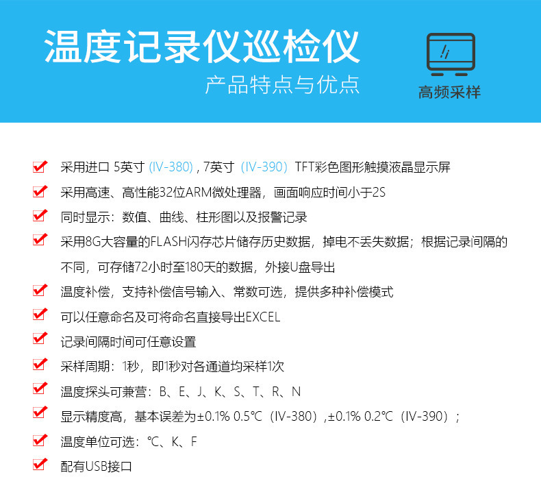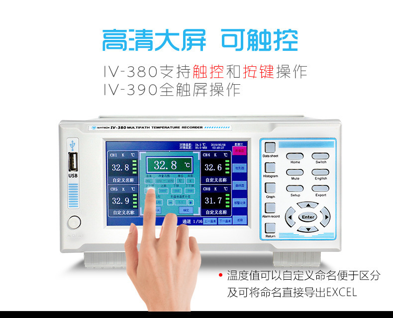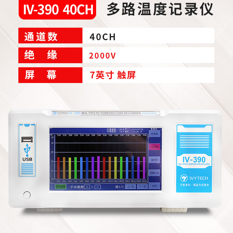 Ivitco IV380/390 멀티 채널 온도계 7 인치 터치 스크린 8-64 멀티 채널 8GB 메모리스토어 가기