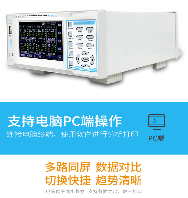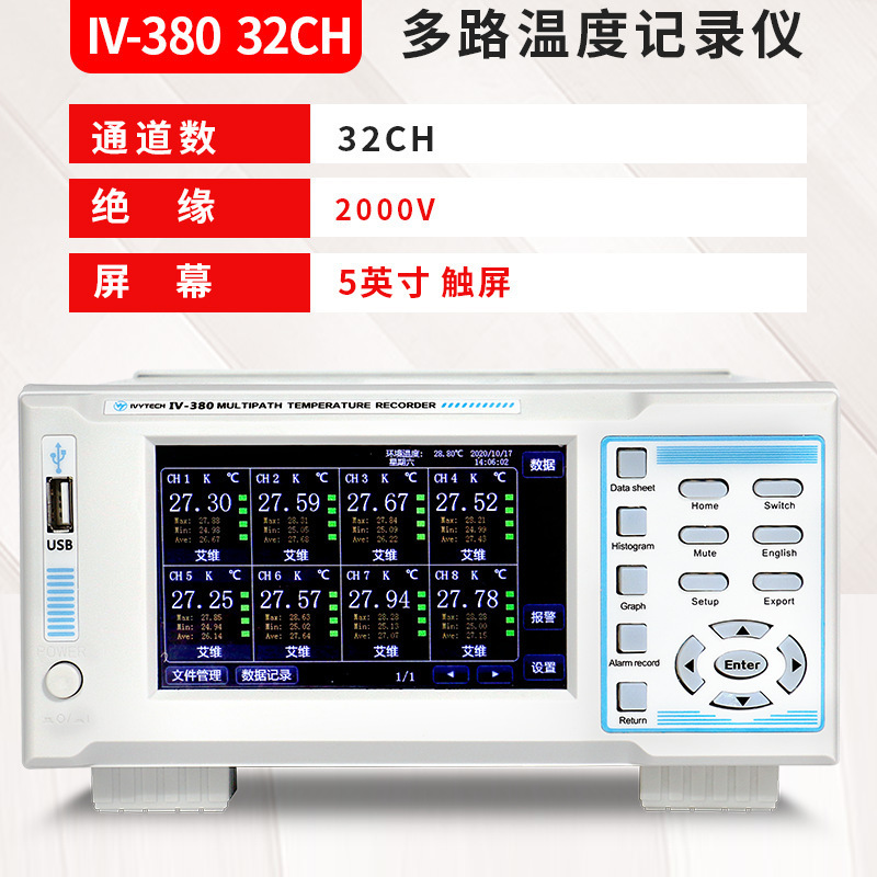 Ivitco IV380/390 멀티 채널 온도계 7 인치 터치 스크린 8-64 멀티 채널 8GB 메모리