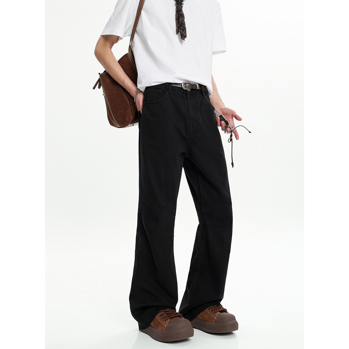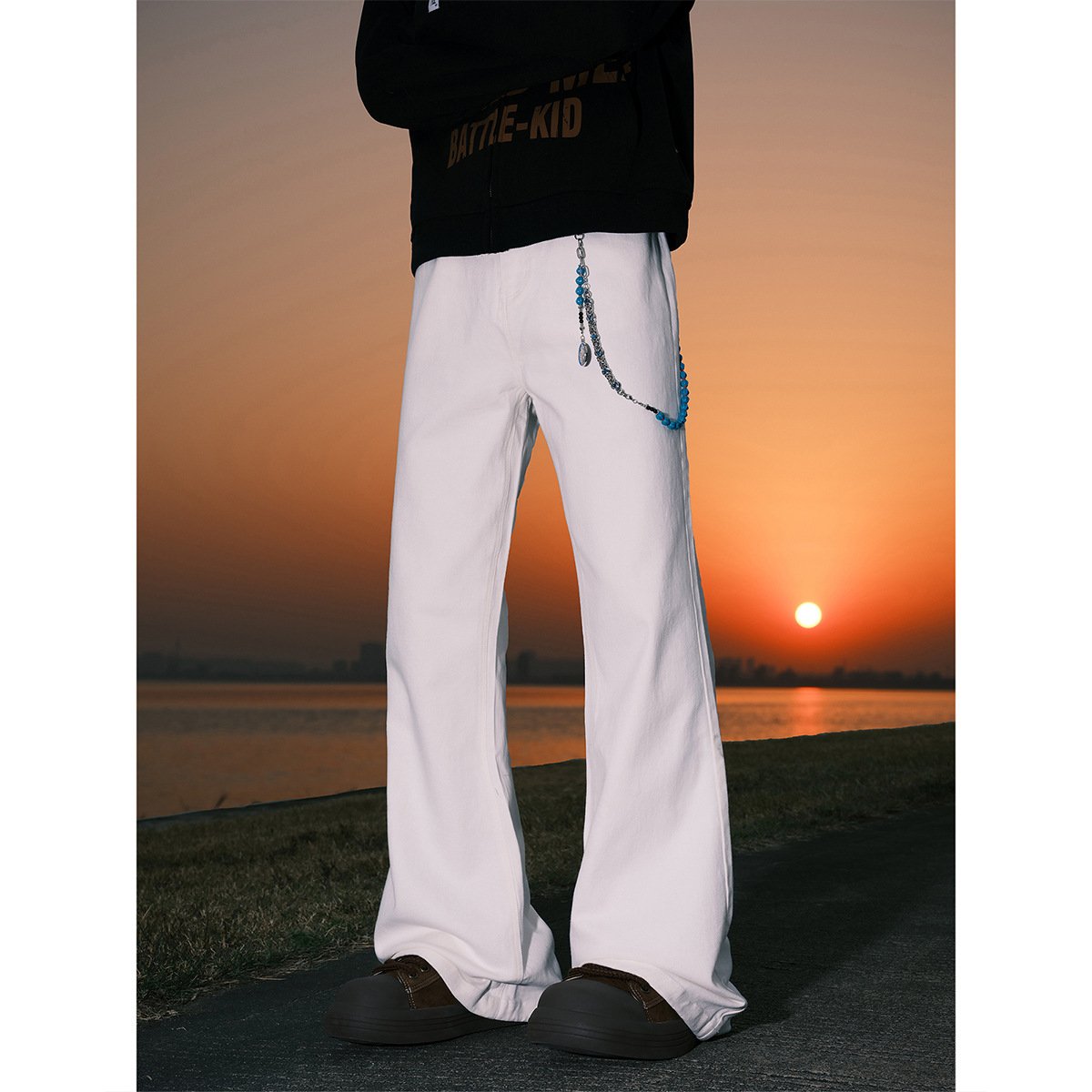 클린 핏 화이트 마체 테 청바지 남성용 트렌디 브랜드 미국식 바이브 바지 하이 스트리트 슬림 룩 마이크로 lar 워크 바지스토어 가기
