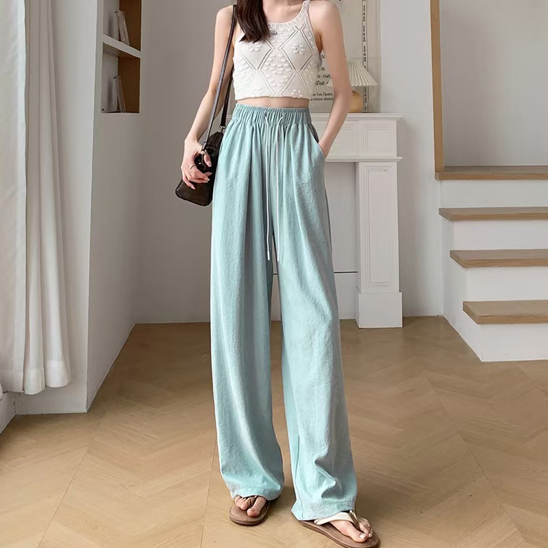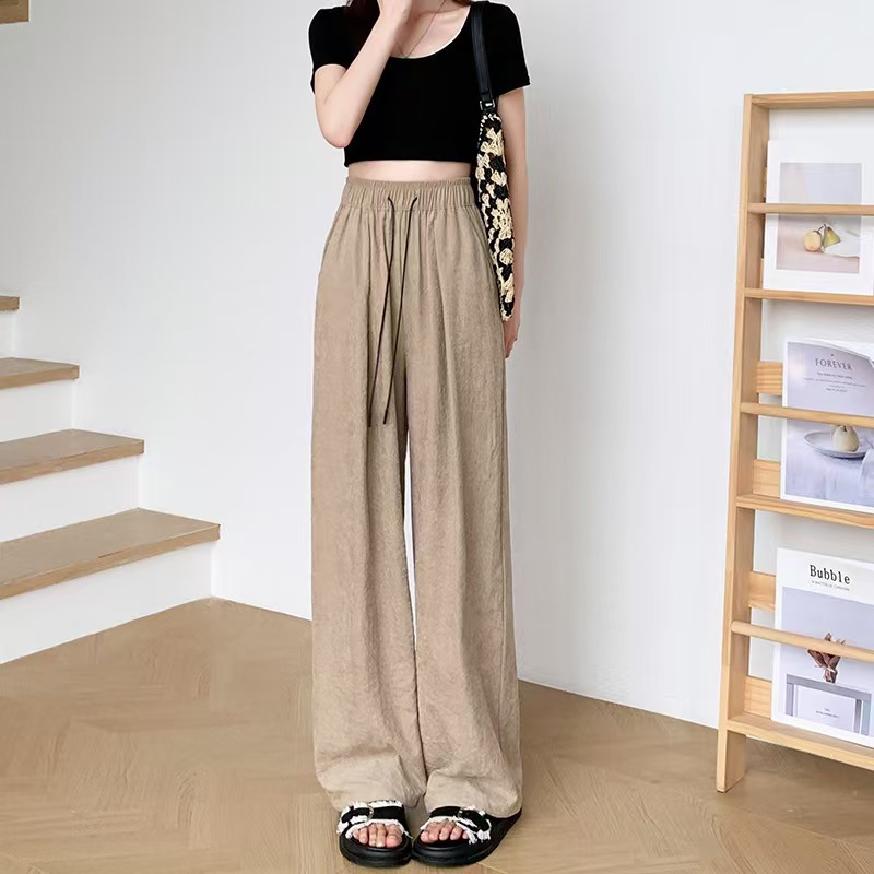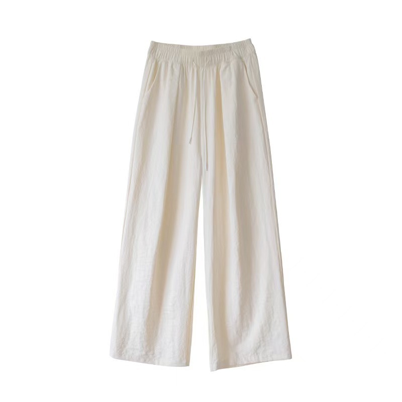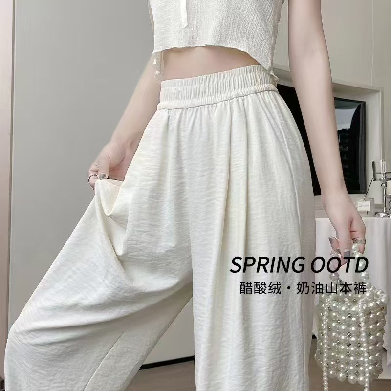 밀크 푸 윤 듀오 야마모토 바지 봄과 여름 25 새로운 높은 허리 스트레이트 아이스 실크 넓은 다리 바지 단색 주름 질감 바지