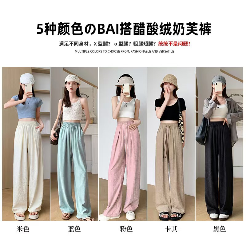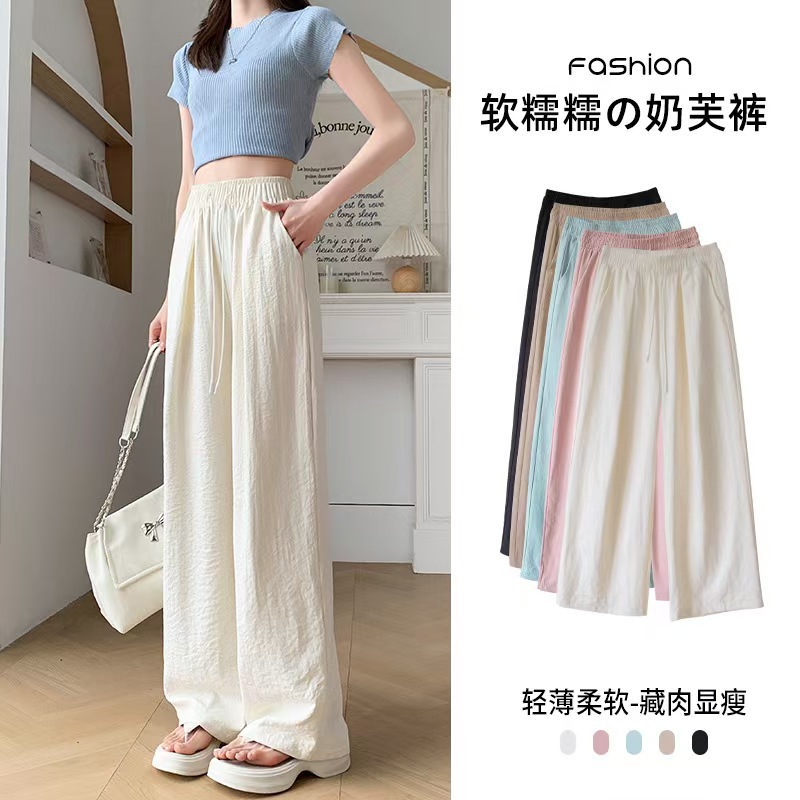 밀크 푸 윤 듀오 야마모토 바지 봄과 여름 25 새로운 높은 허리 스트레이트 아이스 실크 넓은 다리 바지 단색 주름 질감 바지스토어 가기