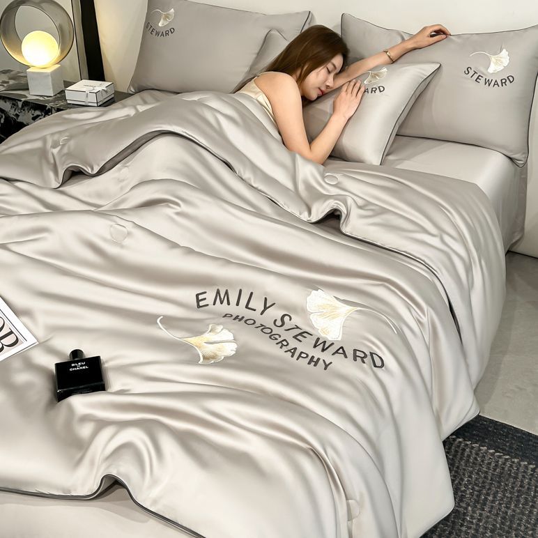 새로운 스타일 여름 수 놓은 쿨 아이스 실크 여름 이불 여름 이불 싱글 기숙사 기계 세탁기 세탁기 세척 가능한 에어컨 이불 얇은 이불스토어 가기