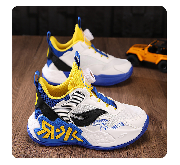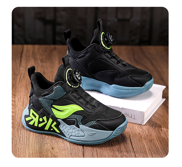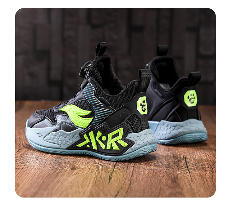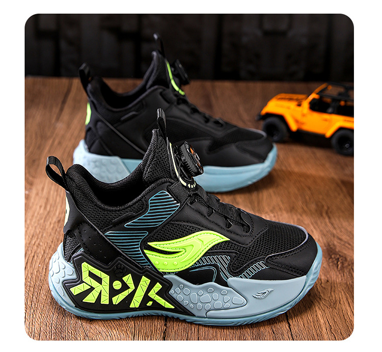 소년 농구 신발 통기성 메쉬 미디어와 대형 소년 경량 소프트 하단 미끄럼 방지 어린이 스포츠 달리기 신발 버튼