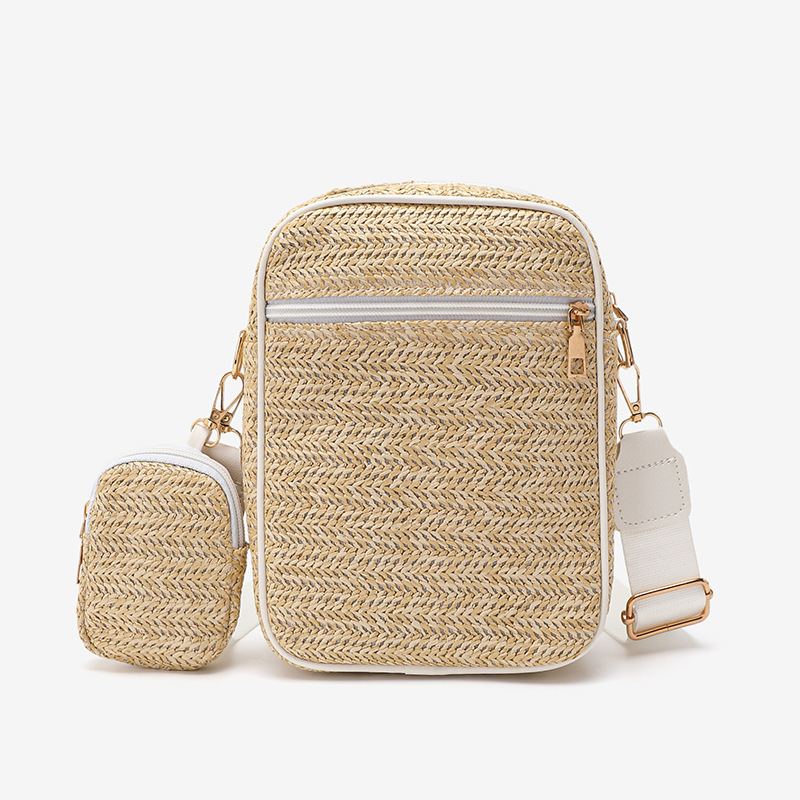文艺田园风编织小方包竖款手机包个性宽肩带斜挎包搭配迷你零钱包
