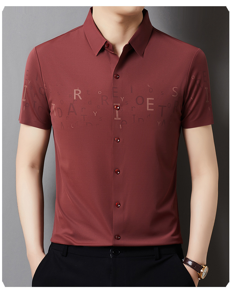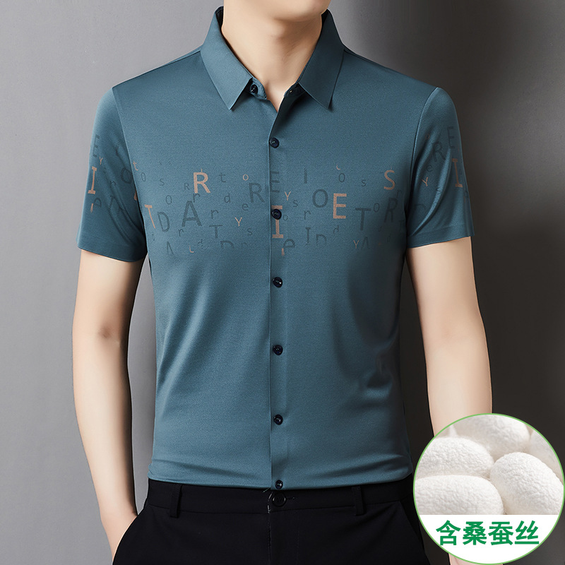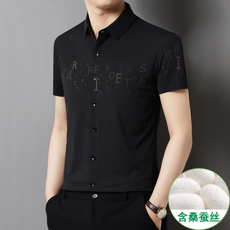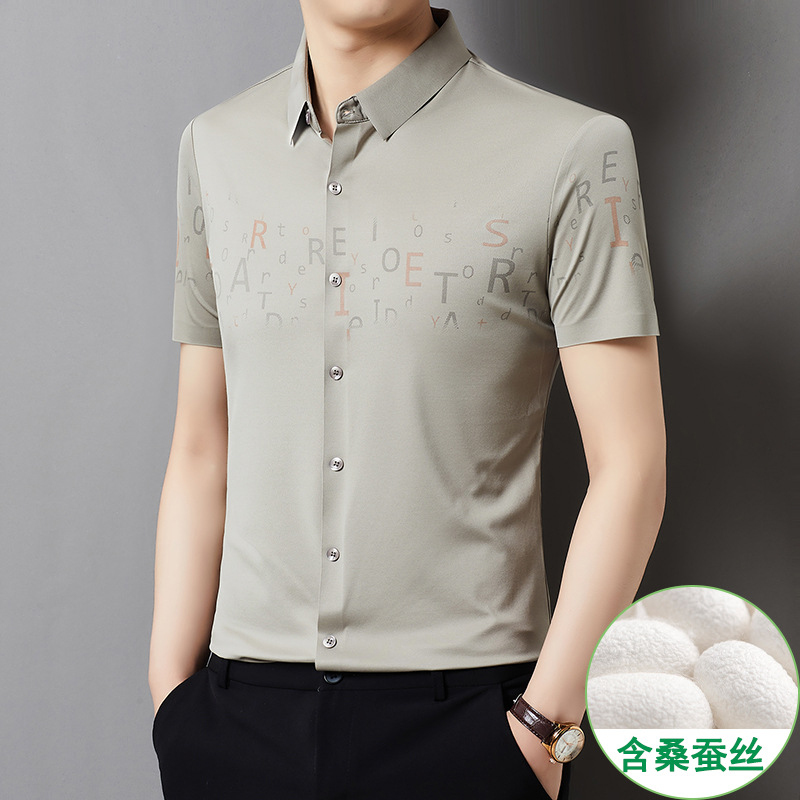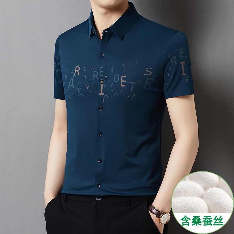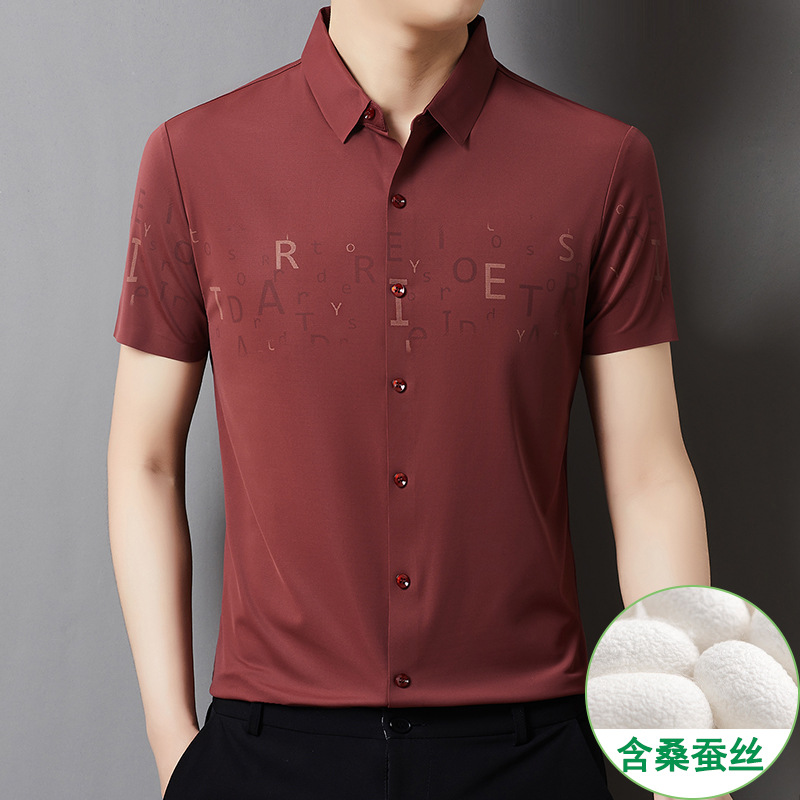빅 브랜드 하이 엔드 여름 얇은 남성 최고 셔츠 뽕나무 실크 주름 방지 비즈니스 캐주얼 중년 반팔 셔츠