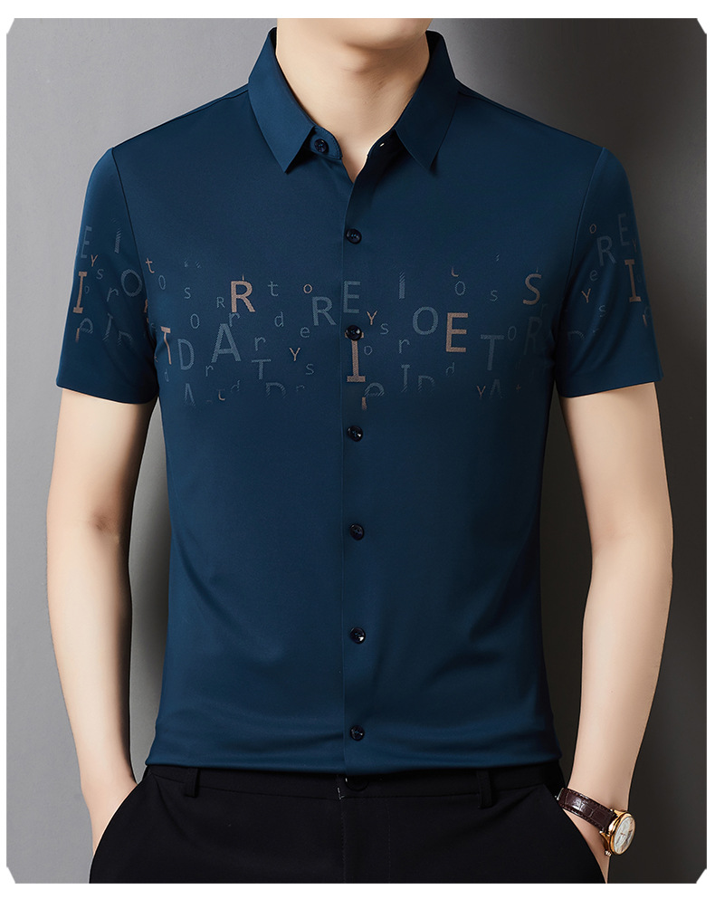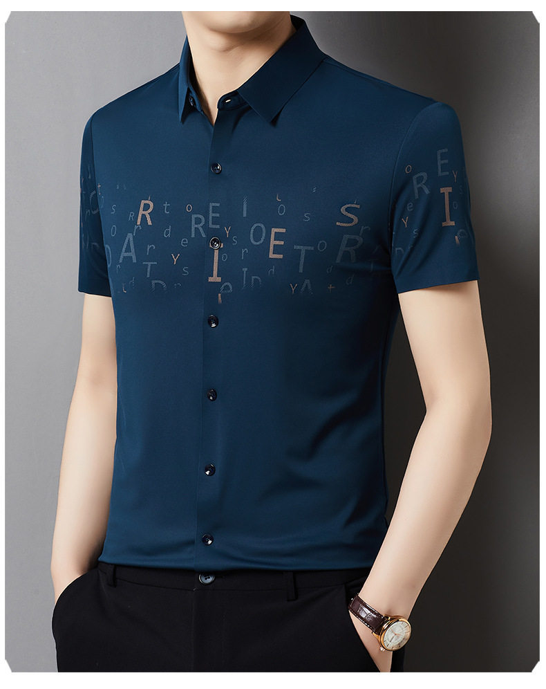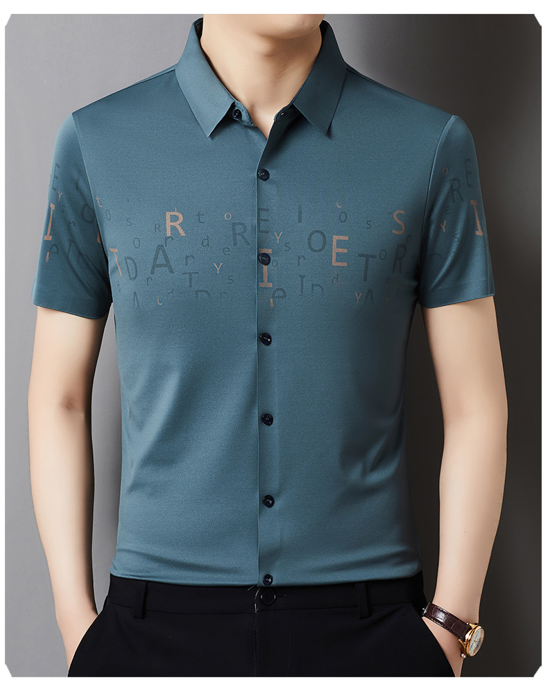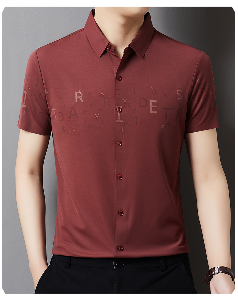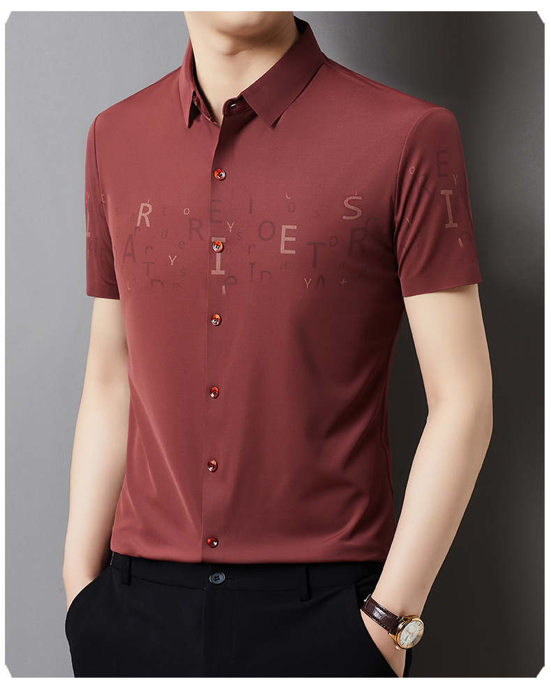 빅 브랜드 하이 엔드 여름 얇은 남성 최고 셔츠 뽕나무 실크 주름 방지 비즈니스 캐주얼 중년 반팔 셔츠