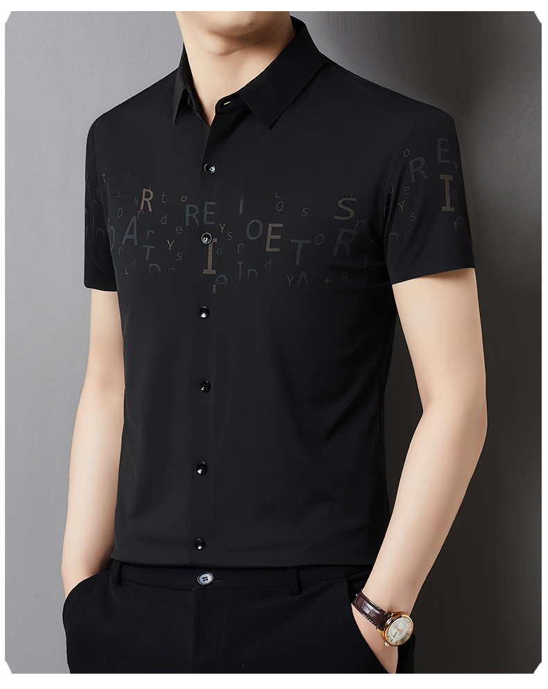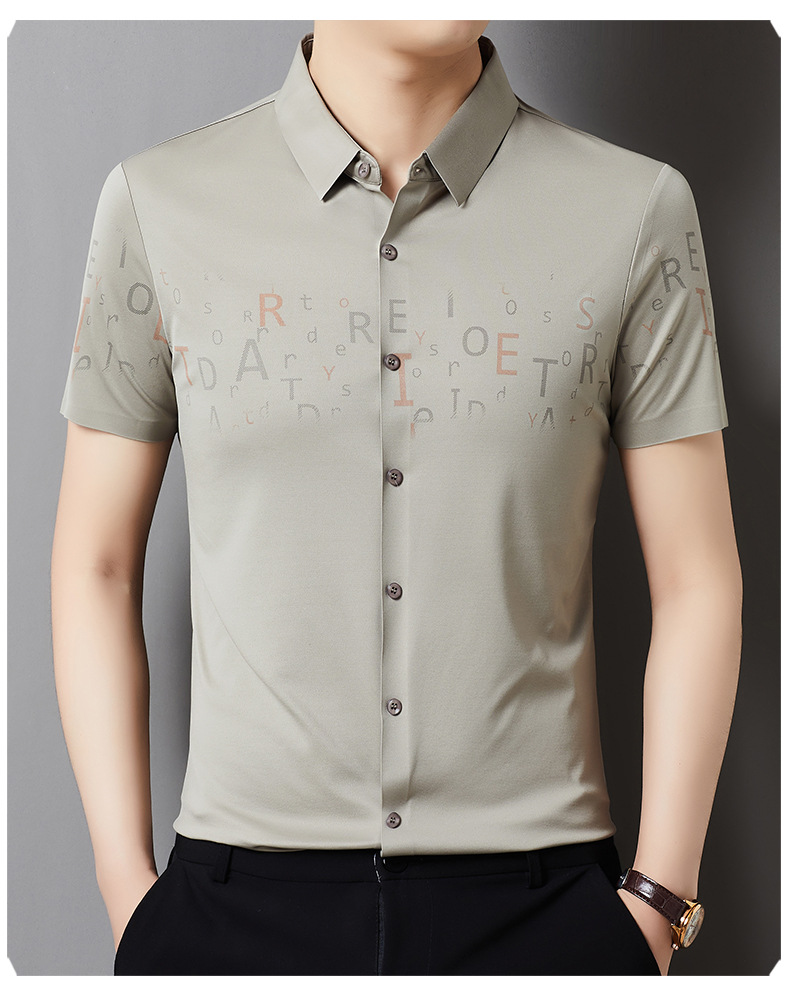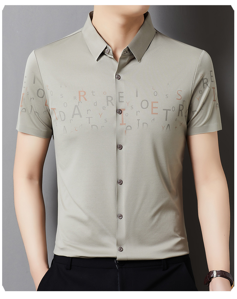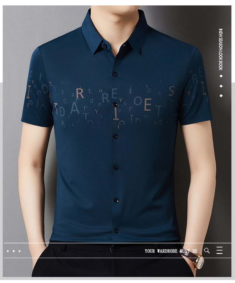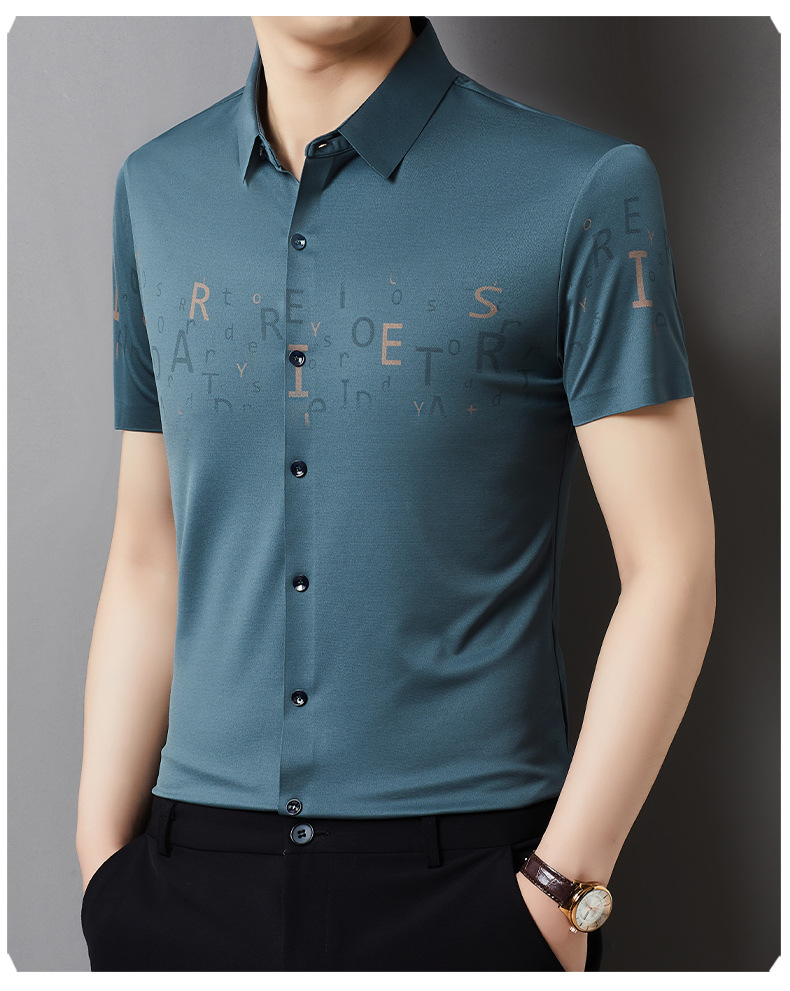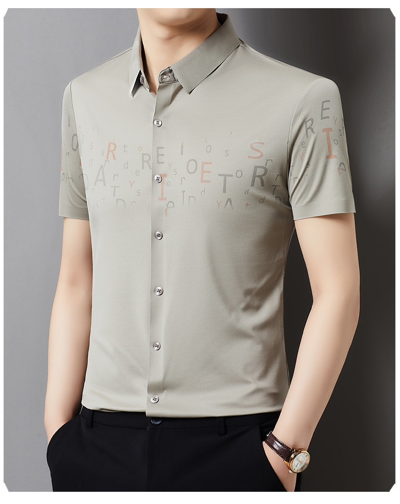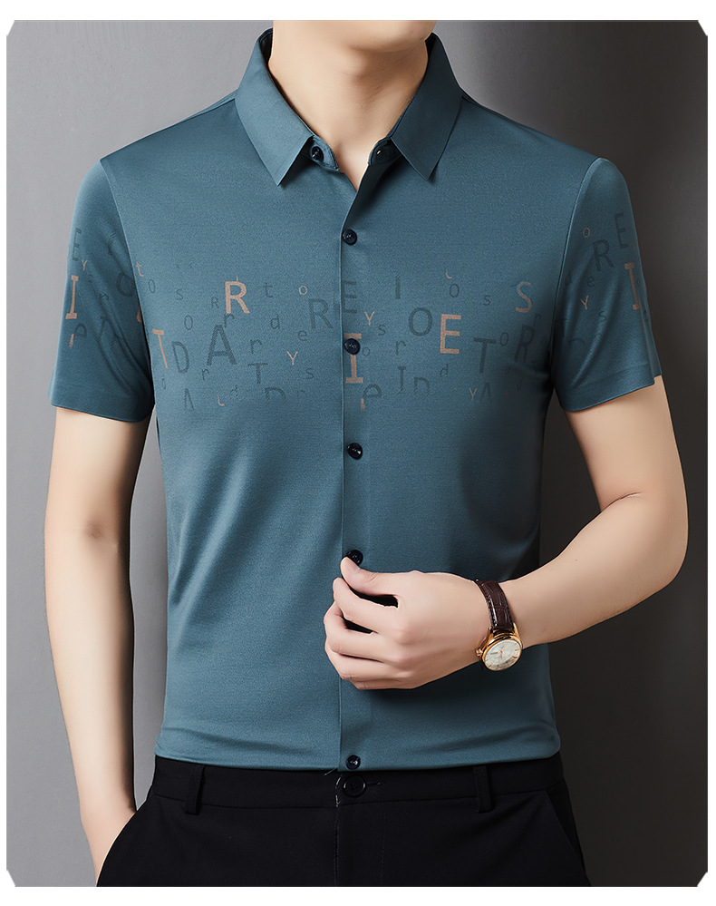 빅 브랜드 하이 엔드 여름 얇은 남성 최고 셔츠 뽕나무 실크 주름 방지 비즈니스 캐주얼 중년 반팔 셔츠스토어 가기