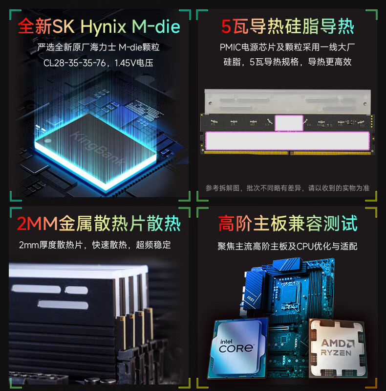 골든 Baida DDR5 스타 블레이드 흑백 RGB 데스크탑 컴퓨터 메모리 스틱 Hynex M-die Granular A- die스토어 가기