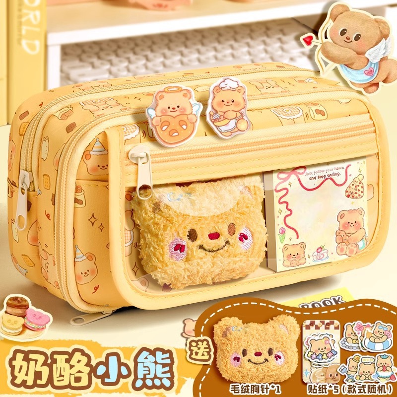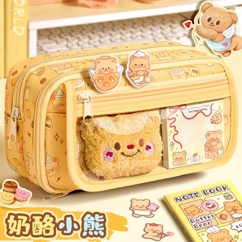 새로운 버터 곰 9 층 플립 연필 케이스 대용량 만화 높은 얀 값 작은 중학교 학생 귀여운 문구 상자스토어 가기