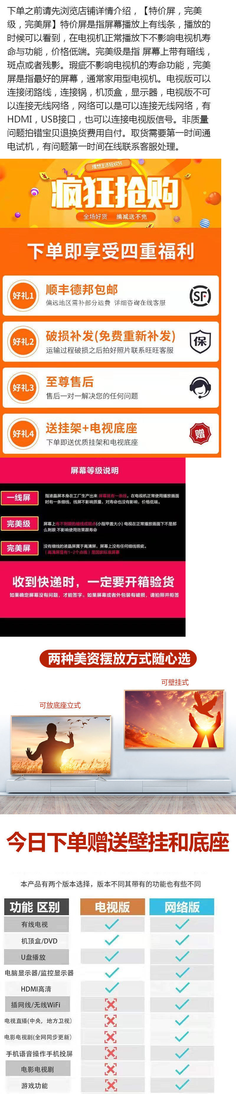 • 완벽한 TV 버전 [10년 보증]에는 행잉 랙이 함께 제공됩니다 - 40inch
