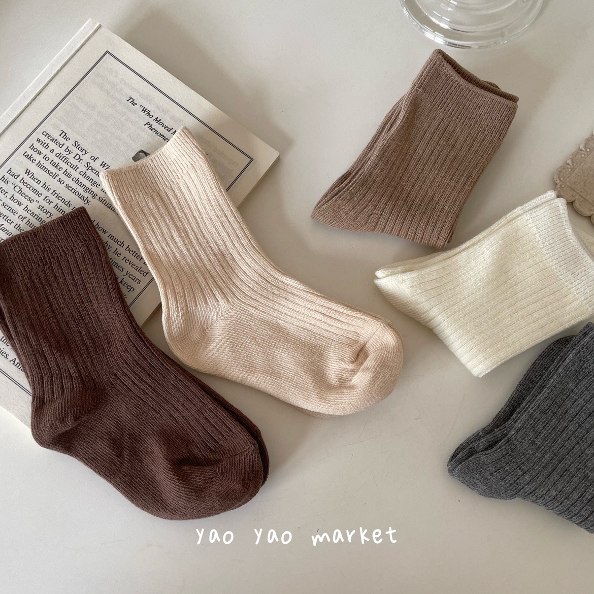 어린이 양말 소년 봄 가을 면화 양말 어린이 양말 코튼 양말 중간 튜브 양말 일본 한국 스타일 단색 소녀 아기 양말