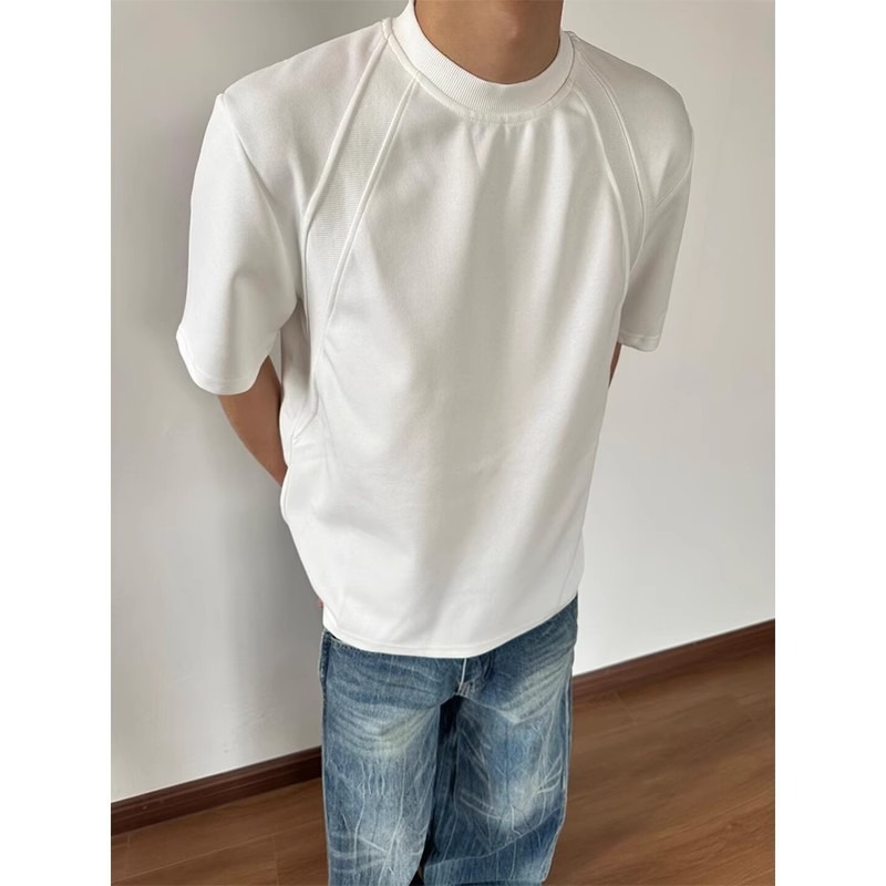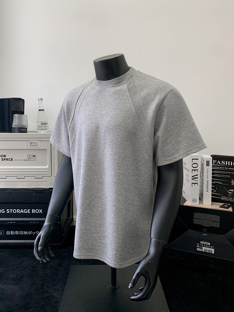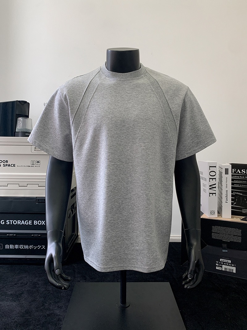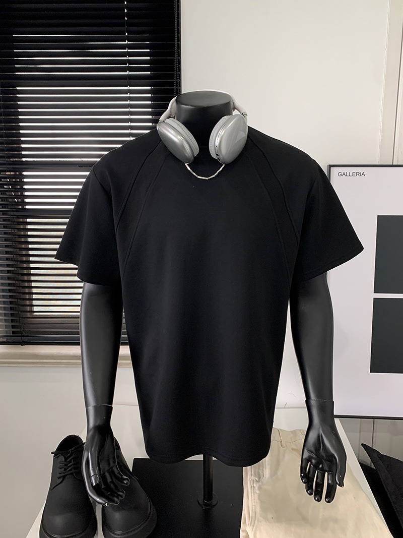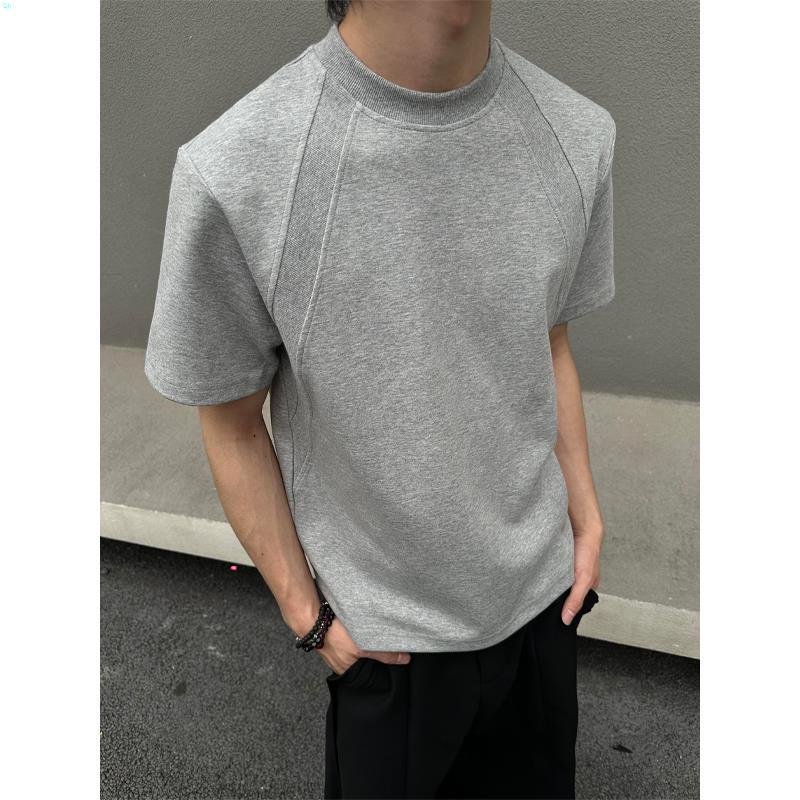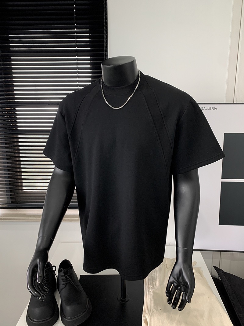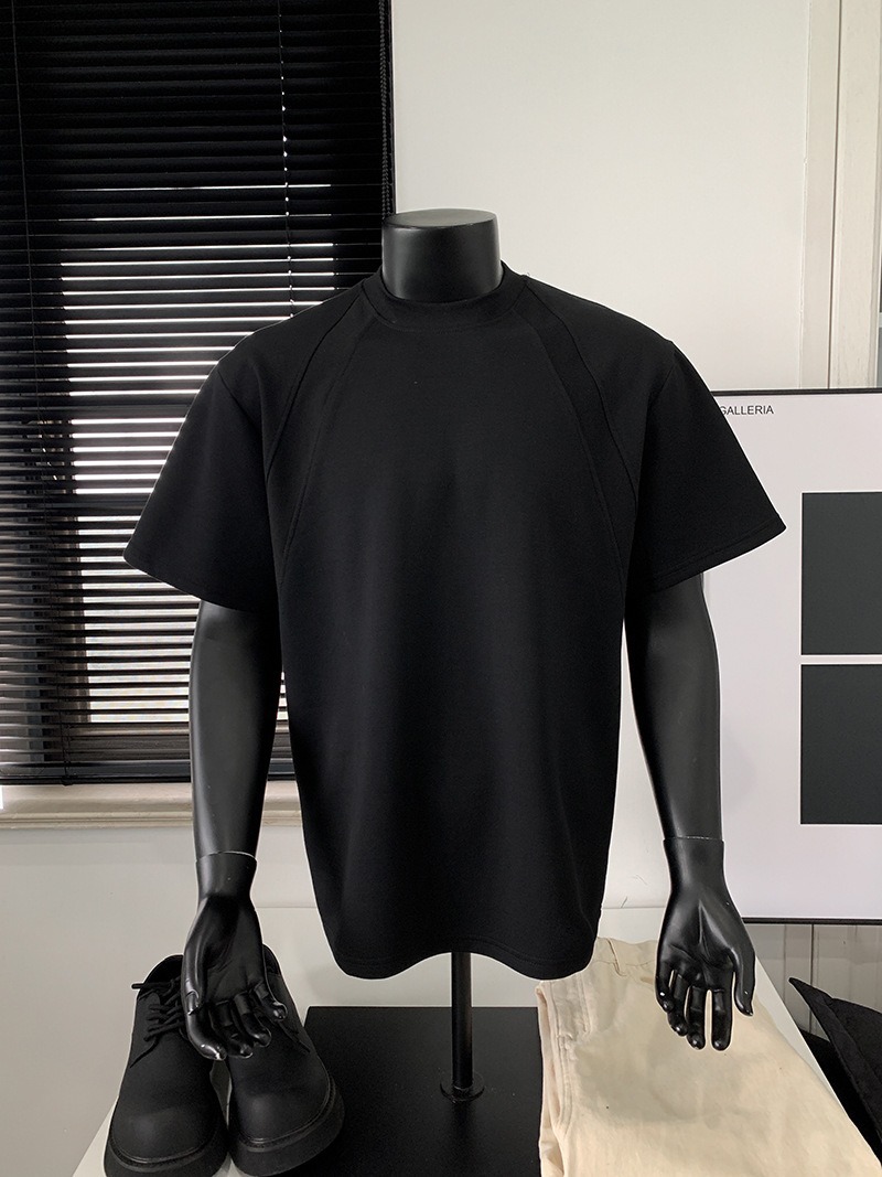 고품질 미국 오른쪽 어깨 티셔츠 280g 공간면 느슨한 반팔 여름 박시 뻣뻣한 반팔 남성 티셔츠