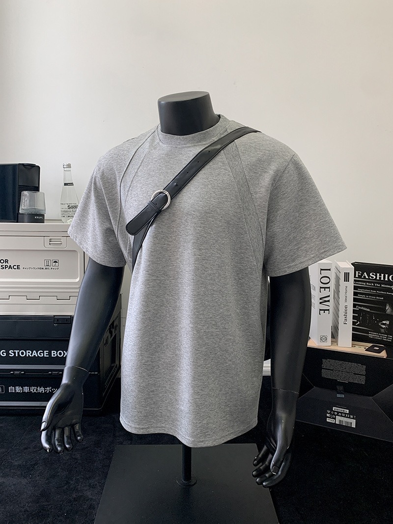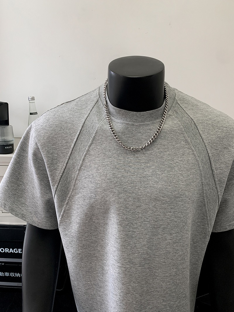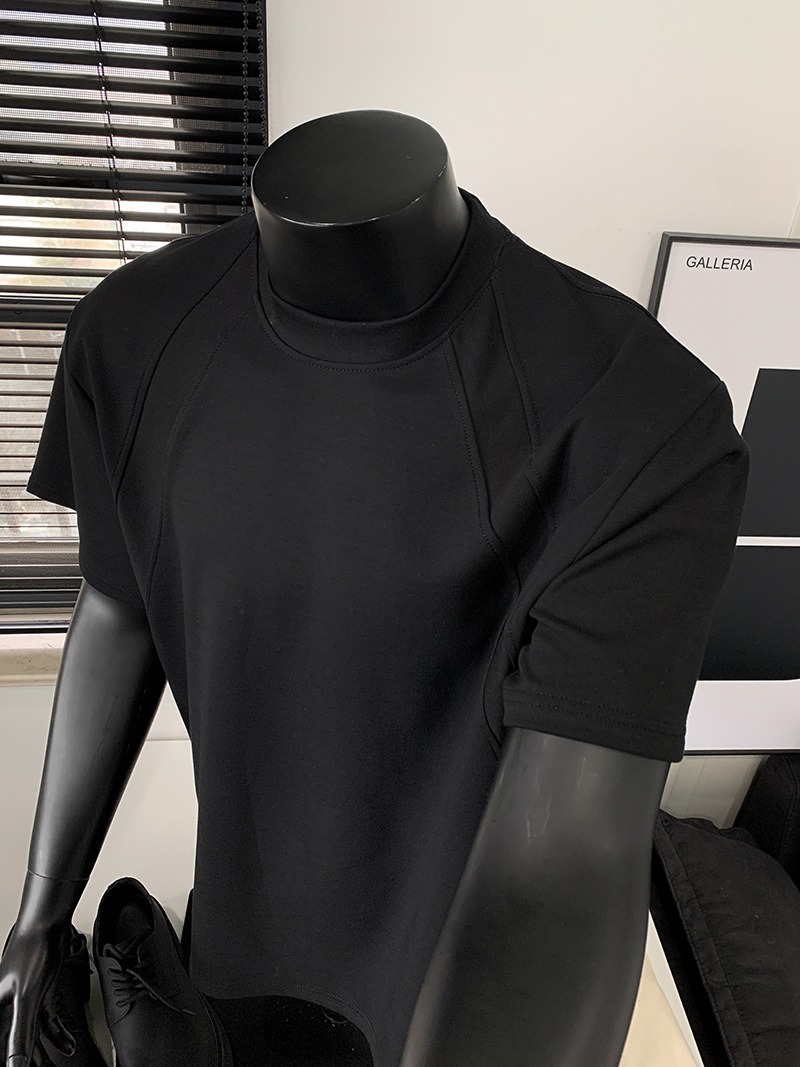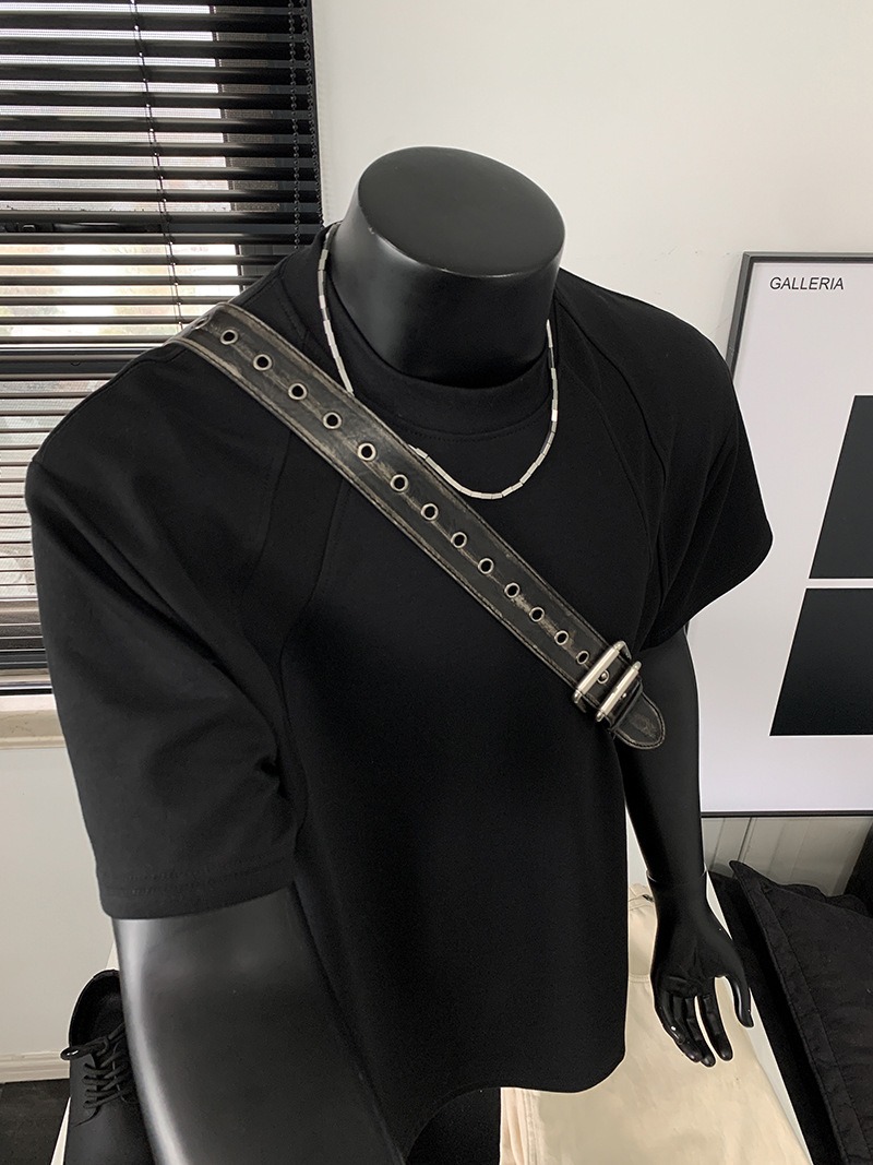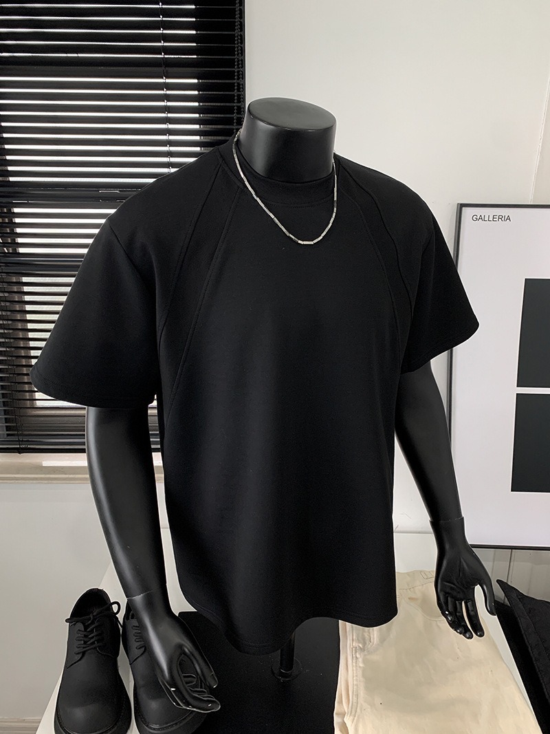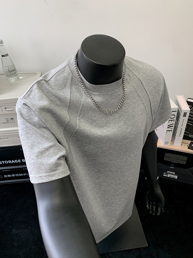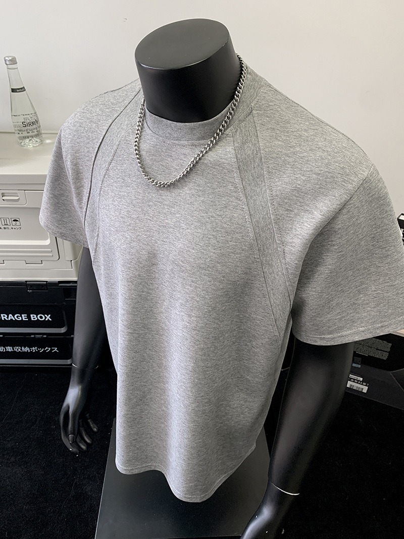 고품질 미국 오른쪽 어깨 티셔츠 280g 공간면 느슨한 반팔 여름 박시 뻣뻣한 반팔 남성 티셔츠