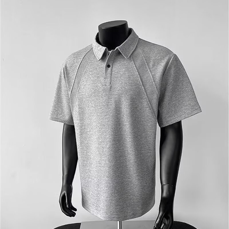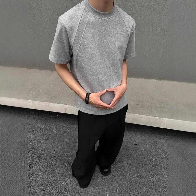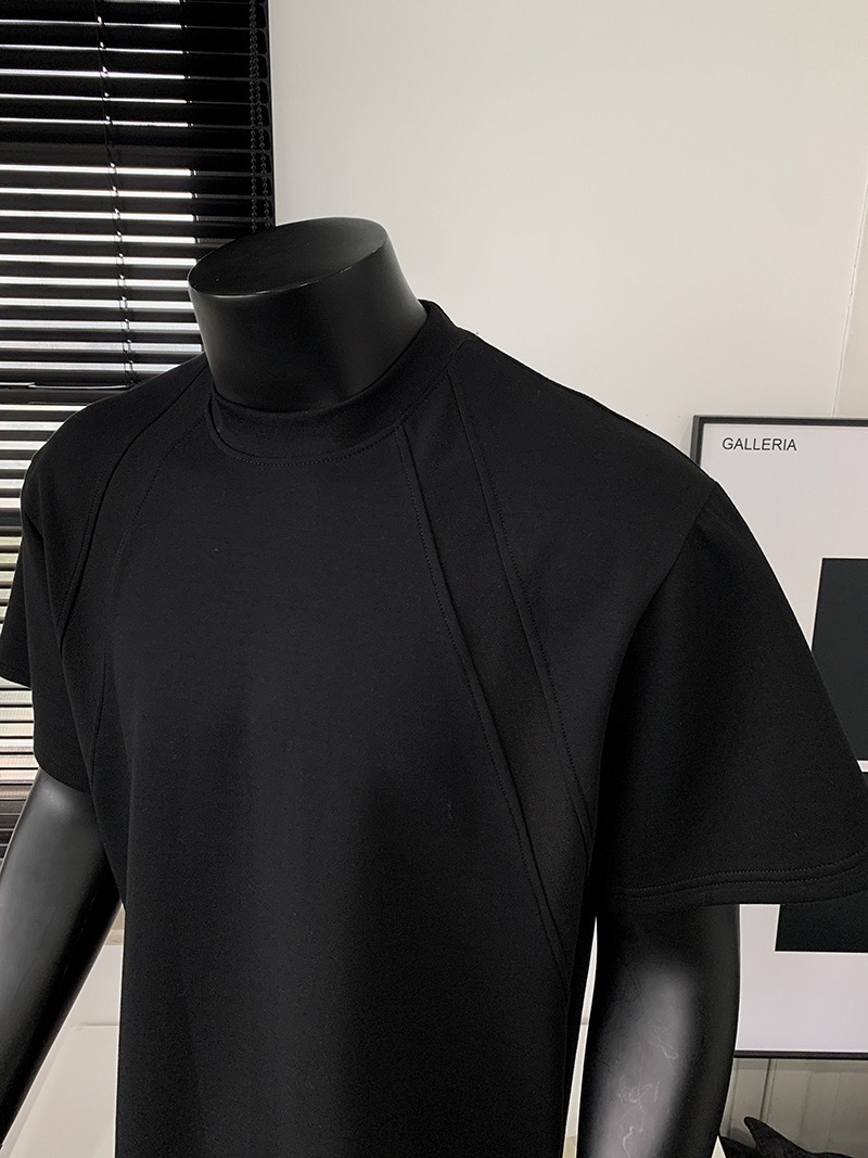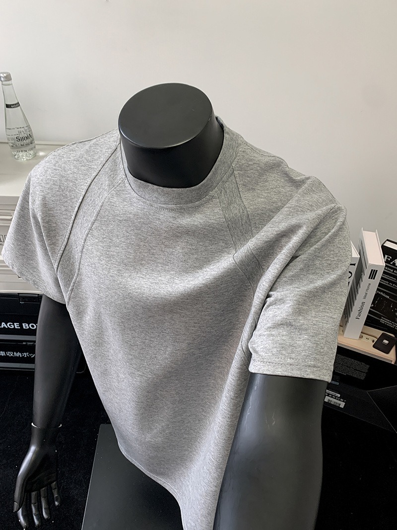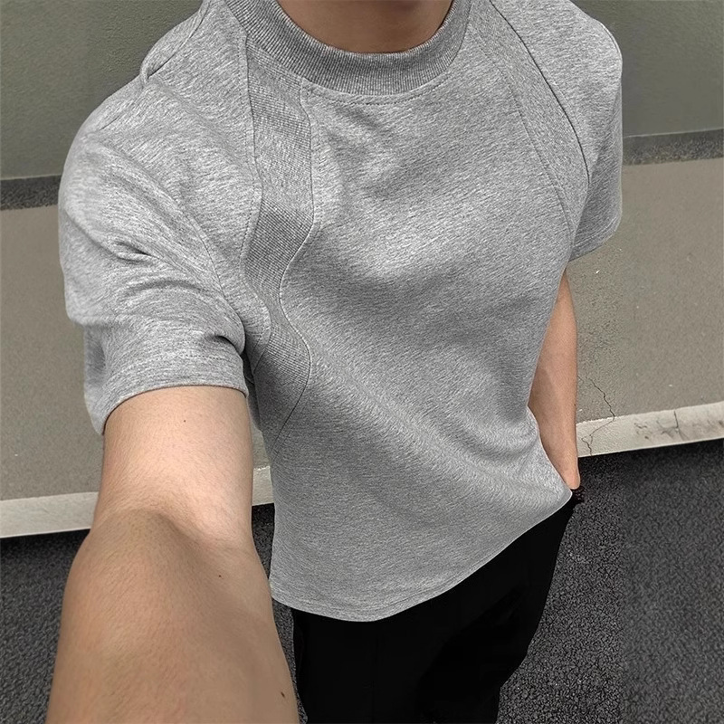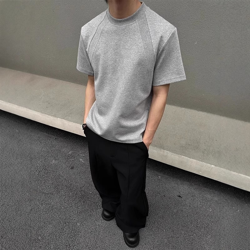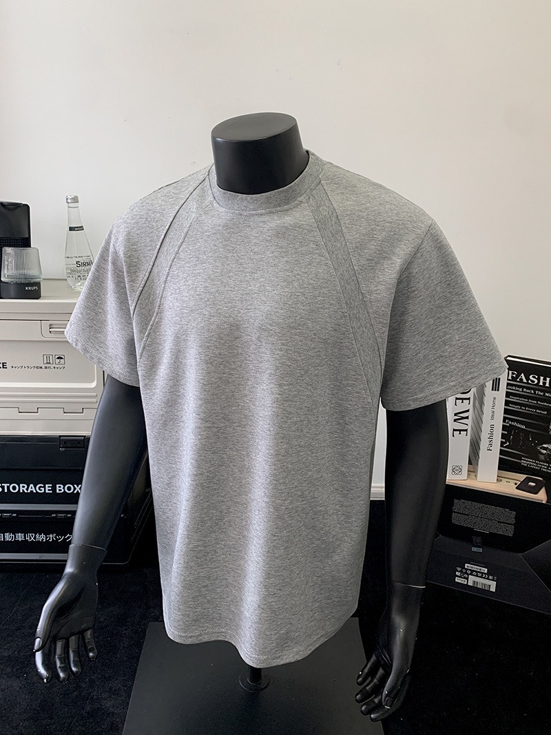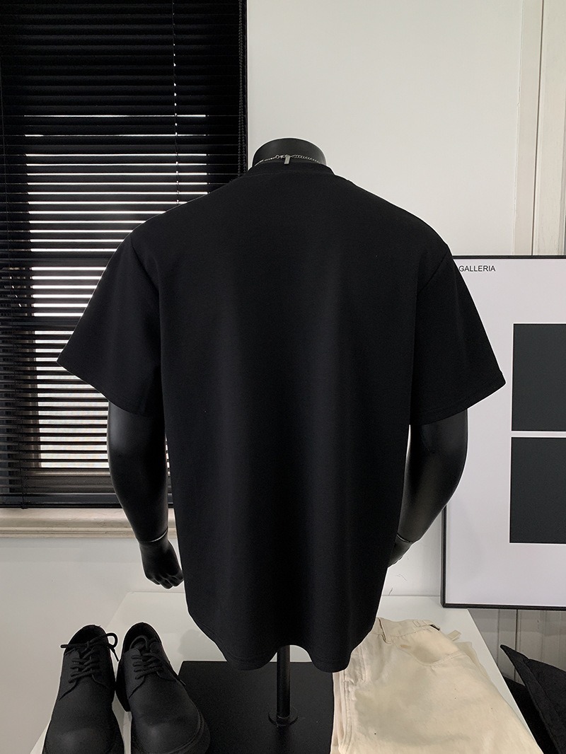 고품질 미국 오른쪽 어깨 티셔츠 280g 공간면 느슨한 반팔 여름 박시 뻣뻣한 반팔 남성 티셔츠
