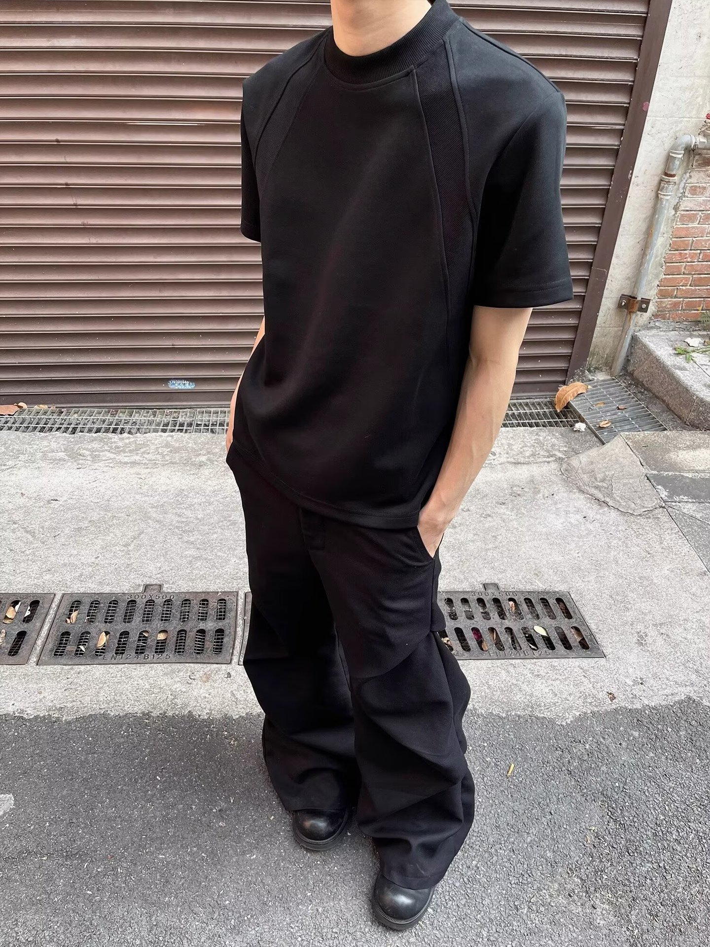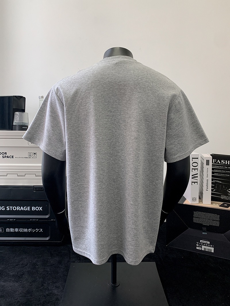 고품질 미국 오른쪽 어깨 티셔츠 280g 공간면 느슨한 반팔 여름 박시 뻣뻣한 반팔 남성 티셔츠스토어 가기