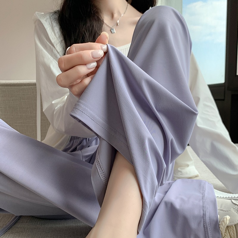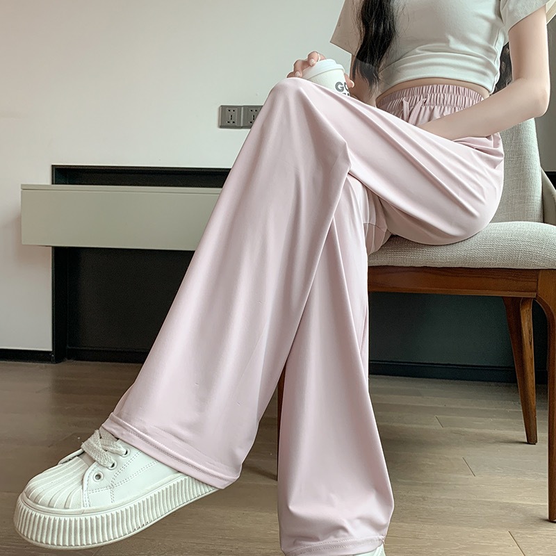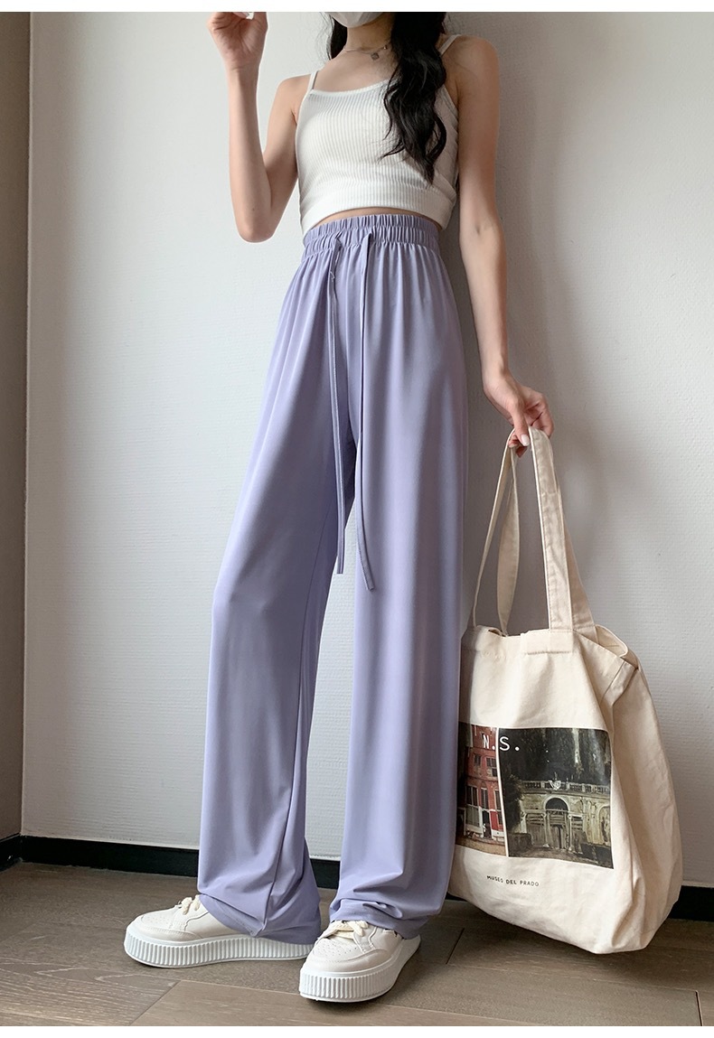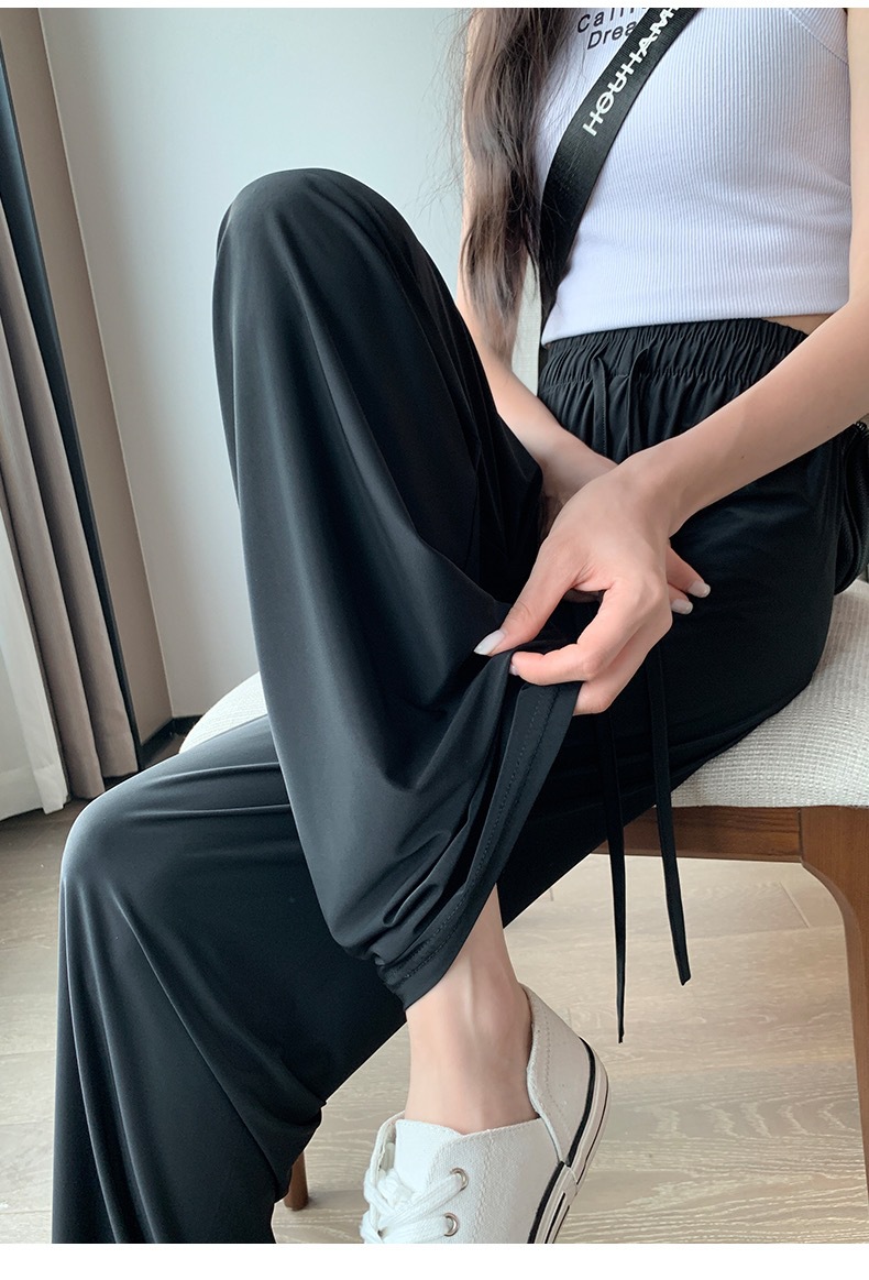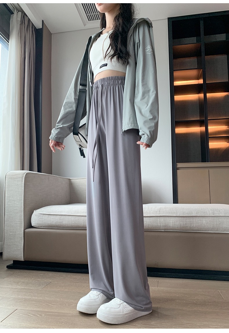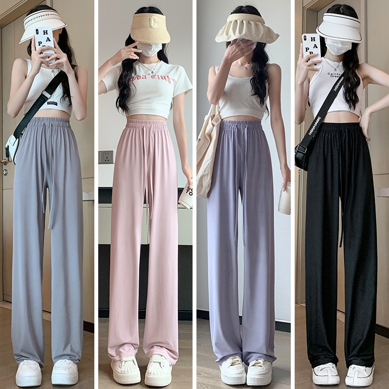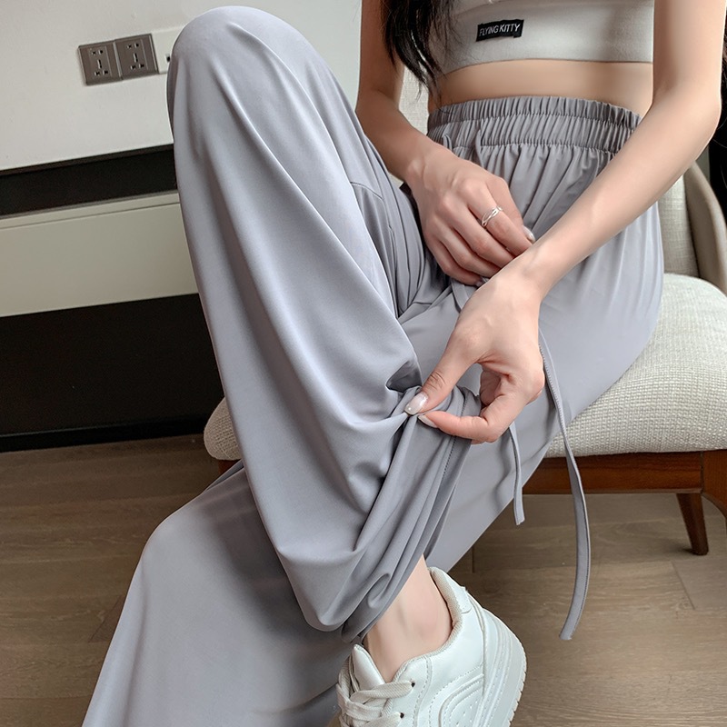 선스크린 바지 여성의 여름 높은 허리 드레이핑 넓은 다리 바지 캐주얼 스트레이트 바지 좁은 얼음 실크 얇은 빠른 건조 시원한 바지